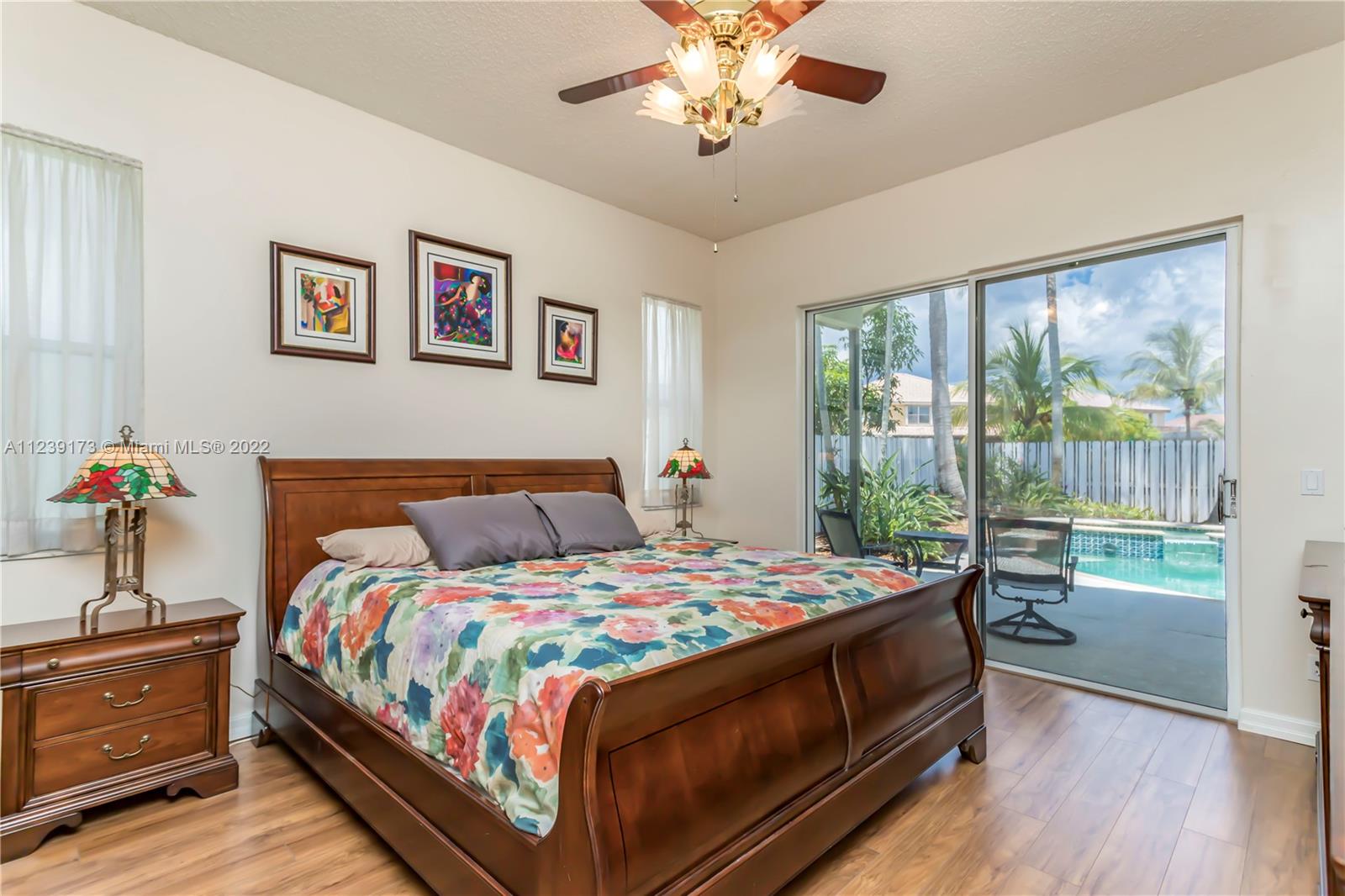 Beautiful one story, 4 bedroom, 2.5 bath, pool home, in Silver Lakes with a BRAND NEW ROOF! This home features tile flooring in the main living areas, wood laminate flooring in the bedrooms, and volume ceilings throughout. The upgraded kitchen is complete with granite countertops, real hardwood cabinetry, snack bar, and stainless steel appliances. The large master suite has sliding glass door leading to the pool. The upgraded master bathroom features real hardwood cabinetry and granite countertops. Enjoy the fenced-in backyard with a large pool, spa, and covered sitting area!