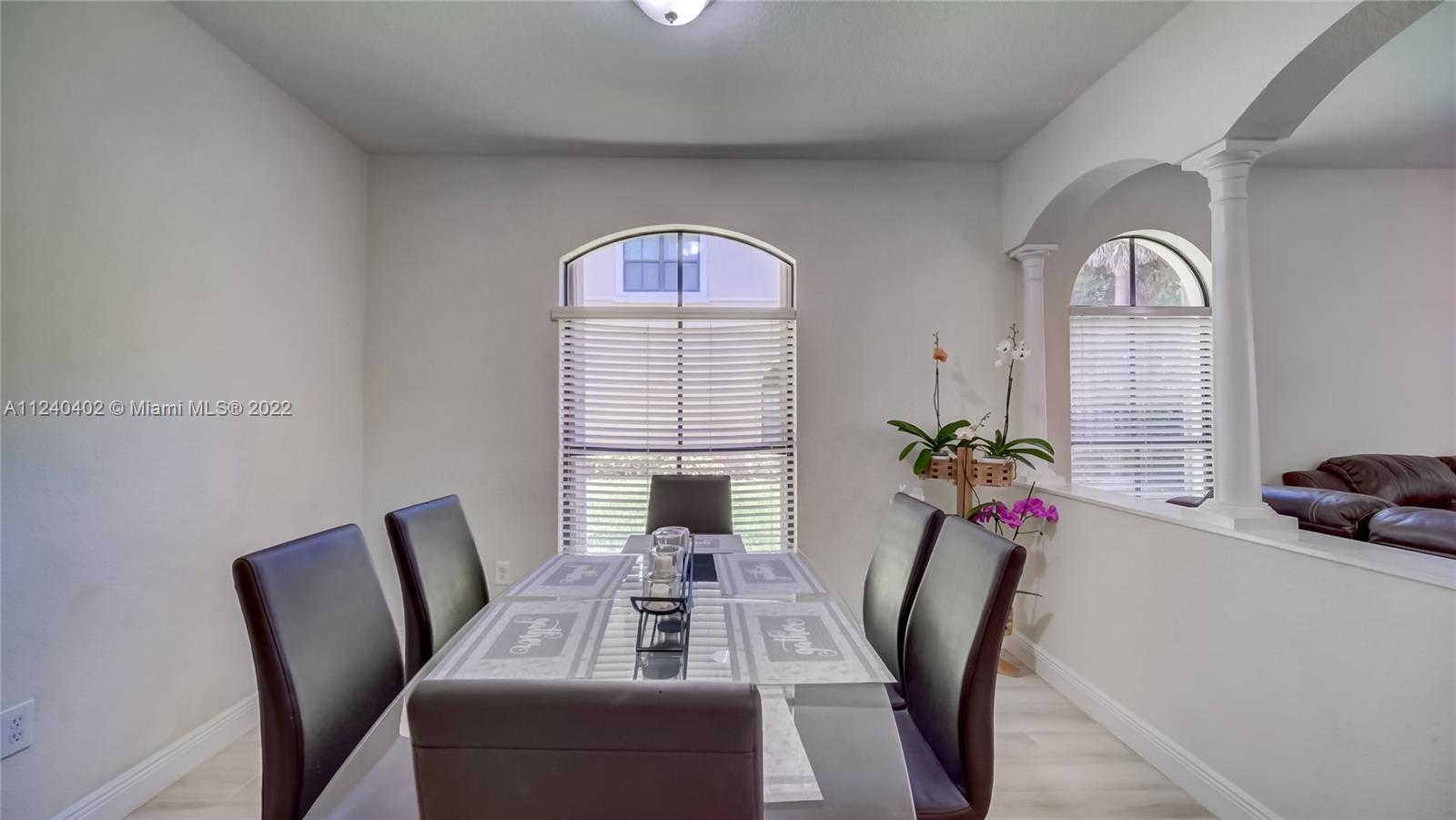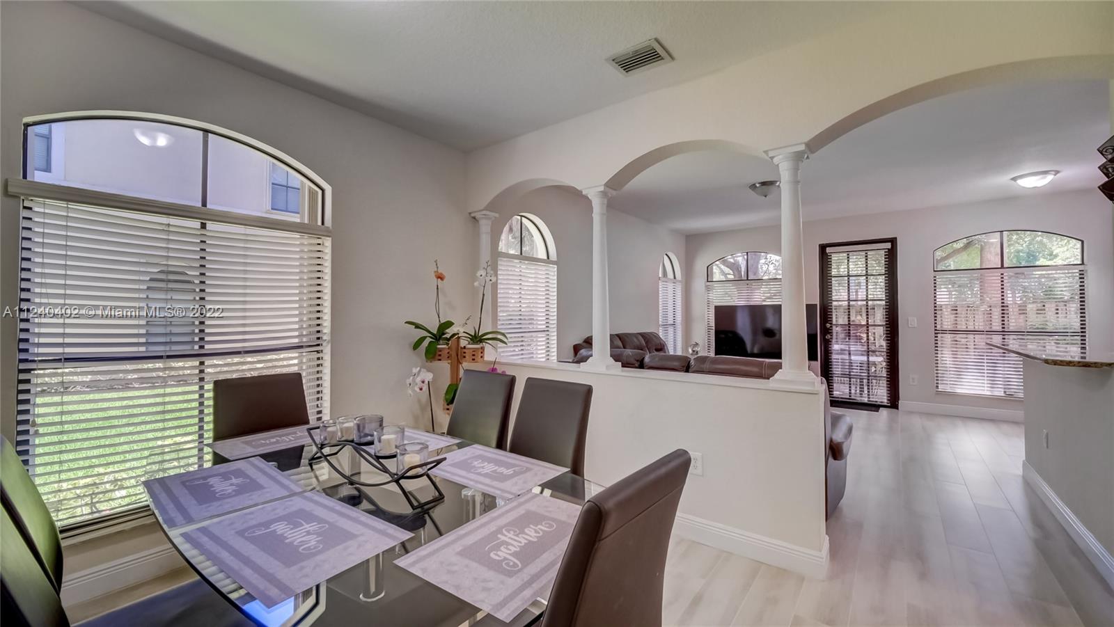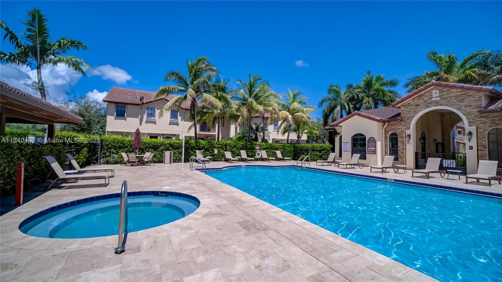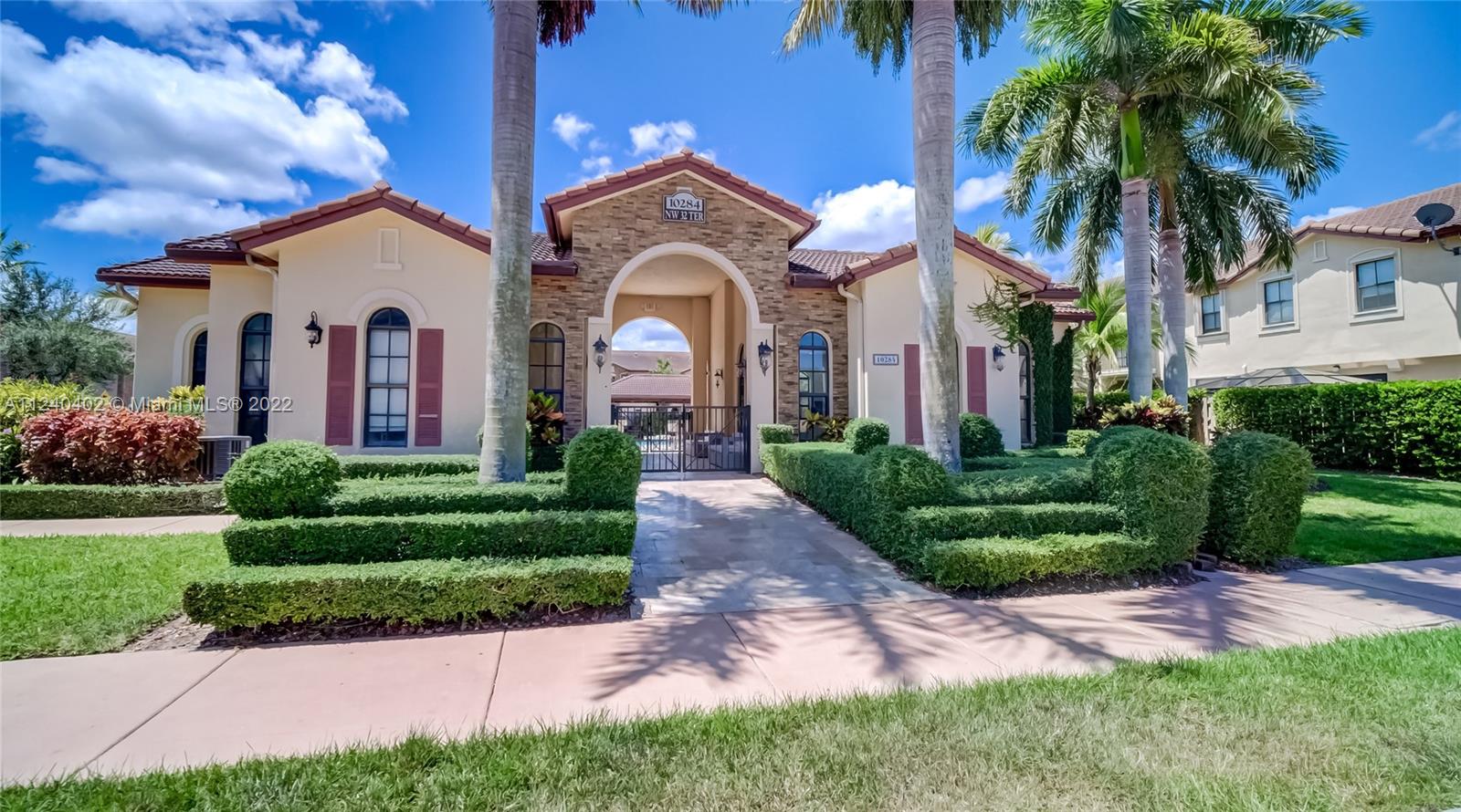 Mediterranean Style Milan Gated Community. Doral Great A-Rated School District!! Beautifully Remodeled & Impeccable 2-story 3 bedroom, 2.5 baths Townhome, Corner for more natural lighting and privacy, 1 car garage, open floor plan downstairs, 2 split bedrooms from main suite for privacy upstairs each with its private balcony, formal dining room, gorgeous kitchen with window overlooking privately fenced patio, granite kitchen counter tops, stainless steel appliances, porcelain tile downstairs & laminate wood upstairs, accordion style shutters for storm protection and more... Amenities: Community Pool, Jacuzzi, and Exercise room. Close to Parks, Dolphin & International Mall, Doral City Place, Trump Nat'l. Resort Golf & Spa, Airport, and FL Turnpike. Call Listing Agent for Private Tour.