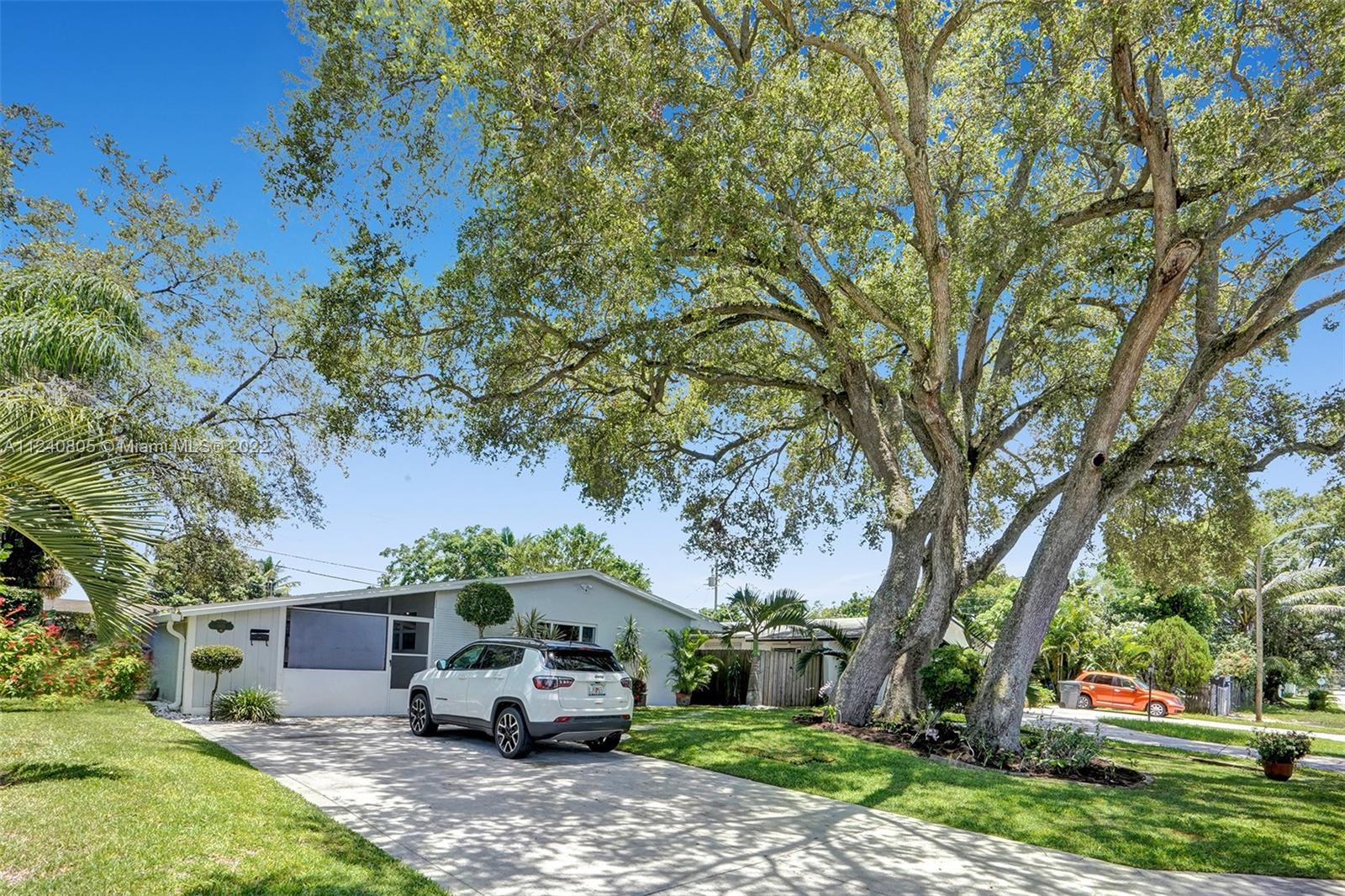 MIGHT BE THE LAST AFFORDABLE HOME IN HOLLYWOOD. You must stop by to see this charming home to appreciate it. Located in such a great neighborhood. Perfect layout for anyone wanting bright spaces. The home features partial-impact windows throughout and an open-concept kitchen in the great room. The Master Bath has modern updates and the guest bathroom is nicely sized. A large kitchen bar is perfect for large family entertaining. The electrical box and Hot water heater are both newly updated. The carport has been modified to screened in flex-space but easily converts back and has a ton of extra storage space. Backyard wraps around with multiple entry points. My favorite is the drive-up with an oversized driveway and lush landscaping. It is ready for you to fall in love.