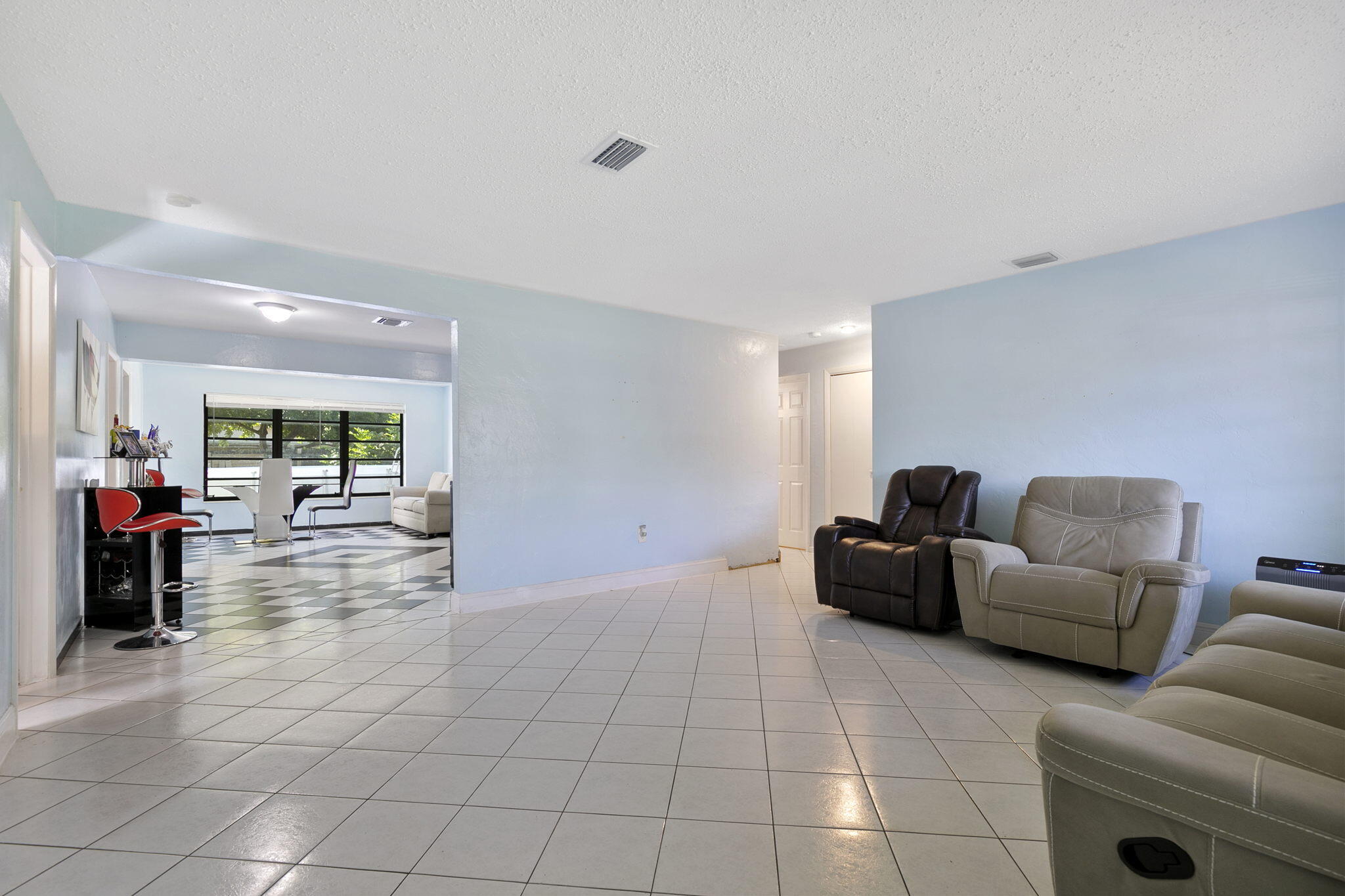 Great Location! Charming CBS 3 Bedroom 2 Bathroom home Fully furnished on a quiet street with loads of curb appeal next to St. Thomas Aquinas High School. The property features tile floors throughout, living & dining, open concept eat in kitchen with updated cabinetry, master bedroom with walk in closets, addition room great for home office or 4th bedroom plus laundry / pantry. The property has a large fenced in back yard plus a covered carport & driveway. ,New roof , A/C water heater, breaker box, Insulation , Paint in and out, all done in 2022. Will not last .Pool does not convey.