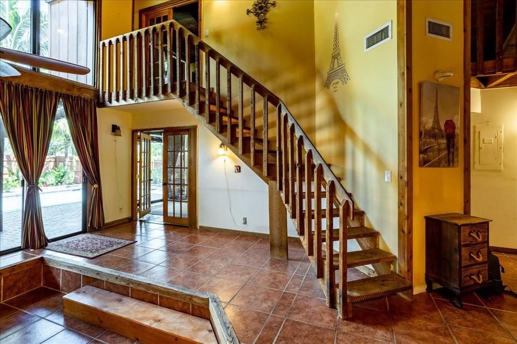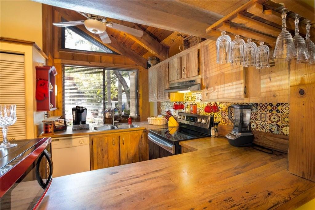 Rarely available, totally unique 3/2 with office/studio, and a loft. Vaulted wood ceilings that, feels like you are living in a ski chalet. Situated on a large beautifully landscaped corner lot. Living area opens up to a large crystal blue swimming pool, relax in the shade on the covered patio with your favorite drink. Over 20k in upgraded Cat 5 impact windows. Newer A/C and top of the line washer and dryer. Low, low HOA fee $78/mo. Has 2 sheds that are grandfathered in, and very private with fully fenced in backyard pool area. Has Community Pool, Tennis courts, dog parks (pet friendly community). Put your own stamp on this and make it your dream home.