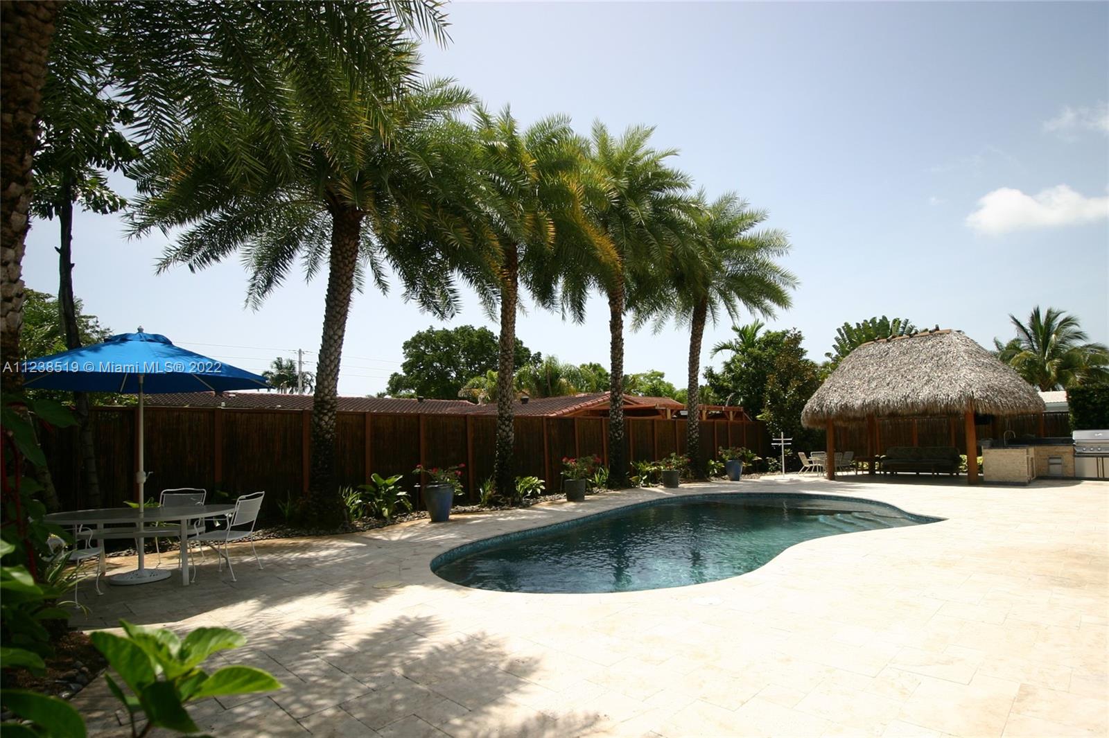 Sunny Emerald Hills home. Plantation shutters, hurricane impact windows. 4th bedroom makes great office. Heated pool. Lighted Tiki Hut with 2 outdoor TV's. Outdoor kitchen with top of the line propane grill, sink, refrigerator, ice-machine. 2-car garage with sealed floor, built-in workbench, storage cupboards, racks and hanging hooks. Bamboo fenced yard. Walk 1/3 mile to beautiful Topeekeegee Yugnee (TY) Park. 10-minute drive to I-95 and Dania Pointe shopping and dining center. 4.7 miles to Hollywood Beach Broadwalk. 10 minutes to Ft. Lauderdale airport. Recent updates to home: Brand new Tiki Hut roof. Exterior of house fully repainted in 2021. House plumbing system/pipes replaced in 2018 . House being sold As Is.