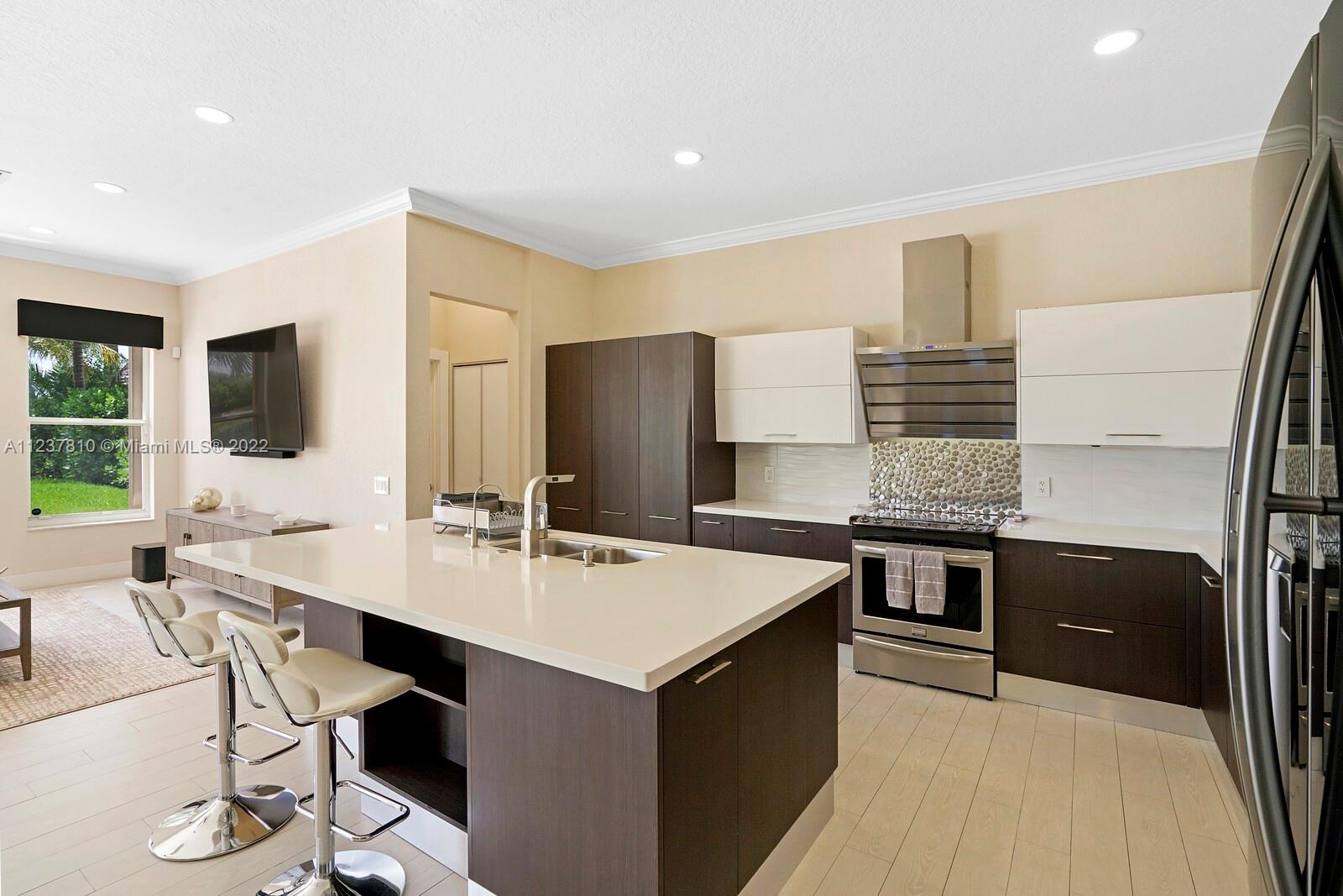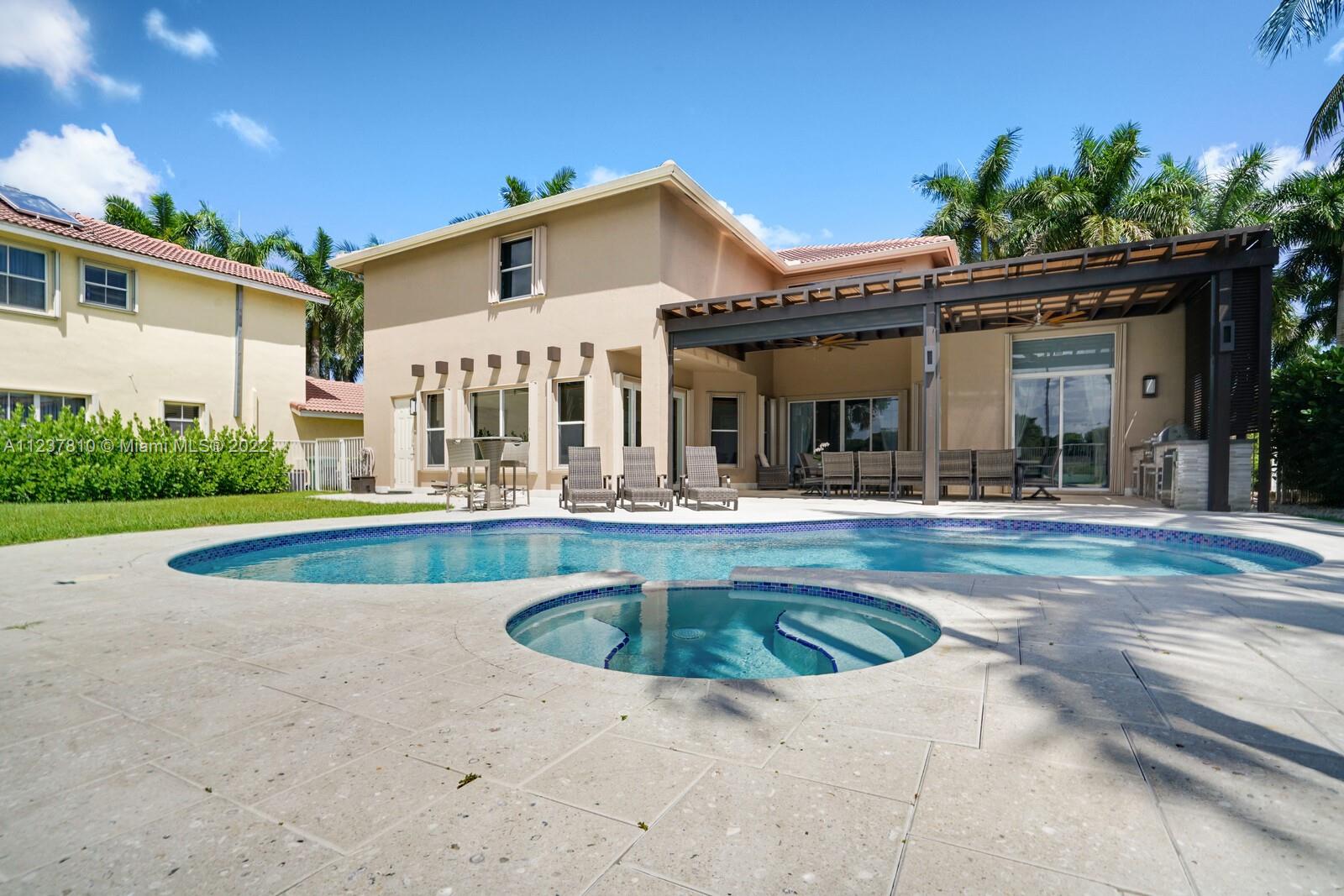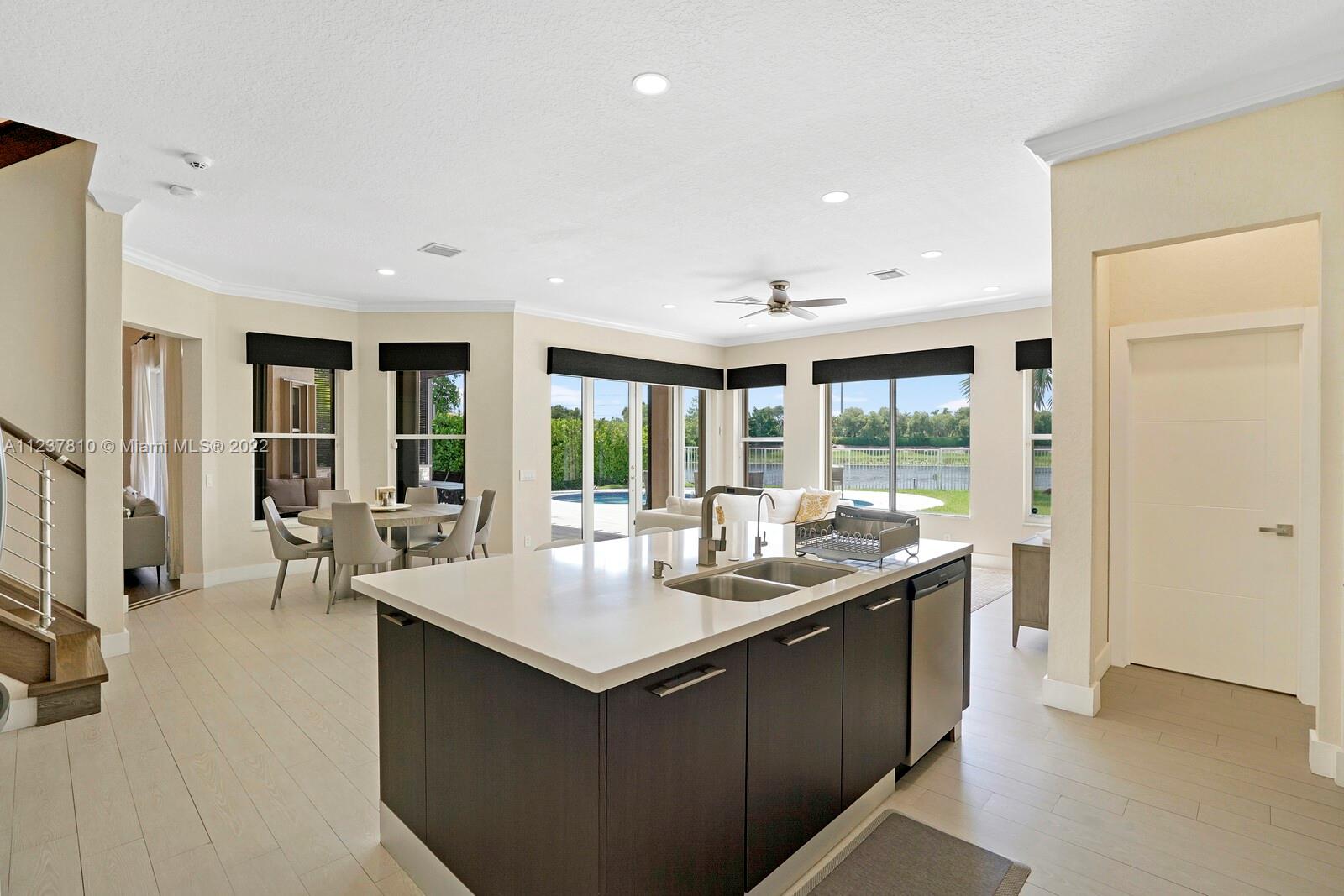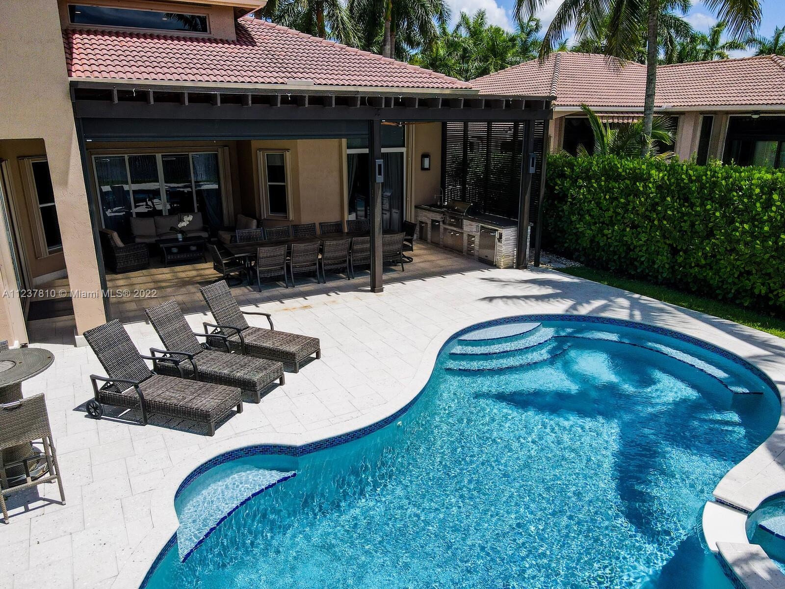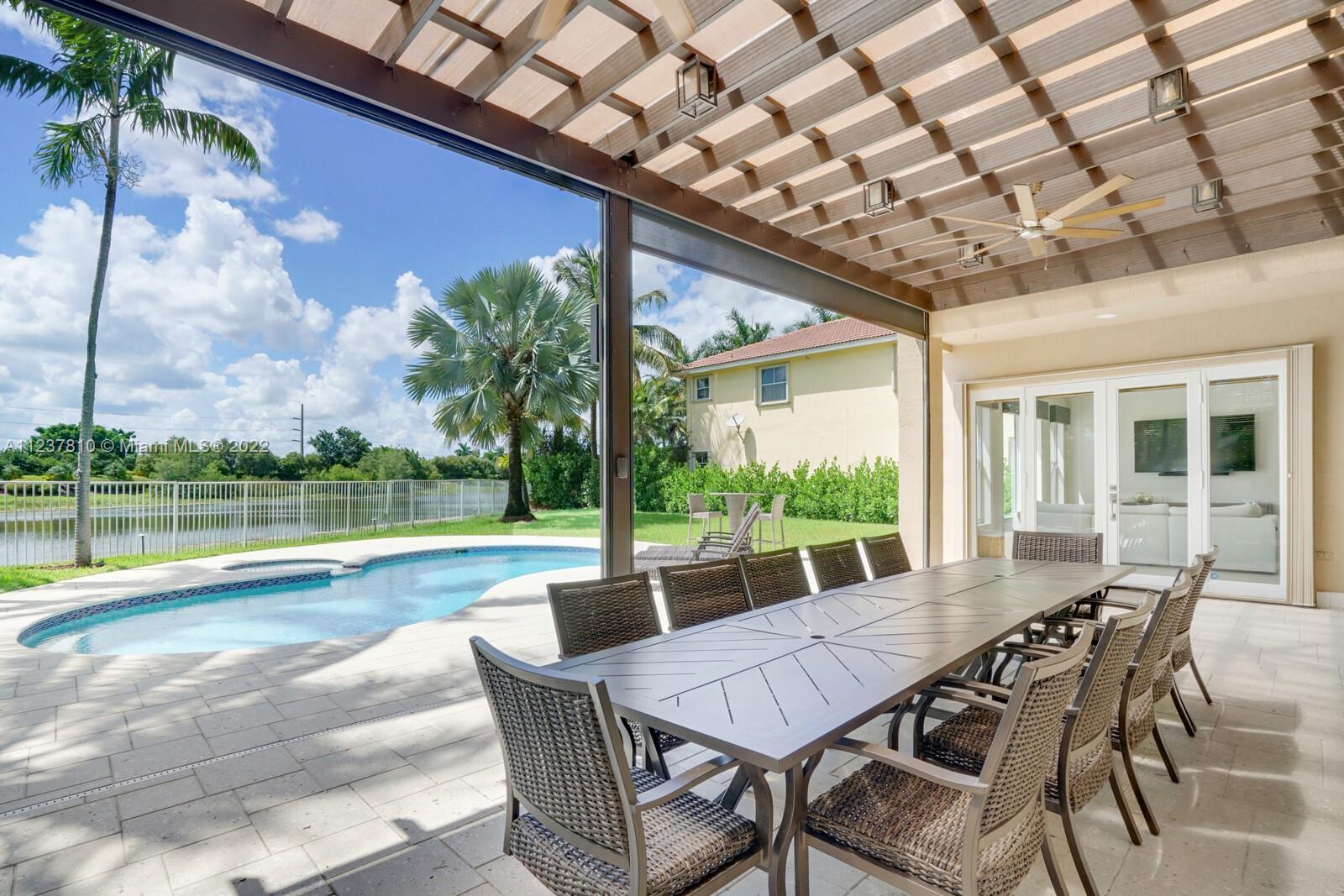 Gorgeous *FULLY-REMODELED* home on oversized LAKEFRONT/POOL lot with yard for play! Luxury renovations. Modern Italian gourmet kitchen, new designer bathrooms, new flooring, 3 new a/c’s, new SmartHome system, new whole-house water filtration system, tropical landscaping & new lighting. 6bd + office + bonus loft room, 4 FULL baths, 4457 sf, soaring ceilings, 3CG w new paved circular driveway. Entertain South Florida style in your covered patio with new custom pergola, summer kitchen, retractable screens & large deck overlooking heated salt water pool & spa, newly refaced. Fenced yard, panoramic lake views across privacy berm. TURN-KEY w all new luxe furniture from Restoration Hardware. Tot lot, guard-gated, palm-tree lined upscale community of Weston Hills Country Club. Weston’s A+ schools!