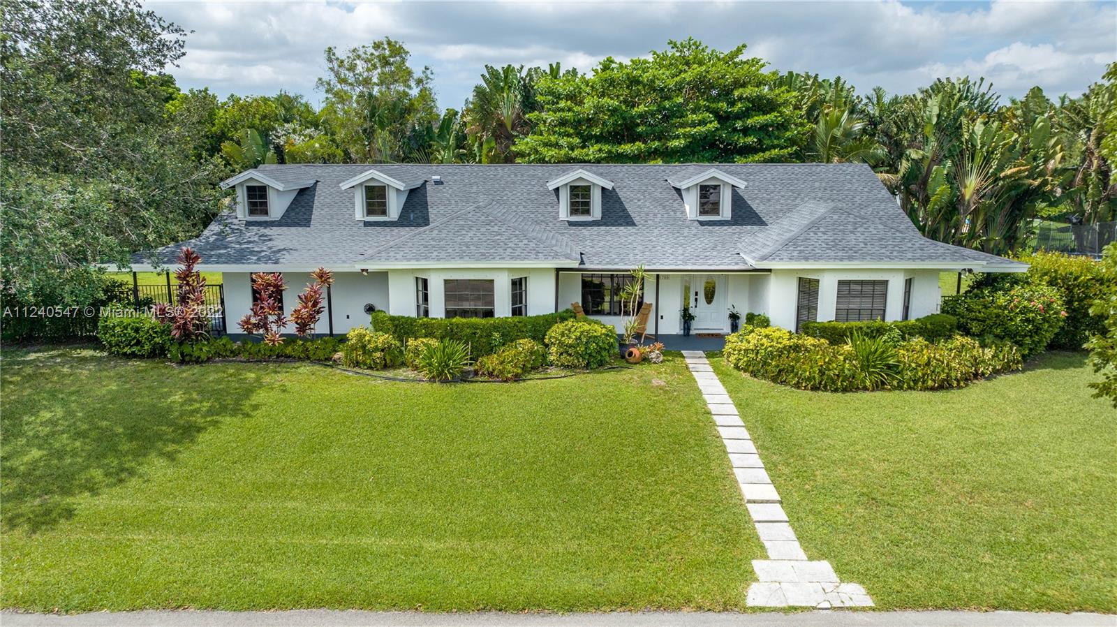 Stunning ranch style home w/ separate garage & guest house on 1.15 acres in West Davie!! Private gated community w/ only 5 homes. Brand new roof in 2021! Main house features split bedrooms, 3/2.5. Open layout w/ vaulted ceilings & tons of natural light. Gorgeous real wood flooring throughout. Large kitchen w/ white cabinetry & granite countertops. Covered porch & patio areas around the entire home. French doors. Tons of yard space with ample room for RV/boat parking. Detached garage partially converted to 1 bed/1 bath w/ 1200 sq ft guest house. Great for in-laws, playroom, guests, etc. Features living/dining area & kitchenette. Garage space can house vehicles & equipment. Septic Tank (2017). AC (2017). Water heater (2019). Fence (2018). Highly rated Davie school district!