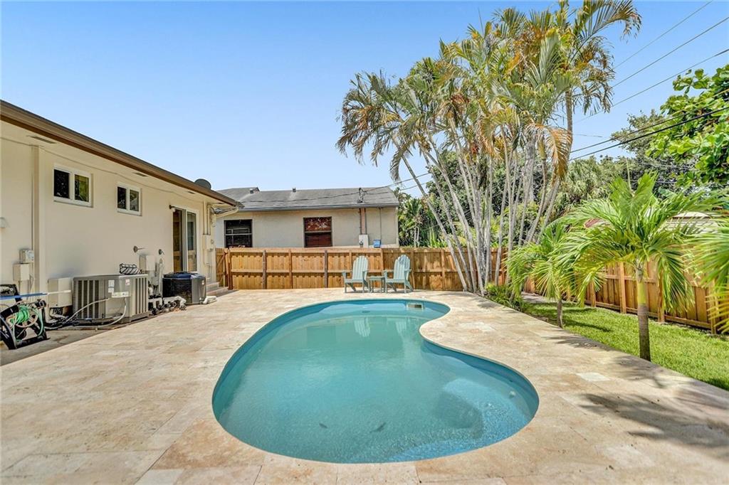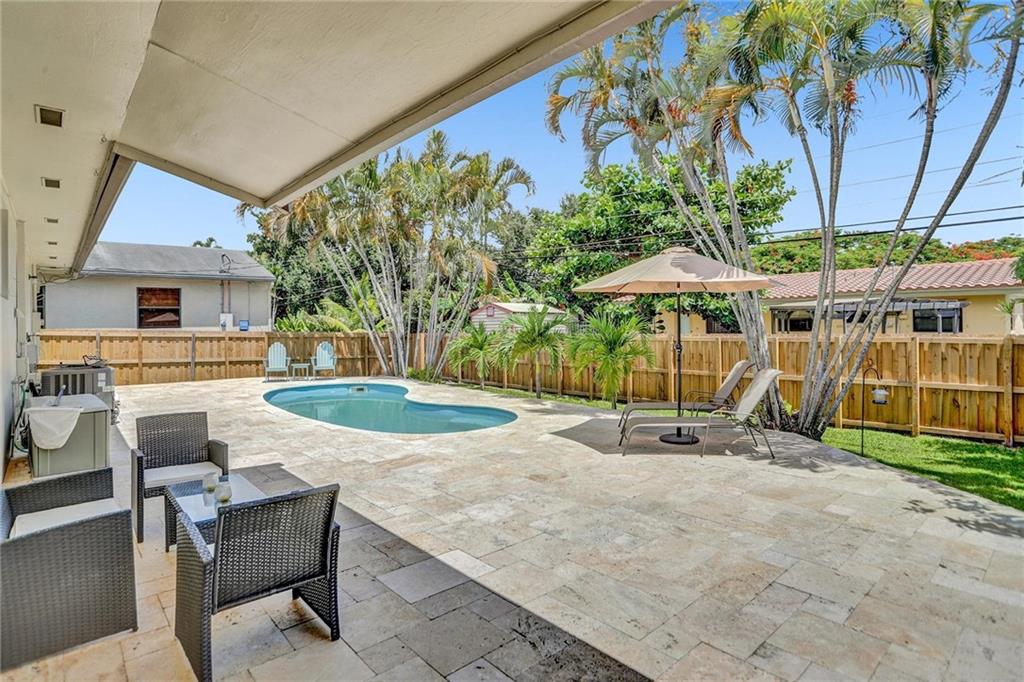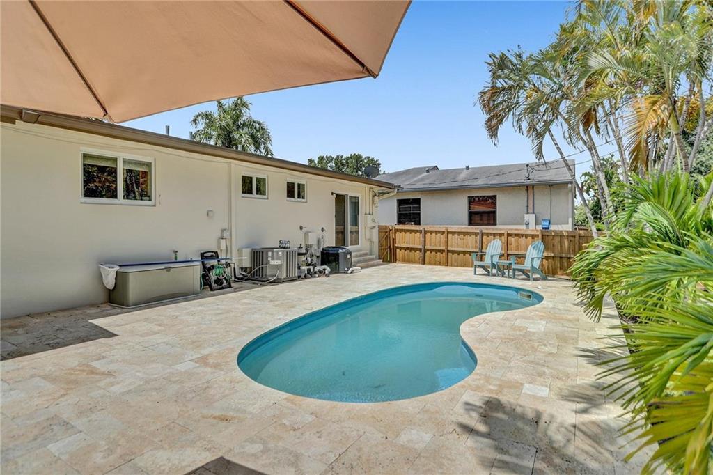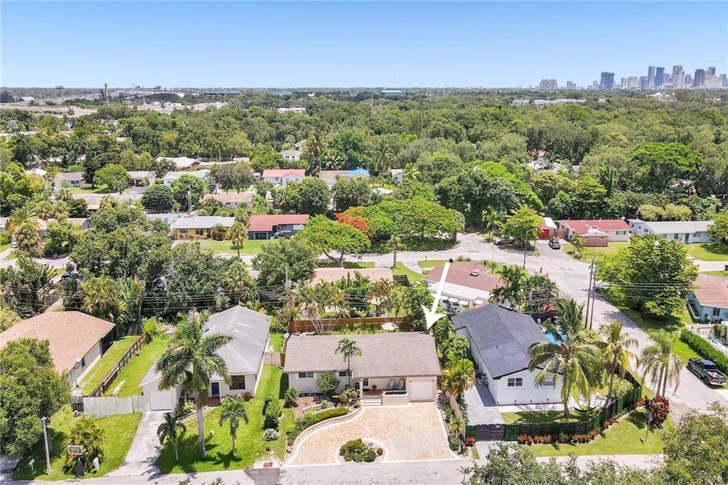 Exceptional location in Edgewood that offers quick access to and from Ft Lauderdale airport, I95, 595, downtown, Las Olas Blvd., and the beach. Located on a quiet cul-de-sac, dead end street. The home offers 1,378 SQ FT under air, 3 bedrooms, 2 baths, and a 1 car garage with storage shelves and cabinets. Parking for 5 additional cars in the driveway. No HOA. Bring your boat or RV. Views of Edgewood Passive Neighborhood Park out your front windows and a short walk to the park’s north entrance.You will love spending time in this backyard with a heated pool surrounded by a 700+ sq. ft. travertine patio. Concrete slab for a shed. Nest thermostat, Nest keyless front door lock and doorbell, and Nest motion activated security cameras with floodlights in front and back.
