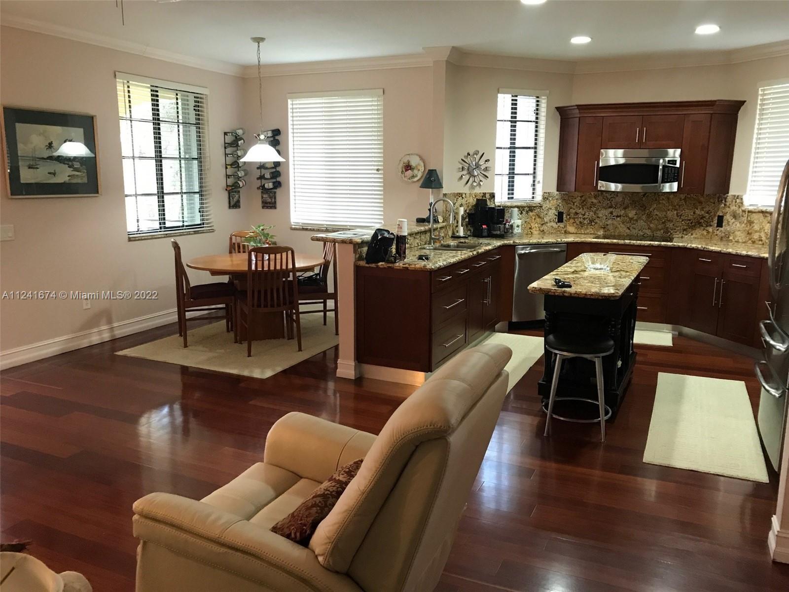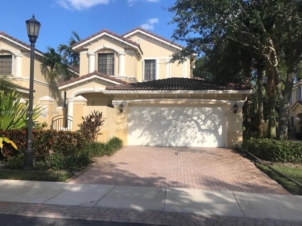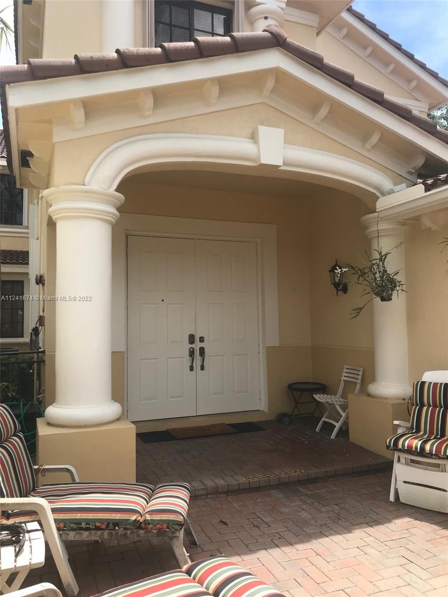 "Location, Location" Mariposa Pointe Coach Home, 3 bedrooms 2.5 Bathrooms with Den/Office or 4th bedroom, over 2500 sq ft, 2 car garage lots of storage, newer kitchen with GE Profile Appliances, corner unit with lots of natural light, beautiful real hardwood floors throughout, split bedroom plan, custom built in closets in all bedrooms, laundry room, large courtyard and large balcony with garden view, across the street from Weston Town Center (restaurants, banks, Publix) A+ Schools, gated community, well maintained, elevator ready, new accordion shutters. Weston living at it's BEST!!!!