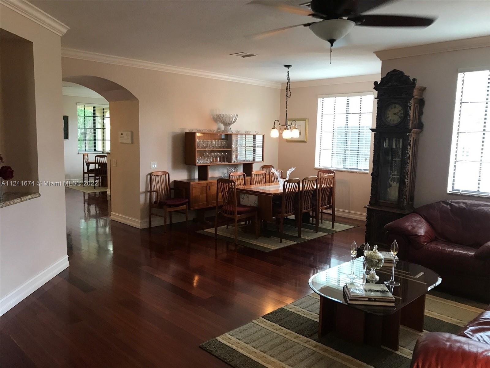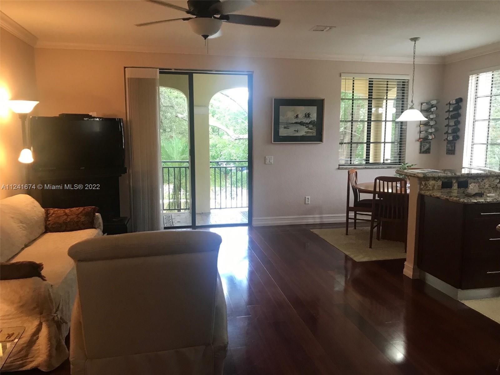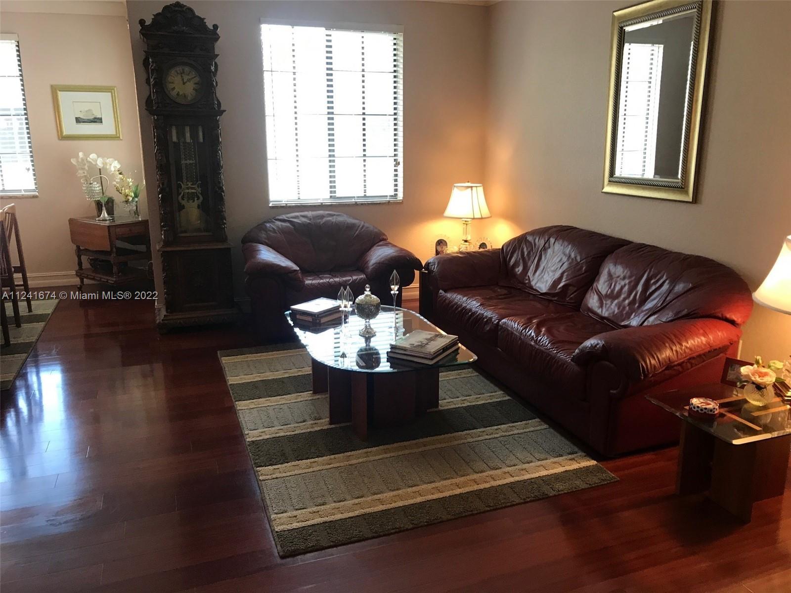 "Location, Location" Mariposa Pointe Coach Home, 3 bedrooms 2.5 Bathrooms with Den/Office or 4th bedroom, over 2500 sq ft, 2 car garage lots of storage, newer kitchen with GE Profile Appliances, corner unit with lots of natural light, beautiful real hardwood floors throughout, split bedroom plan, custom built in closets in all bedrooms, laundry room, large courtyard and large balcony with garden view, across the street from Weston Town Center (restaurants, banks, Publix) A+ Schools, gated community, well maintained, elevator ready, new accordion shutters. Weston living at it's BEST!!!!