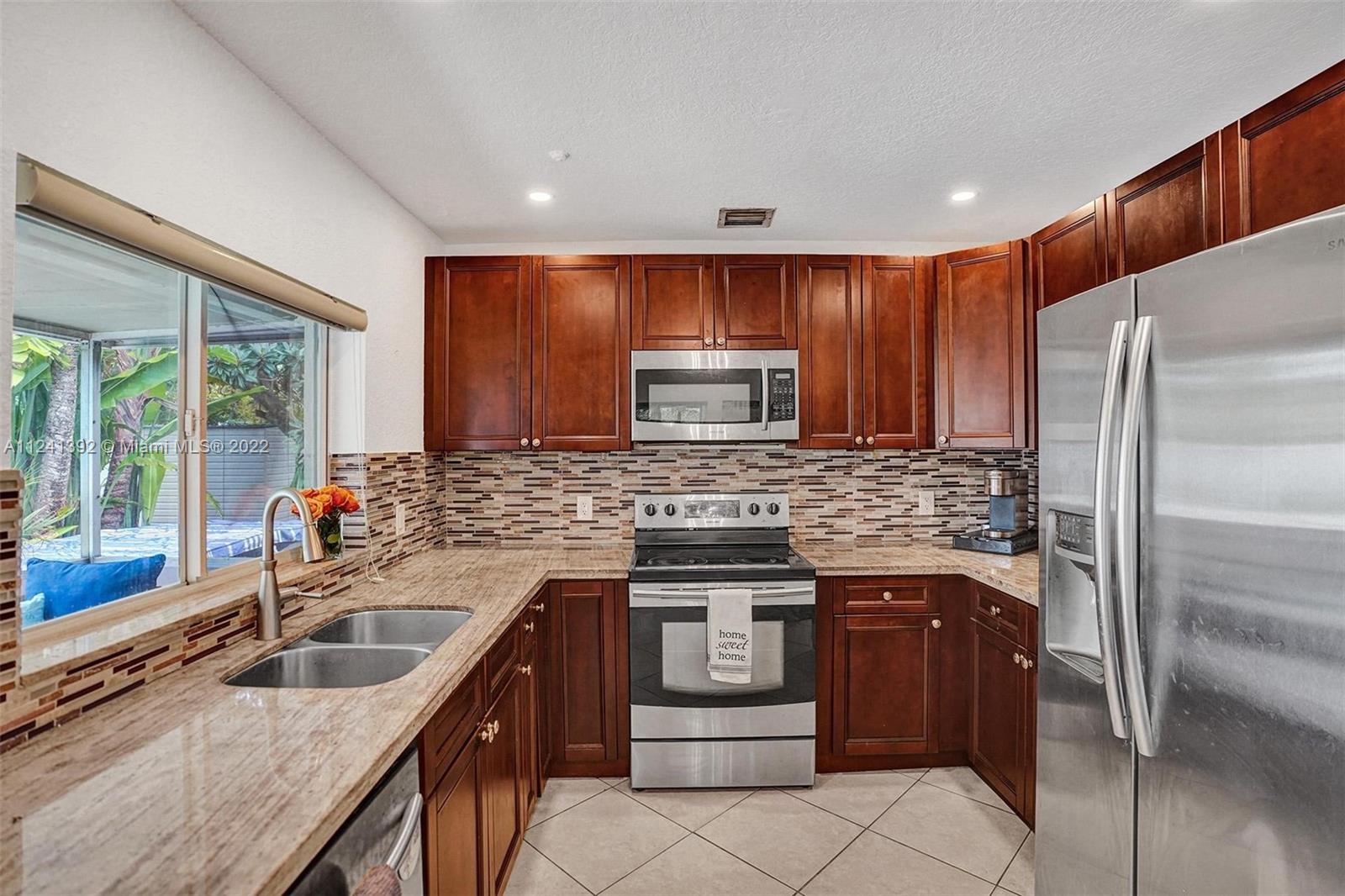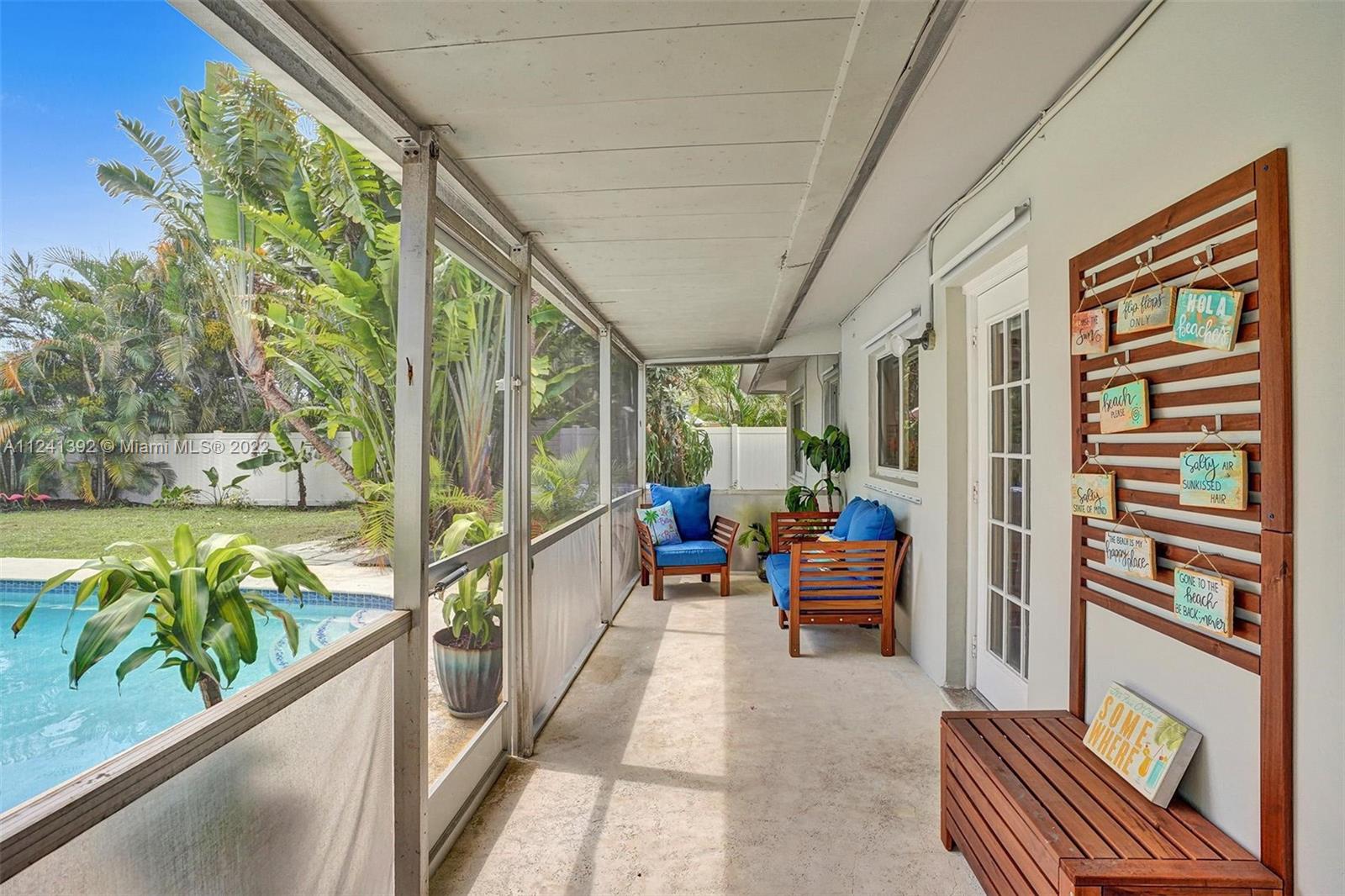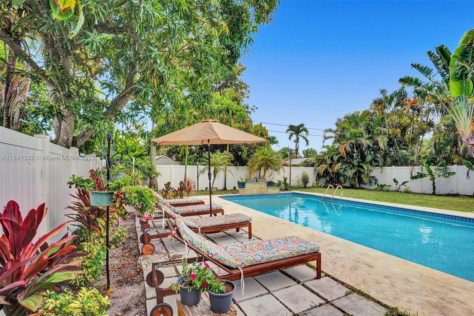 Your private tropical oasis awaits you! 3 bed 2 bath home on oversized 8,448 sf lot. Huge pool area with newer white fence and fountain provide the perfect place for relaxing and entertaining. Fenced yard with electric gate offers total privacy. Finishes include granite counters and new vinyl wood flooring. Close to beaches and all that Wilton Manors has to offer. No HOA. Roof replaced in 2016, AC and exchange replaced in 2017, salt system replaced in pool and new Marcite resurfacing in 2018, washer and dryer replaced in 2019. Main water line and white vinyl fence replaced in 2018. Don't miss this one!