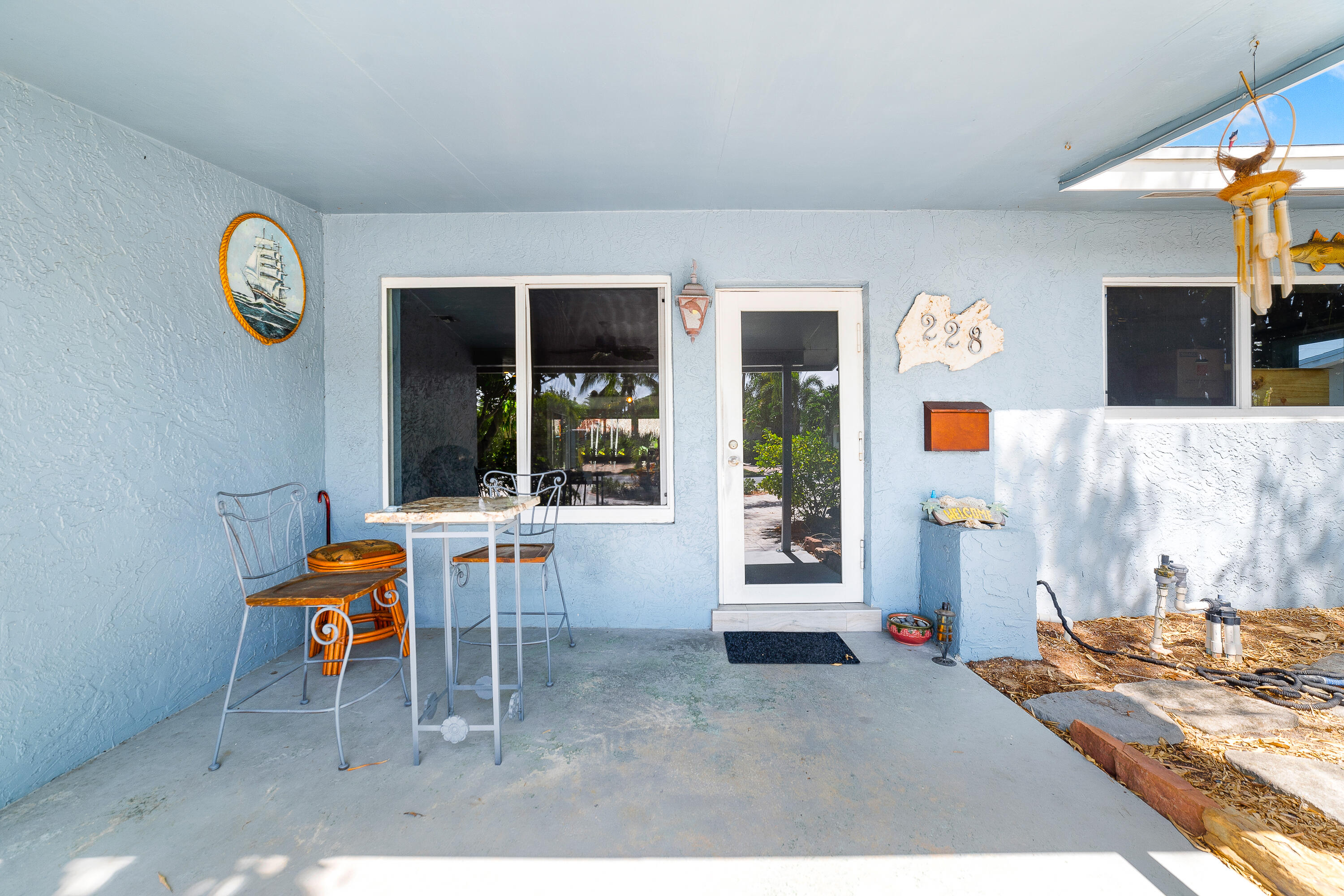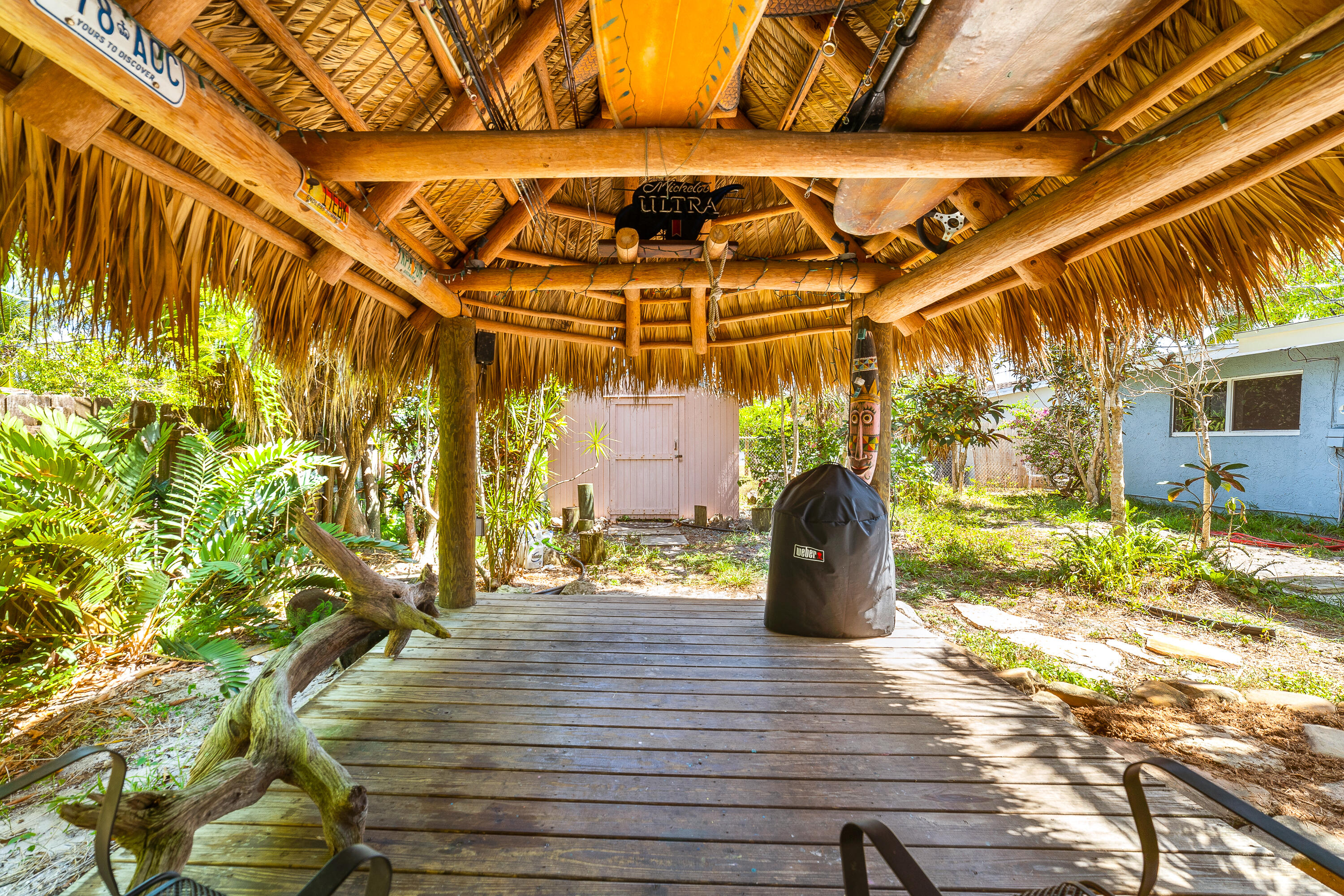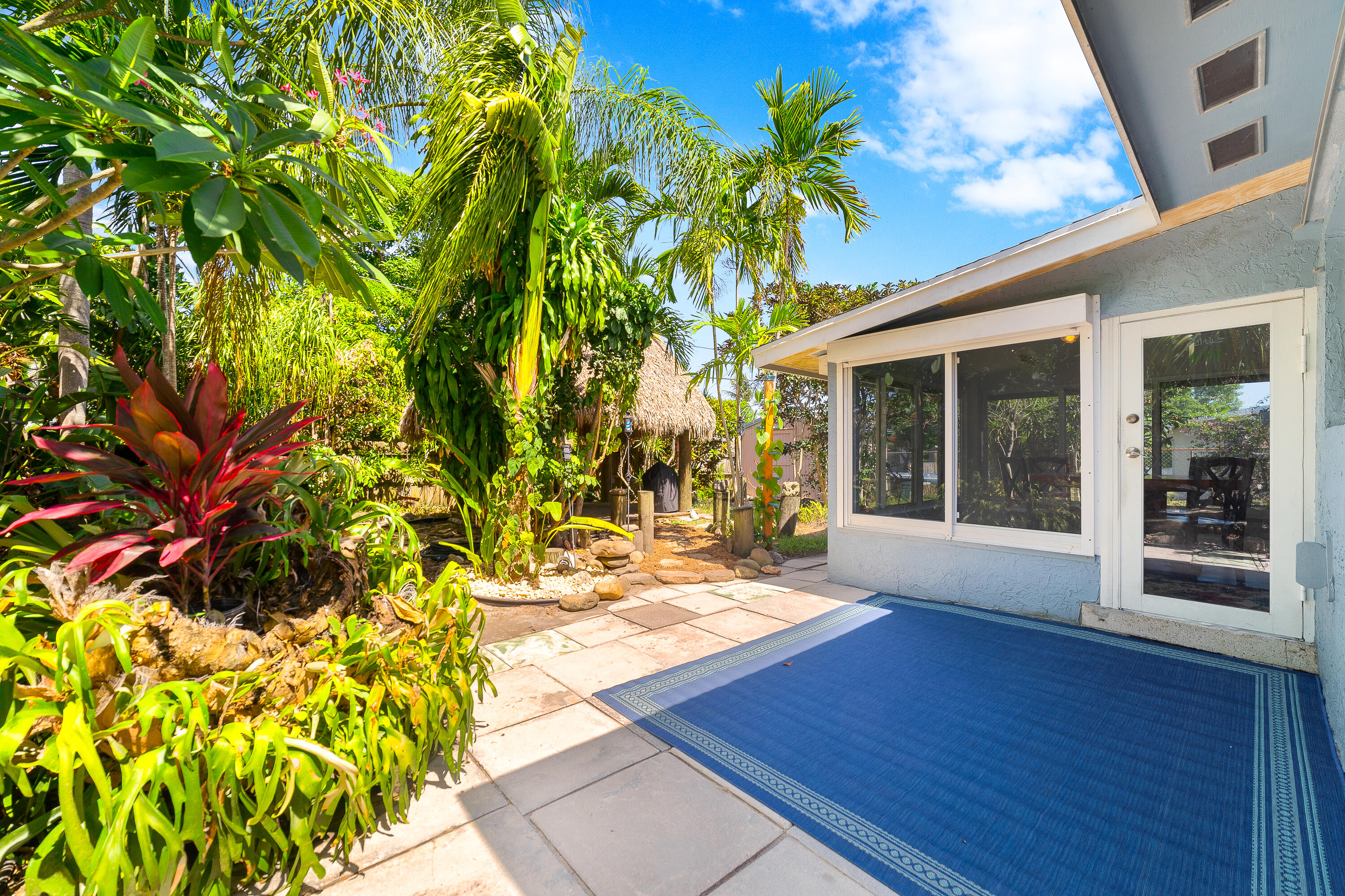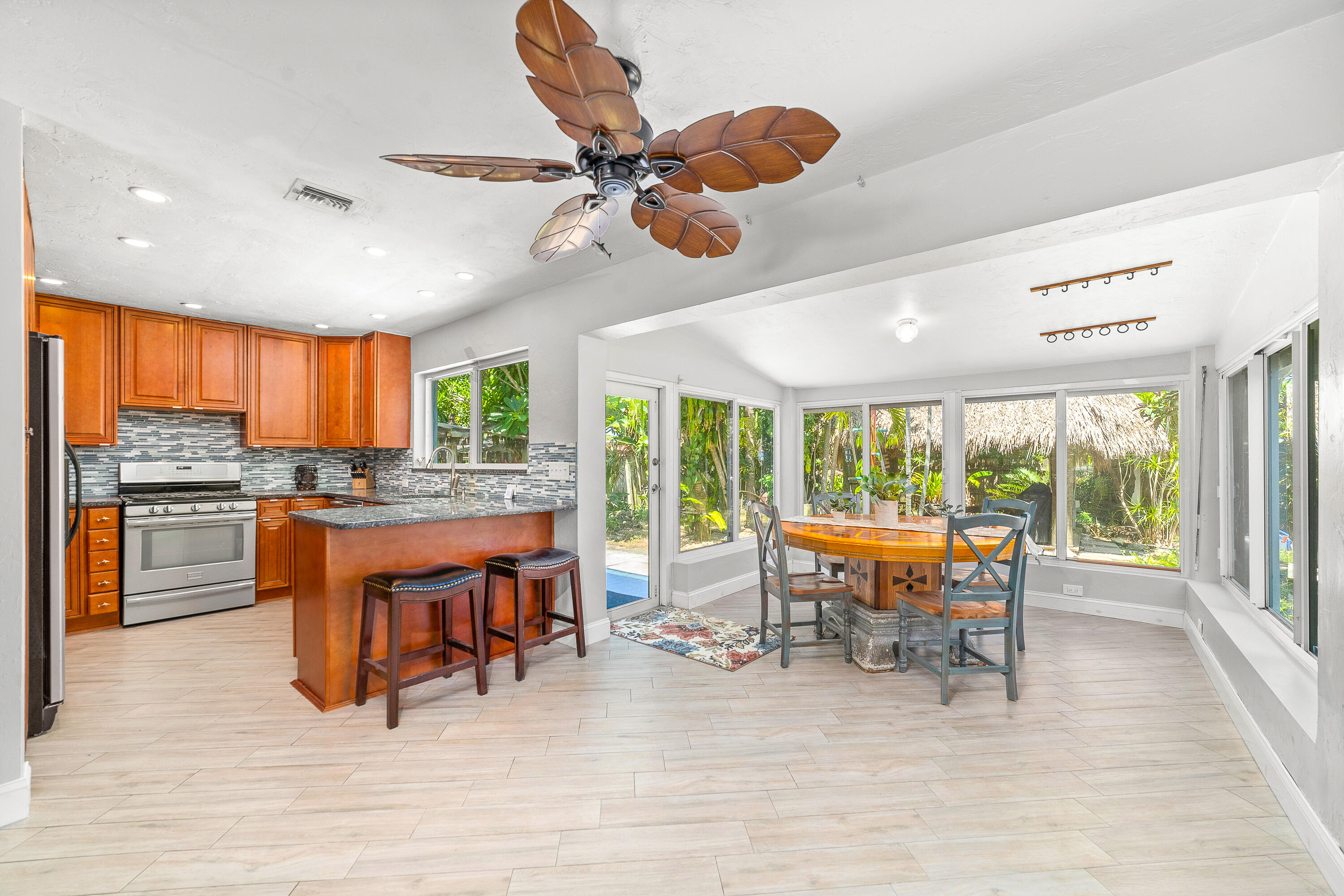 STUNNING! This adorable 3 bed, 2 bath single family home has an upgraded kitchen that directly flows to the dining room. Relax in the cozy Florida Room or step outside to the backyard oasis where there is a tiki hut for you to relax in! Brand new Roof(2022) & Impact glass windows throughout that provide nice natural sunlight. Nice updated porcelain wood-like tile throughout the living room, kitchen, and dining room. Just a short bike ride or walk to the beach. This is a must see in person- call now and make this your new home.