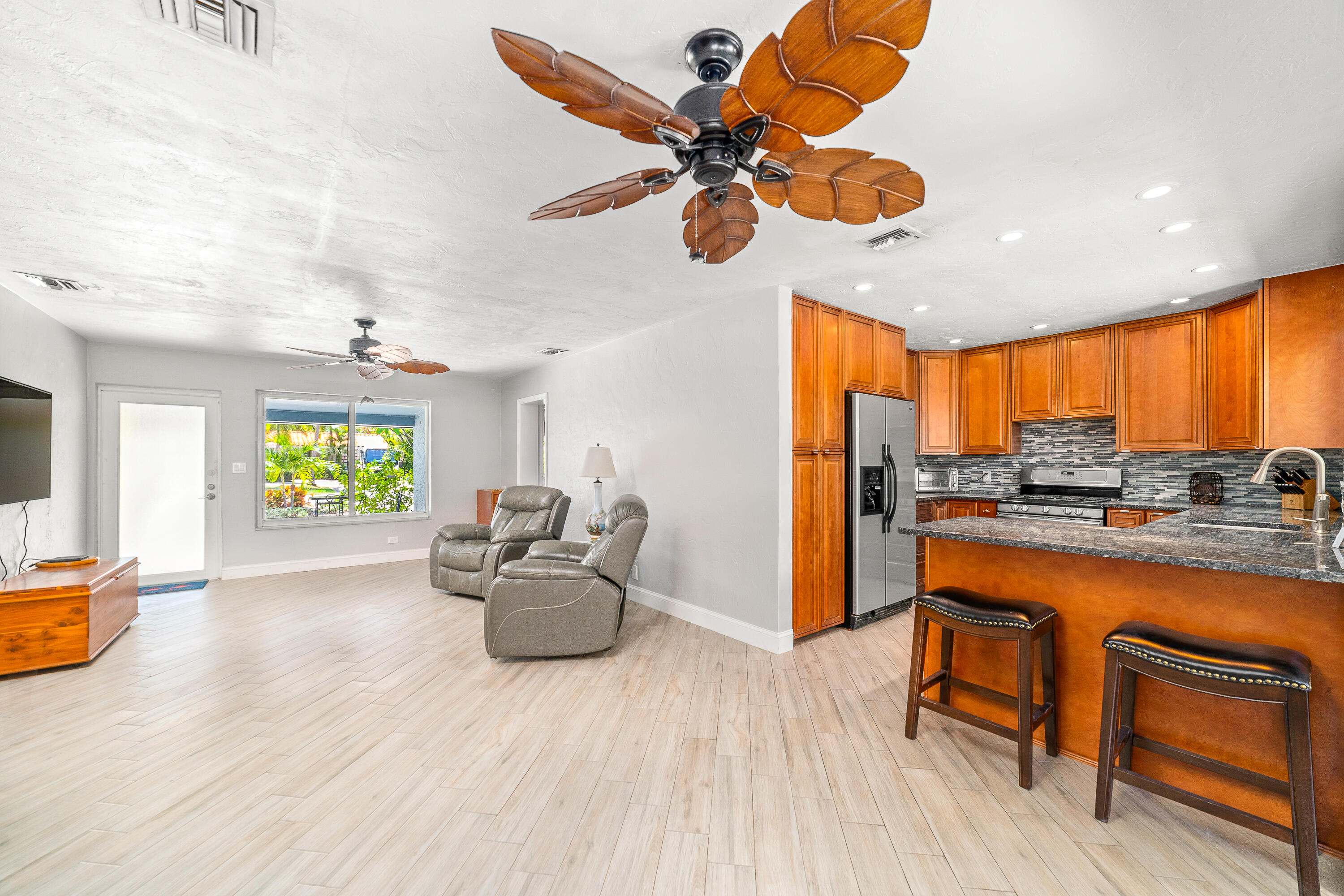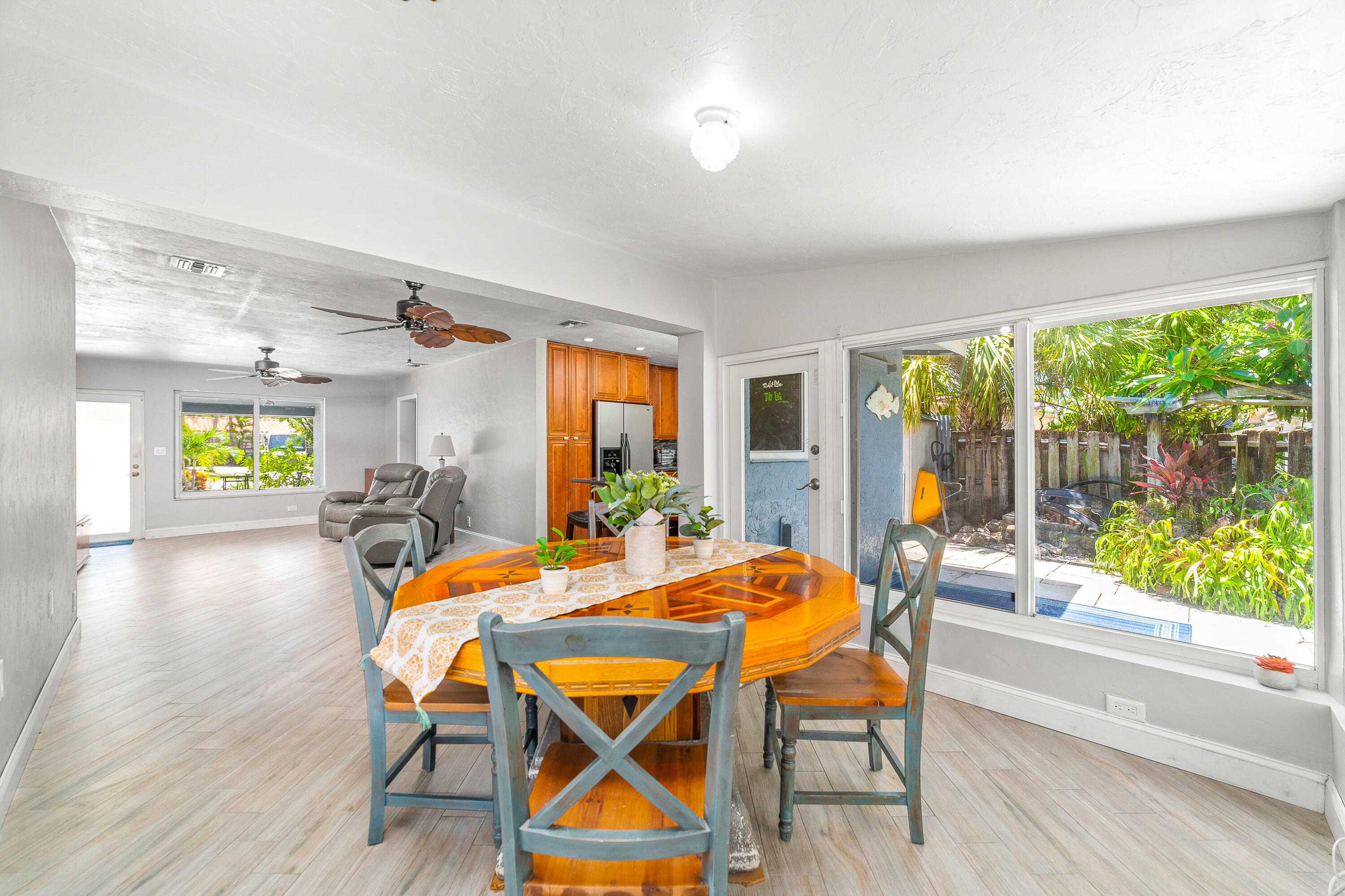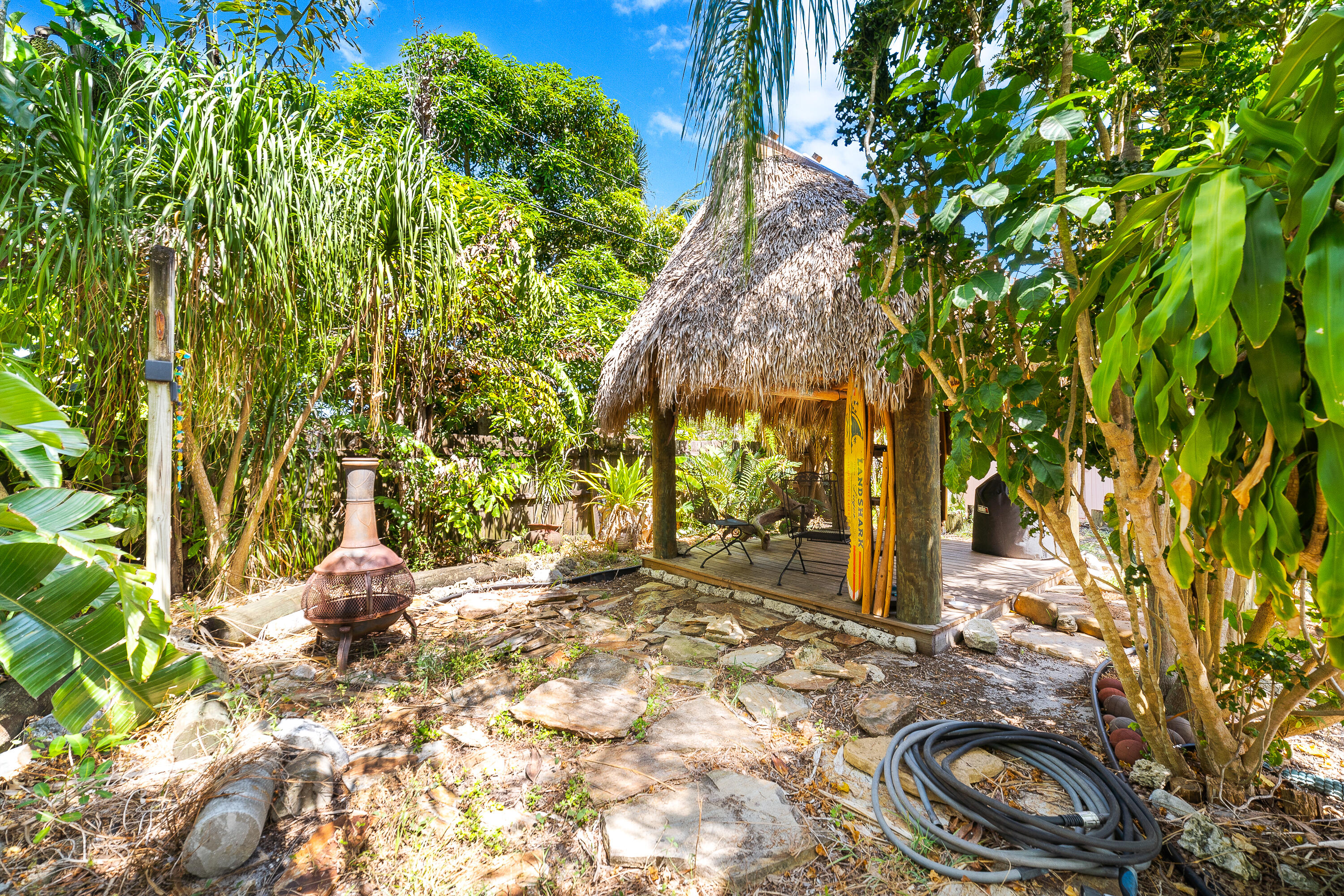 STUNNING! This adorable 3 bed, 2 bath single family home has an upgraded kitchen that directly flows to the dining room. Relax in the cozy Florida Room or step outside to the backyard oasis where there is a tiki hut for you to relax in! Brand new Roof(2022) & Impact glass windows throughout that provide nice natural sunlight. Nice updated porcelain wood-like tile throughout the living room, kitchen, and dining room. Just a short bike ride or walk to the beach. This is a must see in person- call now and make this your new home.