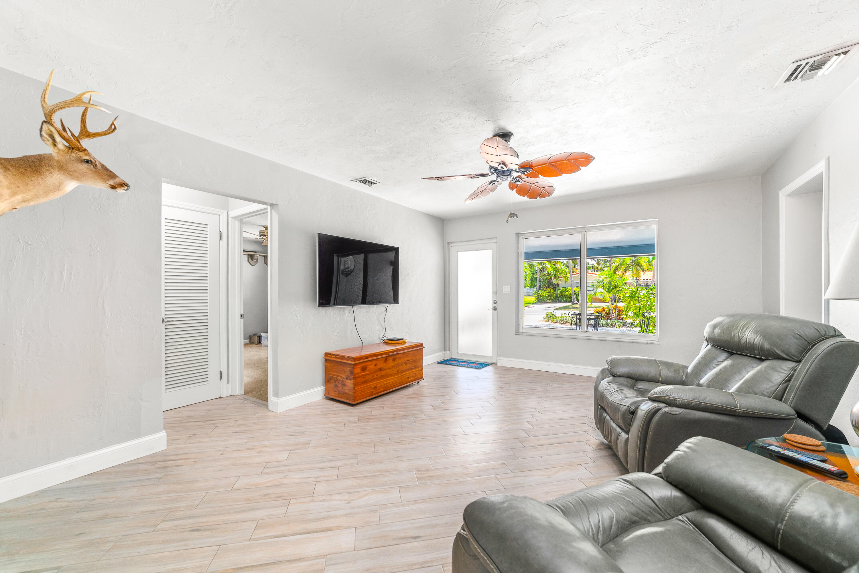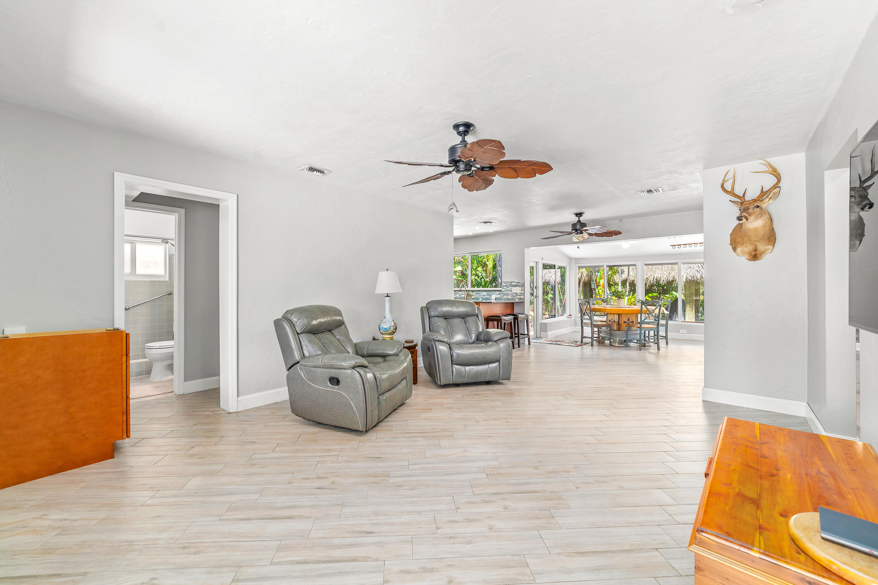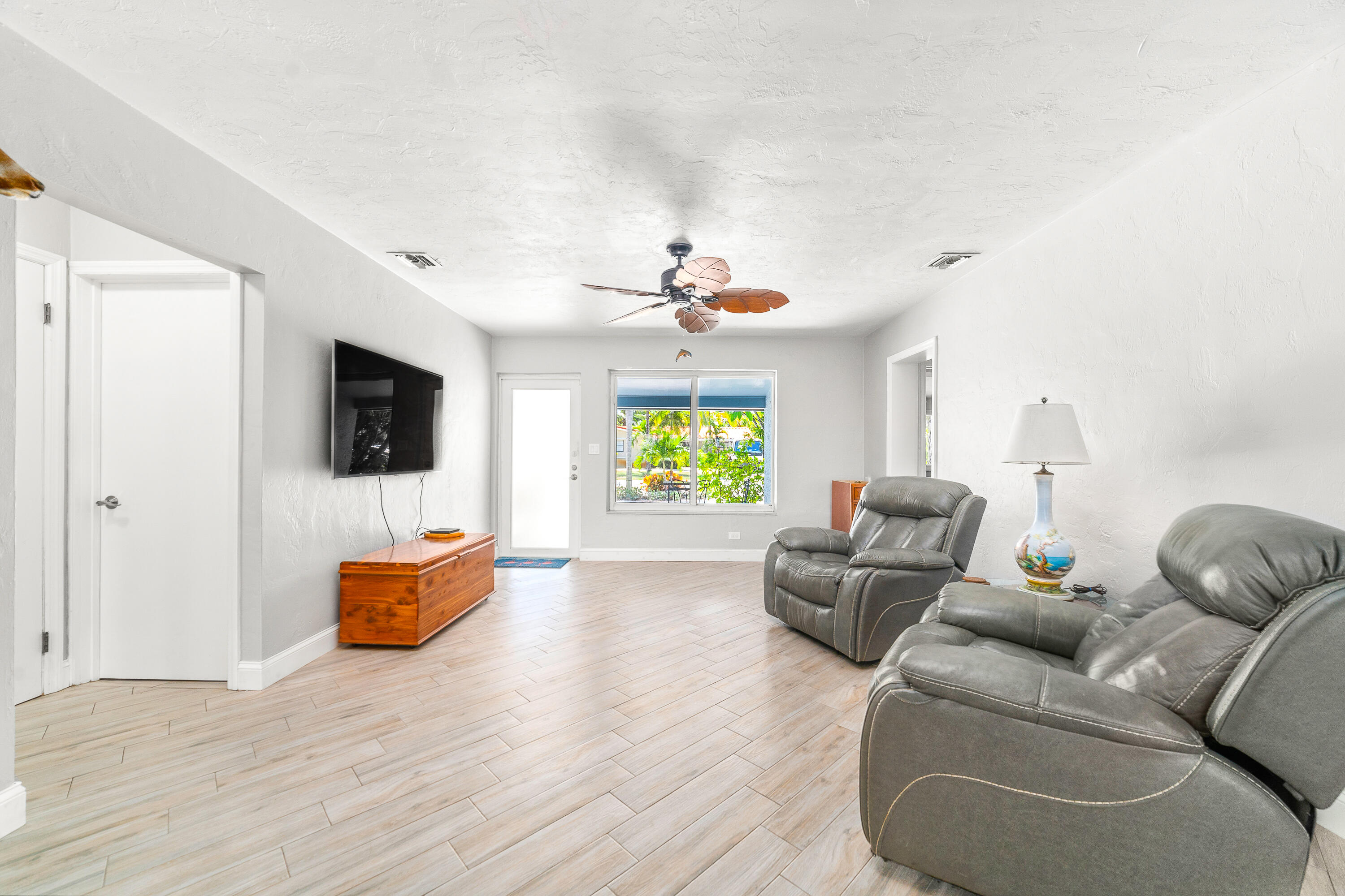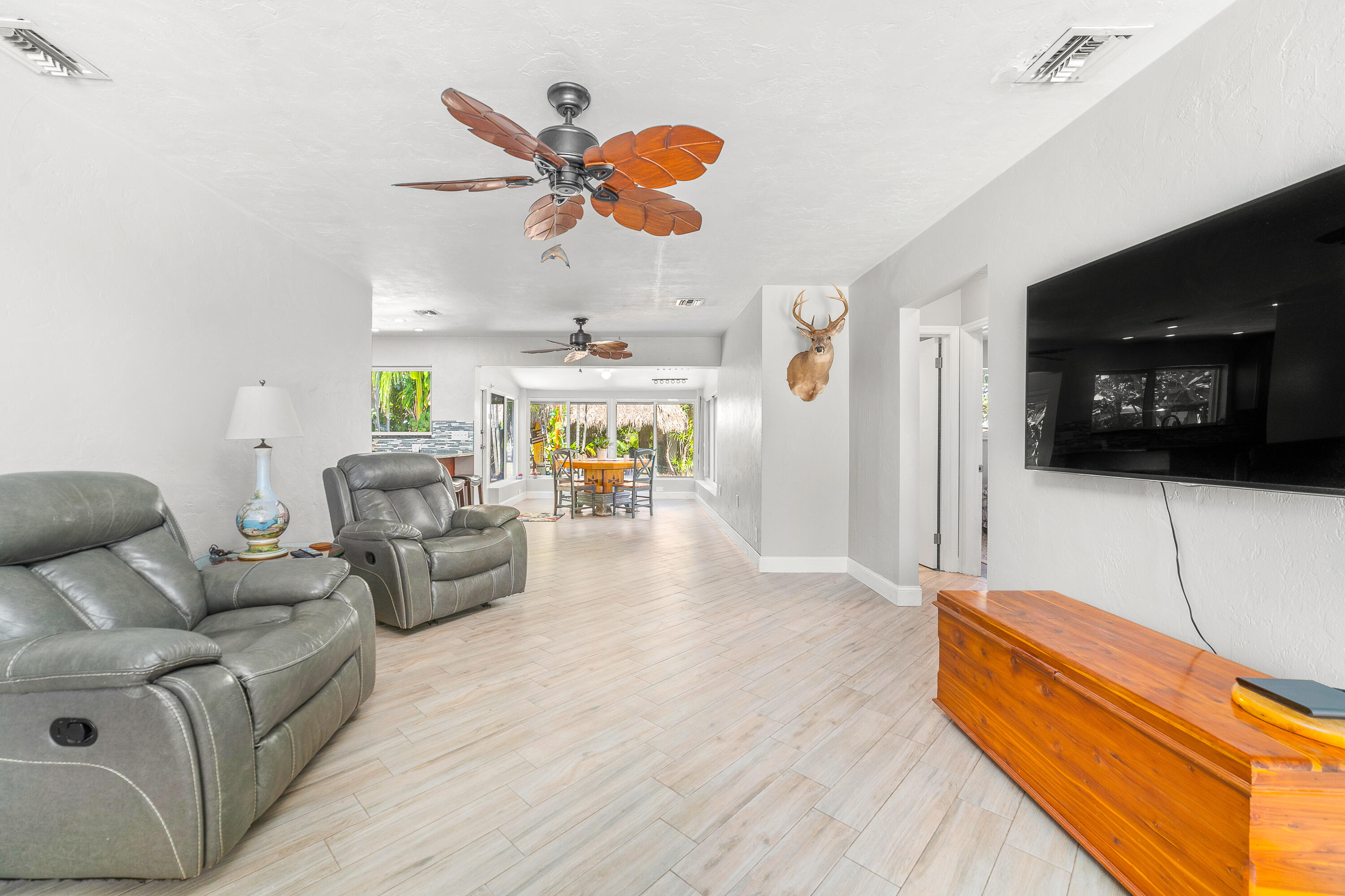 STUNNING! This adorable 3 bed, 2 bath single family home has an upgraded kitchen that directly flows to the dining room. Relax in the cozy Florida Room or step outside to the backyard oasis where there is a tiki hut for you to relax in! Brand new Roof(2022) & Impact glass windows throughout that provide nice natural sunlight. Nice updated porcelain wood-like tile throughout the living room, kitchen, and dining room. Just a short bike ride or walk to the beach. This is a must see in person- call now and make this your new home.