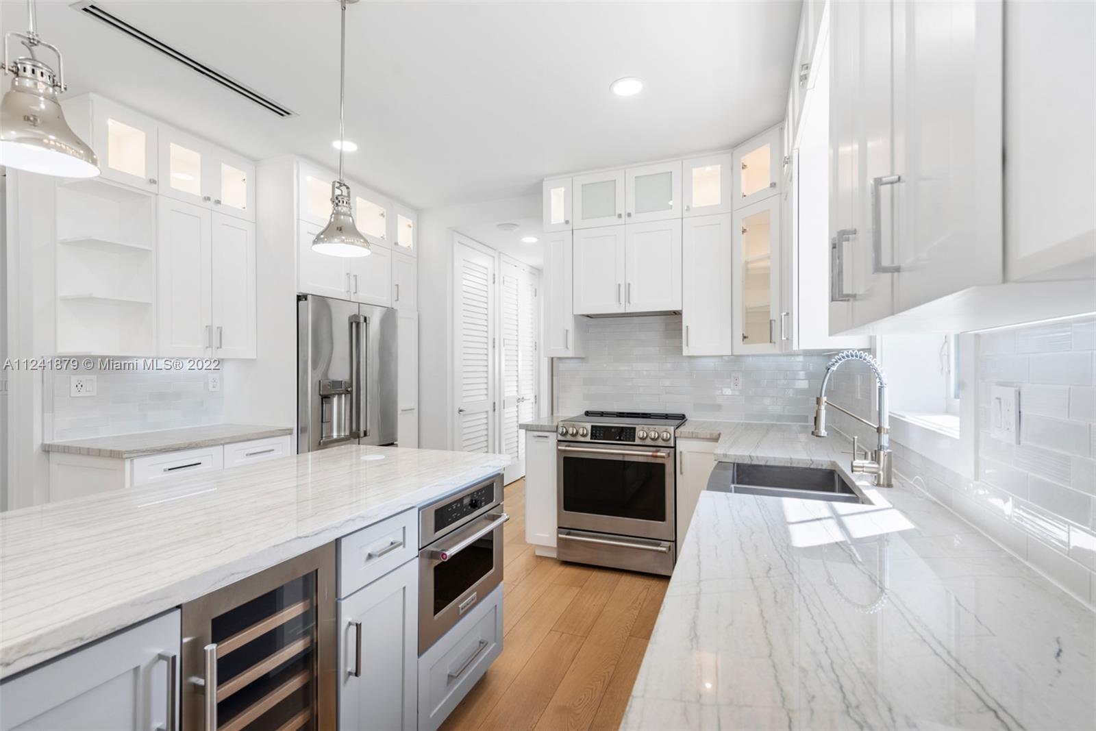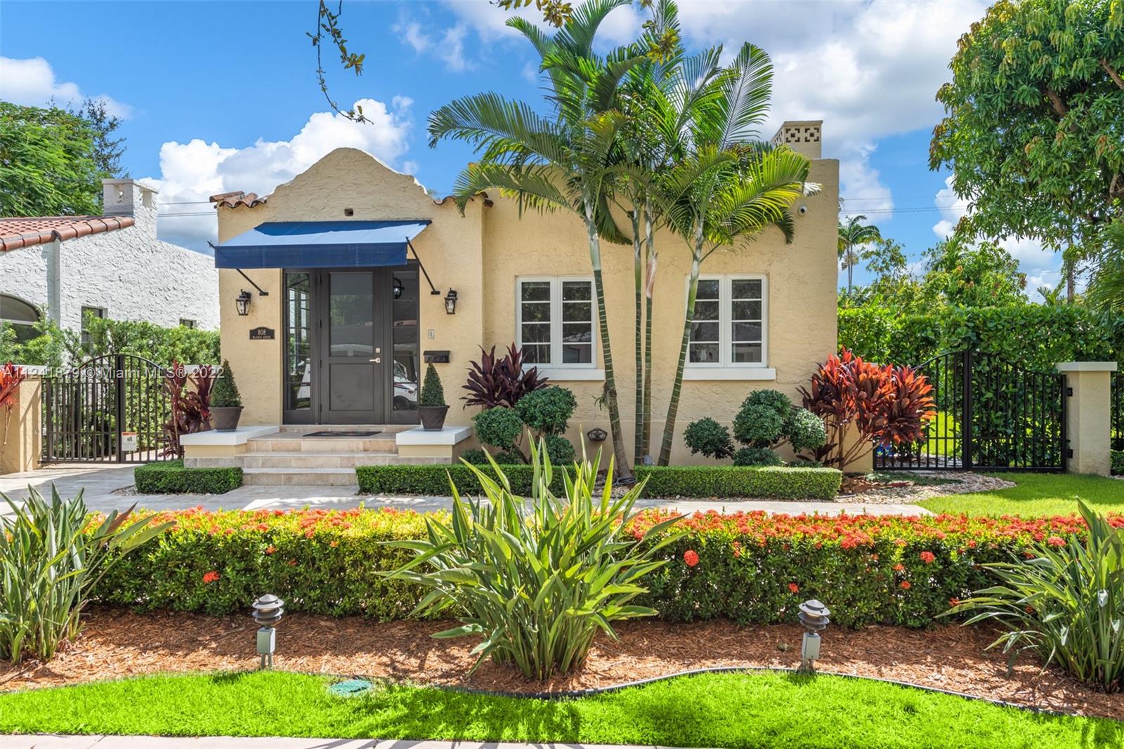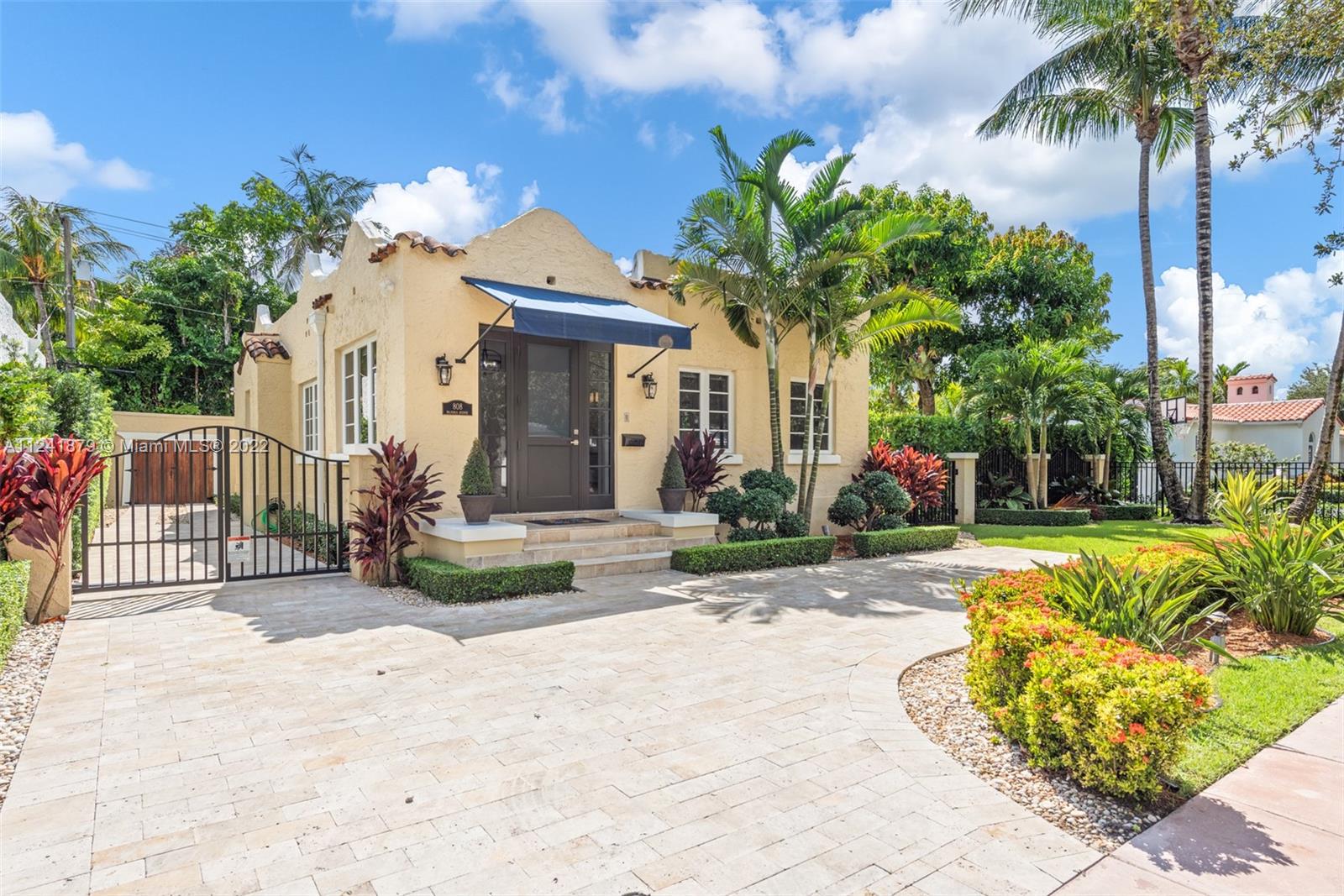 Absolutely stunning old Spanish home renovated to perfection. 2 en-suite BR + guest BA and 1/1 detached cottage on a 75’x113’ oversized lot on city sewer. Home has been carefully designed by talented architect with the finest of materials & systems including new hardwood floors from Italy, impact windows and doors, 3 year old roof, all white and stainless-steel kitchen with Cafe appliances, Quartzite counters, custom glass insert cabinetry, Trane AC, Carrera marble fireplace, California closets, high-end shades & electric window treatments, & marble baths. Travertine paver driveway, electric gates for security & charging station for electric cars. State-of-the-Art security system with cameras & remote access. Spacious yard with avocado trees & plenty of room to add a pool.