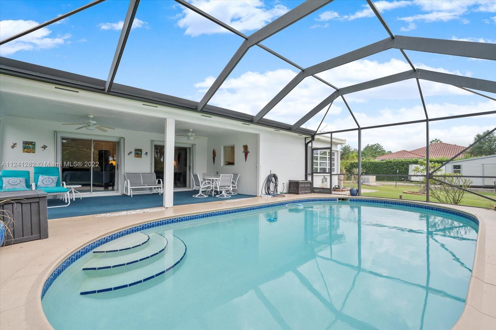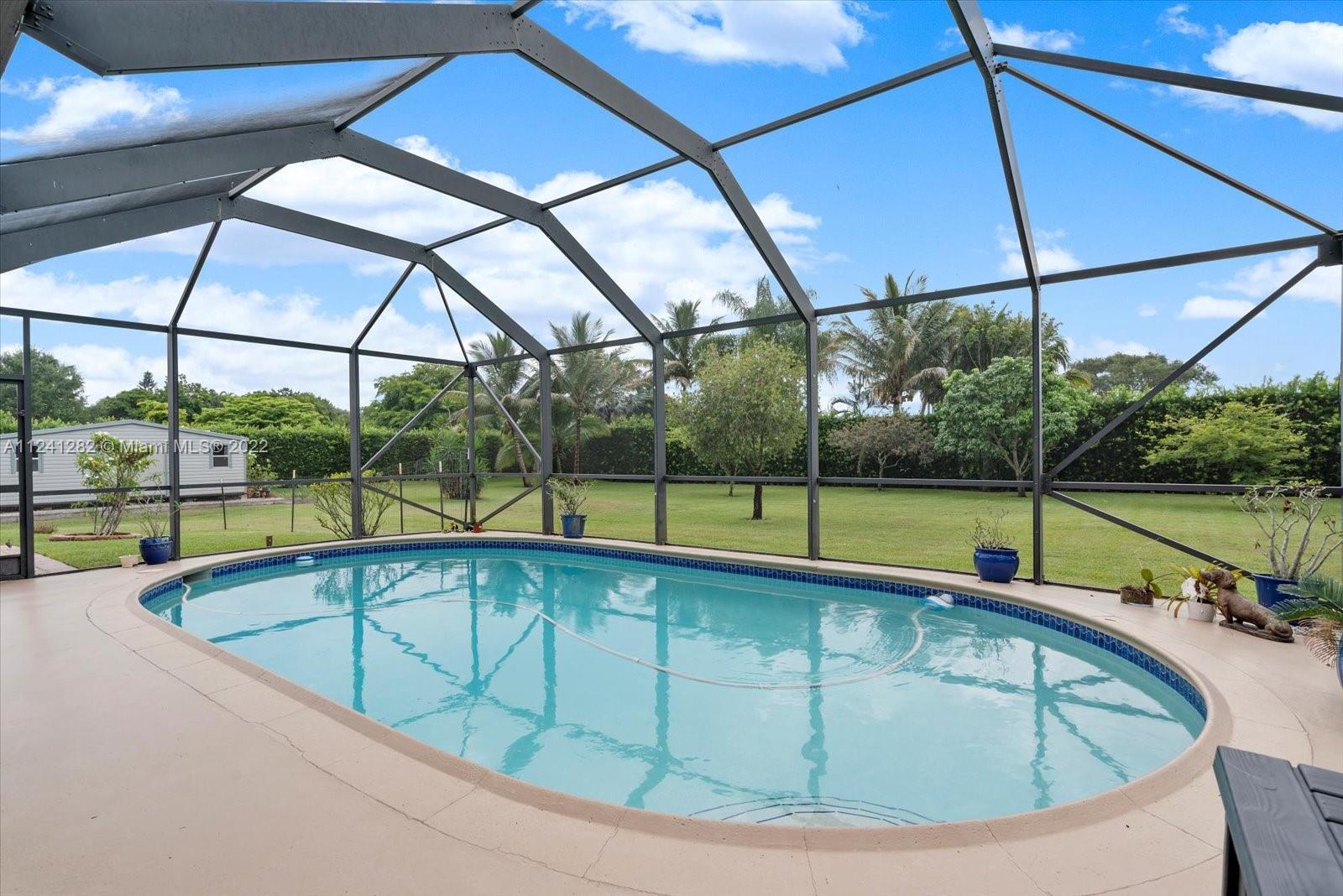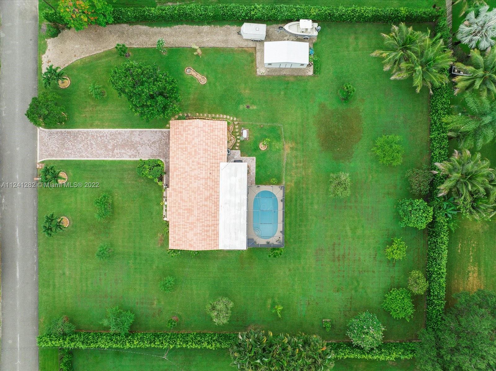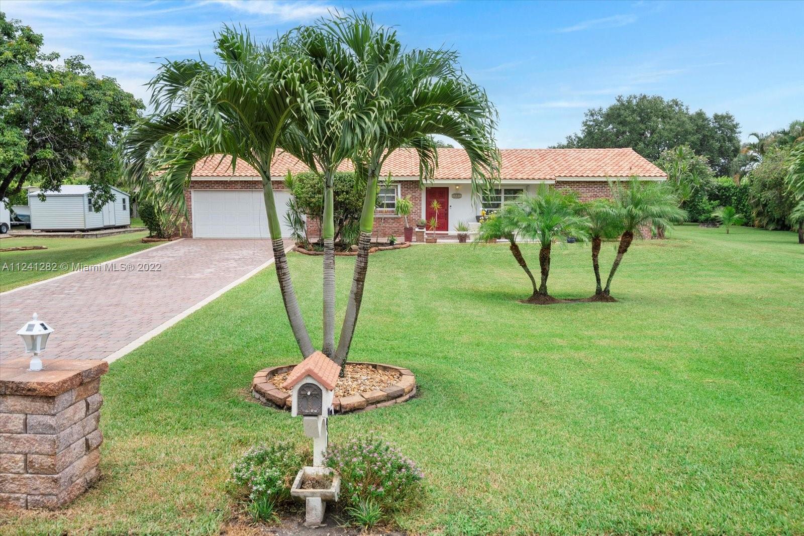 Stunner one-acre lot in Davie offers plenty of space to expand this cozy 2 bedrooms 2 bathrooms single family with screened pool. The one-story home has split floor plan, master bedroom with walking closet, hurricane impact windows, accordion shutters and impact doors. The screened backyard area offers a separate covered area so you can enjoy the pool without getting sunburned. The oversized lot features lush tropical landscaping, with fruit trees including coconut and mango trees. Storage Shed 24x12 offers extra storage space/workshop. 2 Car garage and super long driveway fit up to 6 cars and additional space to park your boat, RV, or trailer. No HOA! A hardwired generator for the whole home. New A/C, pool equipment and water softener. A+ schools. Close to I-595, restaurants, and shopping