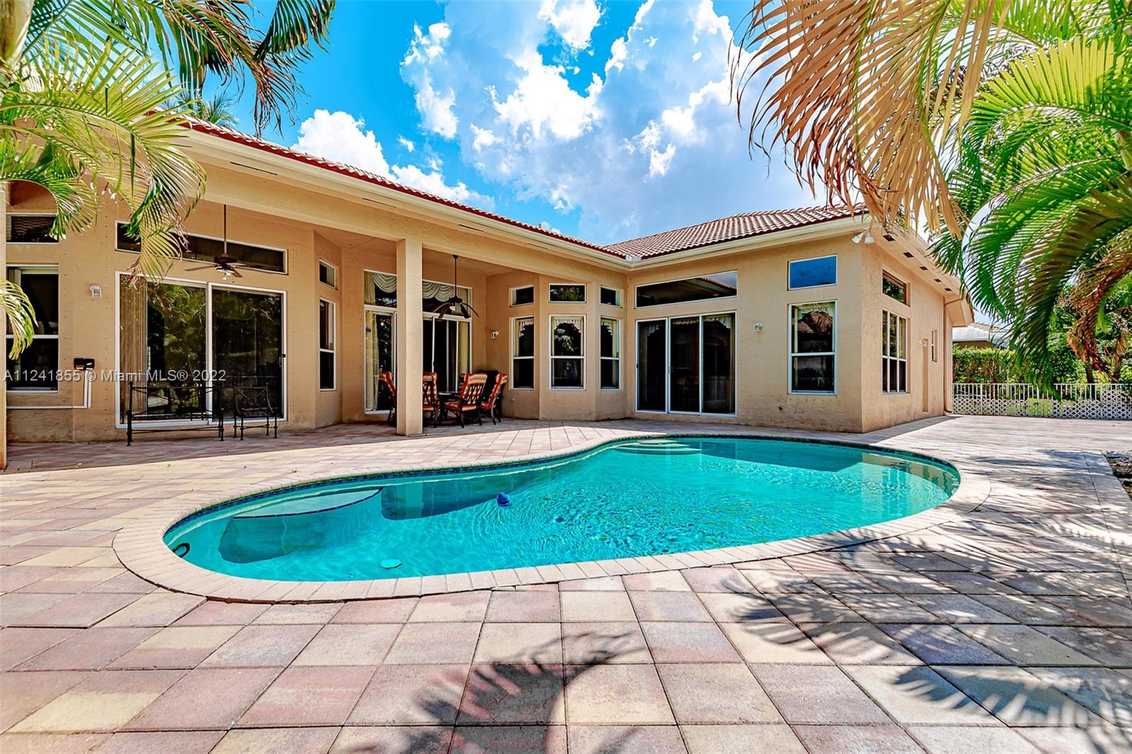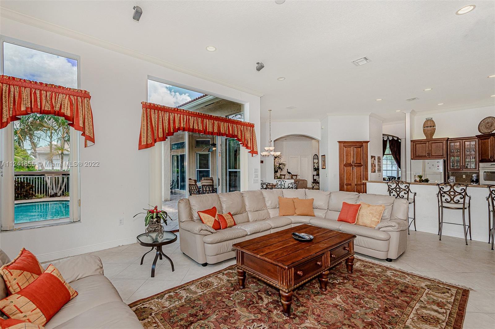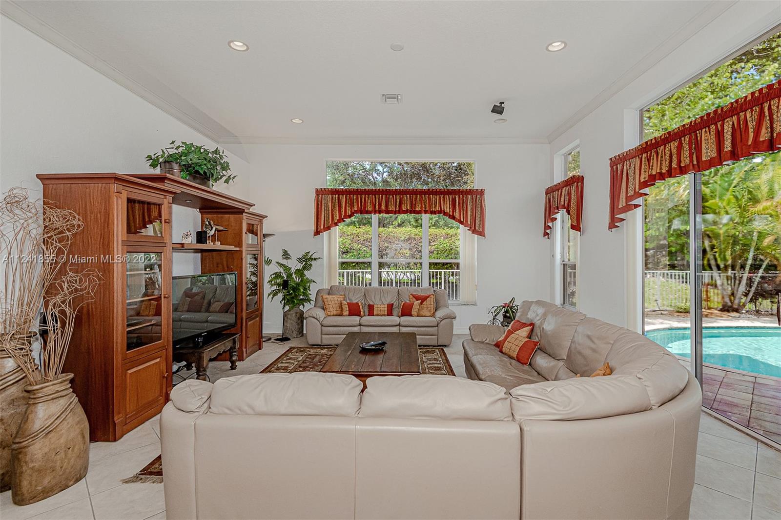 Beautiful one-story pool home in resort style gate community at Sunset lakes with 5 bedrooms, 3.5 baths, Den office and pool.