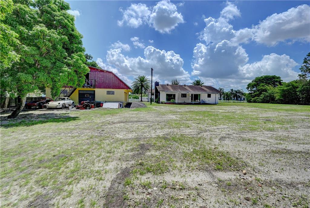 This 2.28 acres lot will not last! Most desirable residential lot in Country Club Ranches. Lot is very wide & deep, & also very private. ASIS. Lot has been filled up 4 feet, to prevent flooding issues. No HOA & No Restrictions. Can park RVs, trucks, trailers, etc. Farm animals & horses permitted. Can use land as a plant nursery. House & barn are both CBS. Can have 2 total structures. Could make a hallway from main house to the 2-story barn, then subdivide lot & build another home. Needs TLC. Can renovate, build out or build new construction home of your dreams! Newer heightened fence on right side of lot. Mega Mall Miami being built w/ waterparks & 30k+ jobs. Currently 6 bedroom/2 bath, formally 3 bedrooms/2 bath, w/ a 2-car garage. Can easily be converted back. Septic tank & well water.