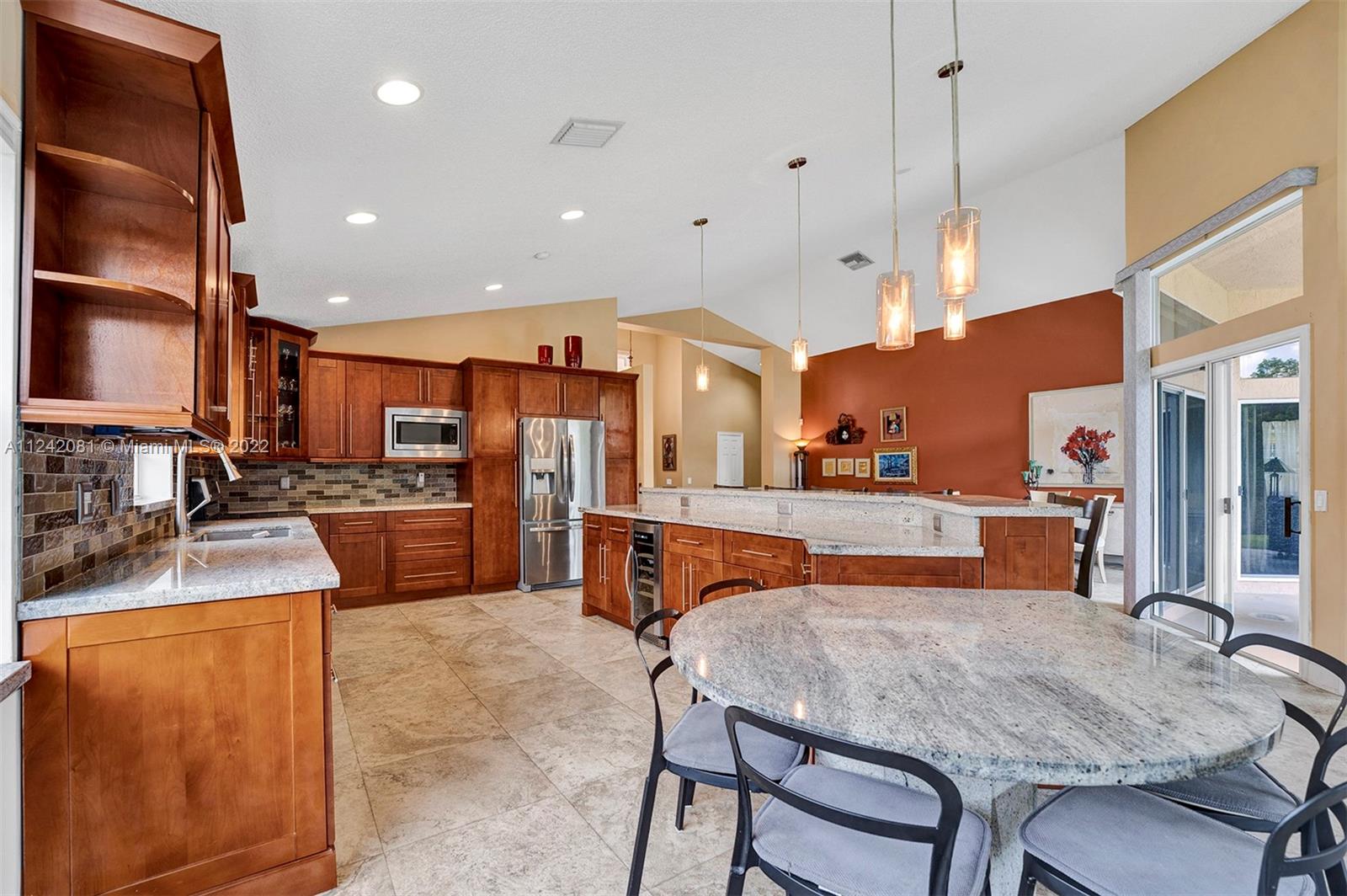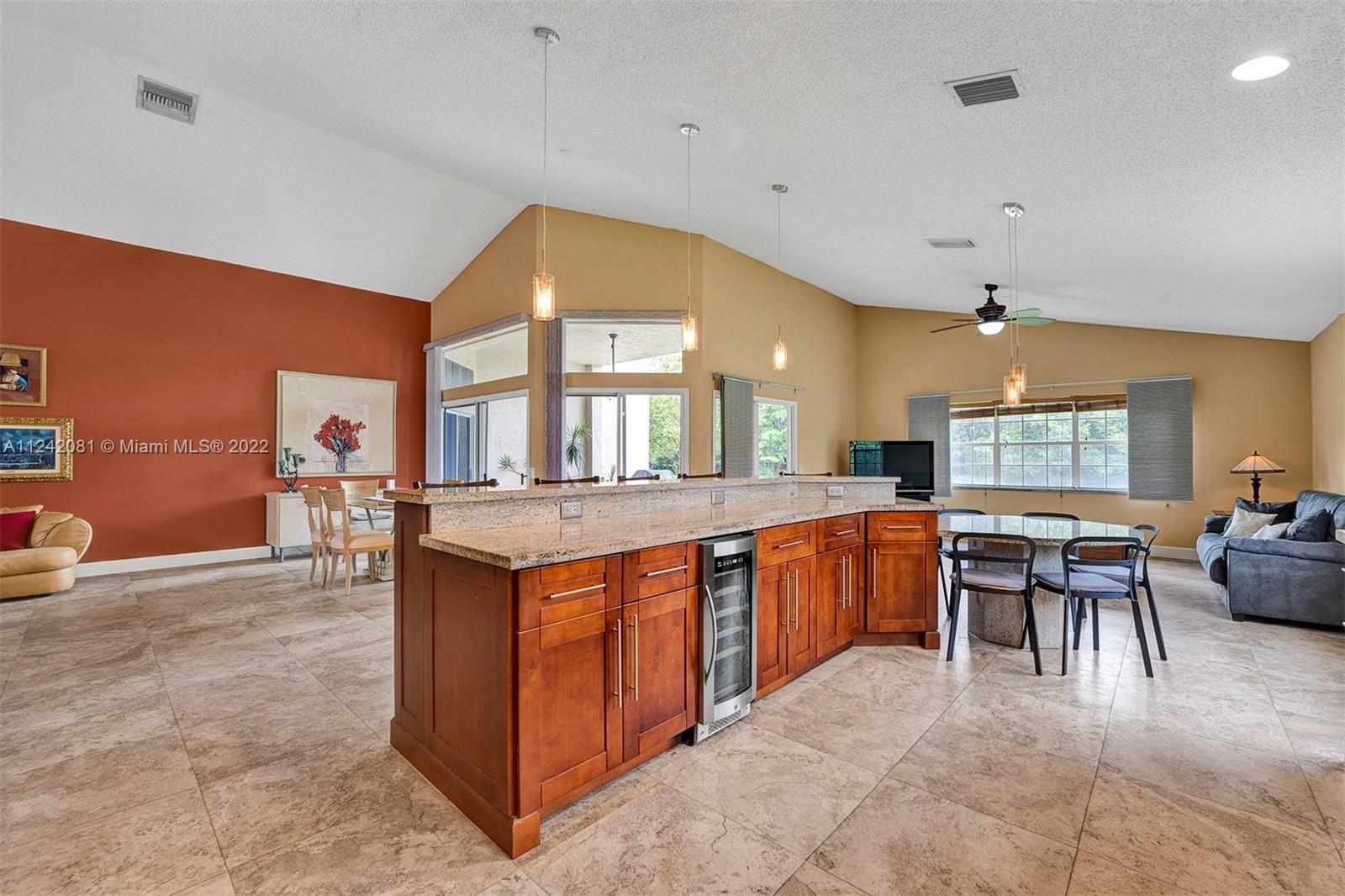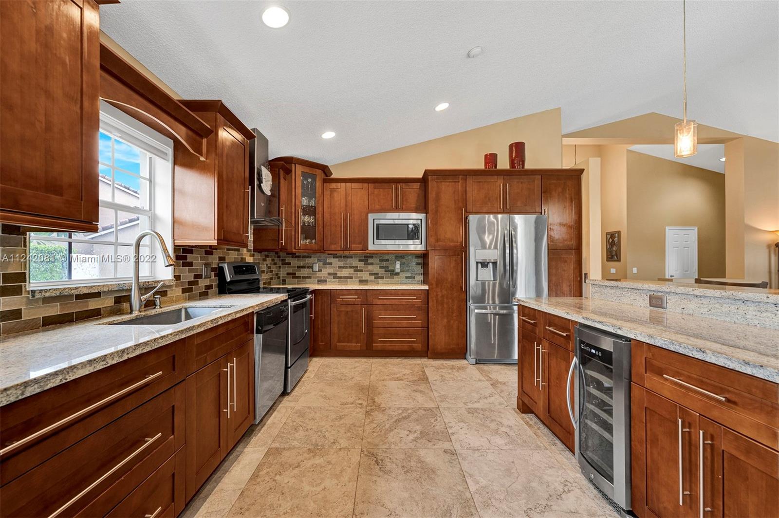 **Open House 8/20/22 1pm-3pm**You will fall in love with this gorgeous, updated home. Imagine entertaining and cooking for your Family & friends in this newly remodeled gourmet kitchen, This Home Features: /Designer Kitchen with Stainless Steel Appliances, /Wine Cooler, /Wood Cabinets, Granite Countertops & backsplash, /NEW ROOF Installed in 2022, /14 Ft Vaulting Ceilings, /Remodeled bathrooms, /Flooring-Porcelain floors throughout main areas & laminated wood floors in all 4 bedrooms. /Spacious Living, Dining area & Family Room Overlooking the Lake view. /The Back Sliding Doors will lead you to your private oasis where you can enjoy the privacy of your own backyard with a peaceful lake view and OVERSIDE LOT OF 12,033 sqft,. /Equip With Hurricane Shutters. /Very Low HOA FEES, Guard Gated.