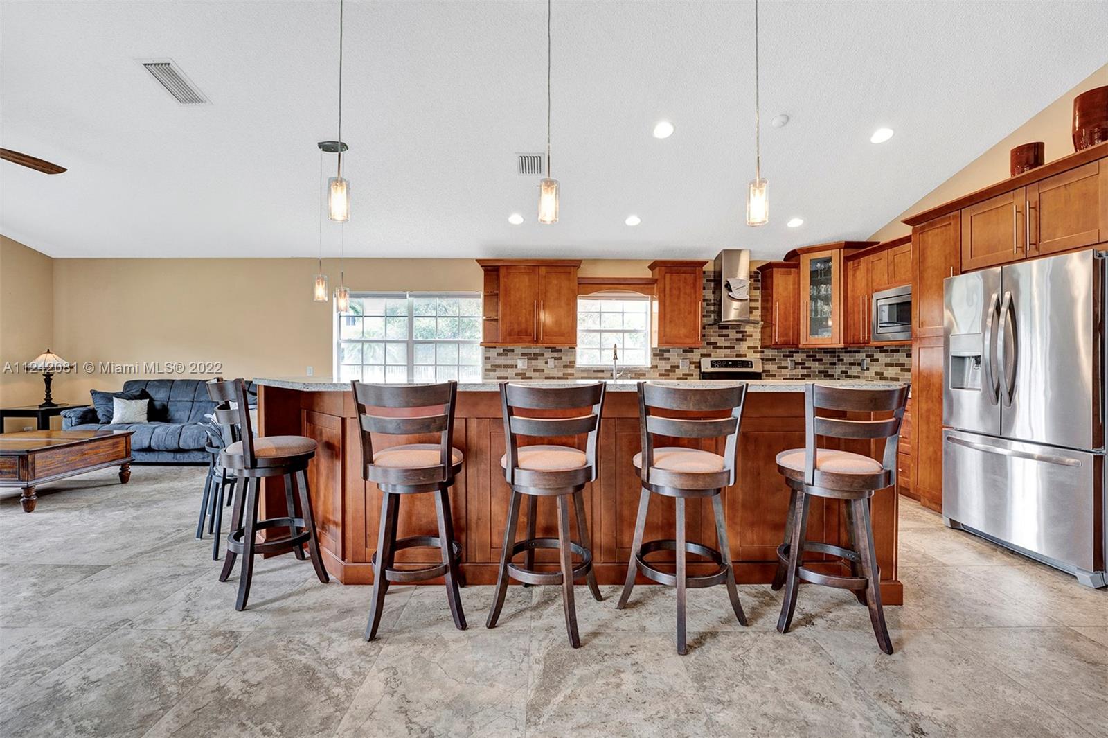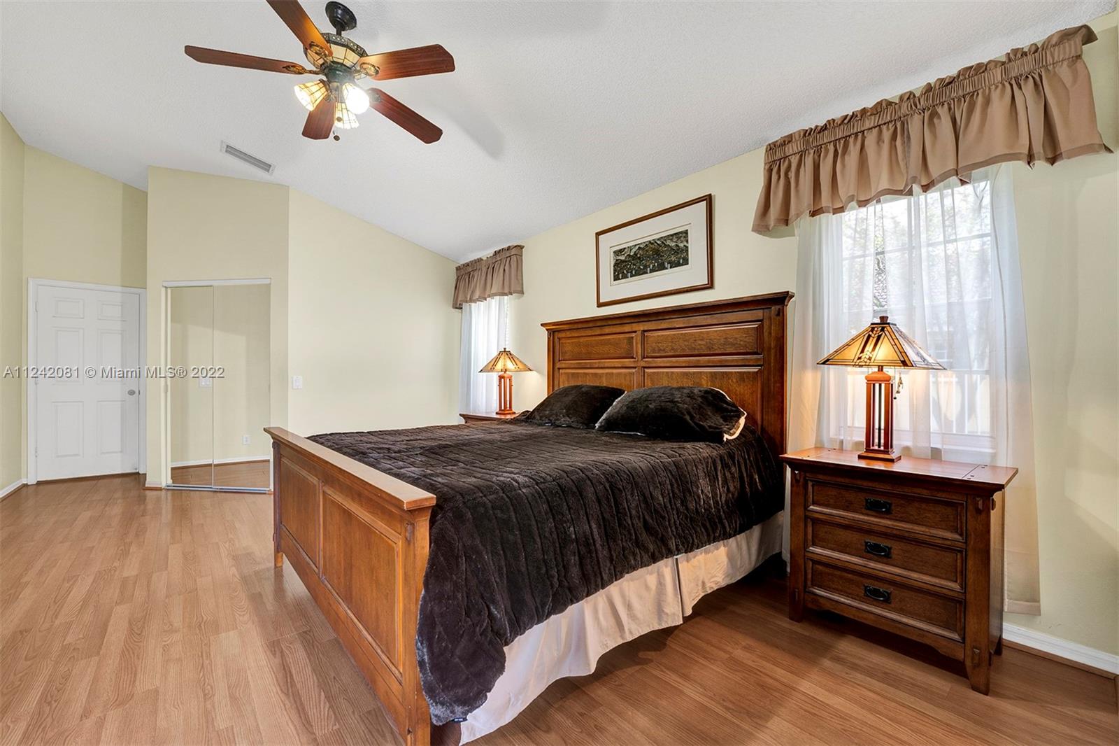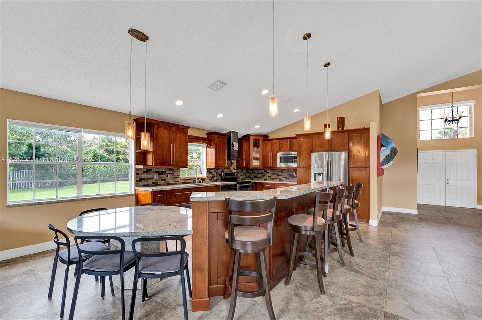 **Open House 8/20/22 1pm-3pm**You will fall in love with this gorgeous, updated home. Imagine entertaining and cooking for your Family & friends in this newly remodeled gourmet kitchen, This Home Features: /Designer Kitchen with Stainless Steel Appliances, /Wine Cooler, /Wood Cabinets, Granite Countertops & backsplash, /NEW ROOF Installed in 2022, /14 Ft Vaulting Ceilings, /Remodeled bathrooms, /Flooring-Porcelain floors throughout main areas & laminated wood floors in all 4 bedrooms. /Spacious Living, Dining area & Family Room Overlooking the Lake view. /The Back Sliding Doors will lead you to your private oasis where you can enjoy the privacy of your own backyard with a peaceful lake view and OVERSIDE LOT OF 12,033 sqft,. /Equip With Hurricane Shutters. /Very Low HOA FEES, Guard Gated.