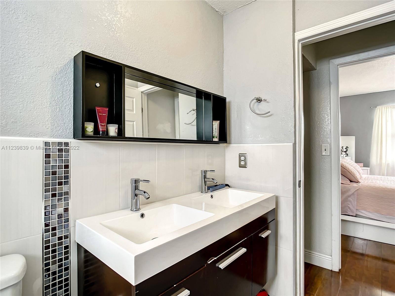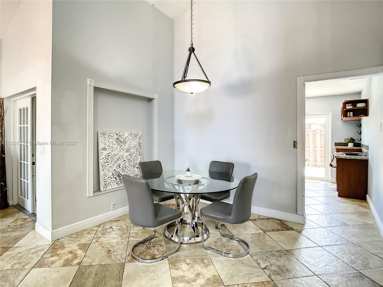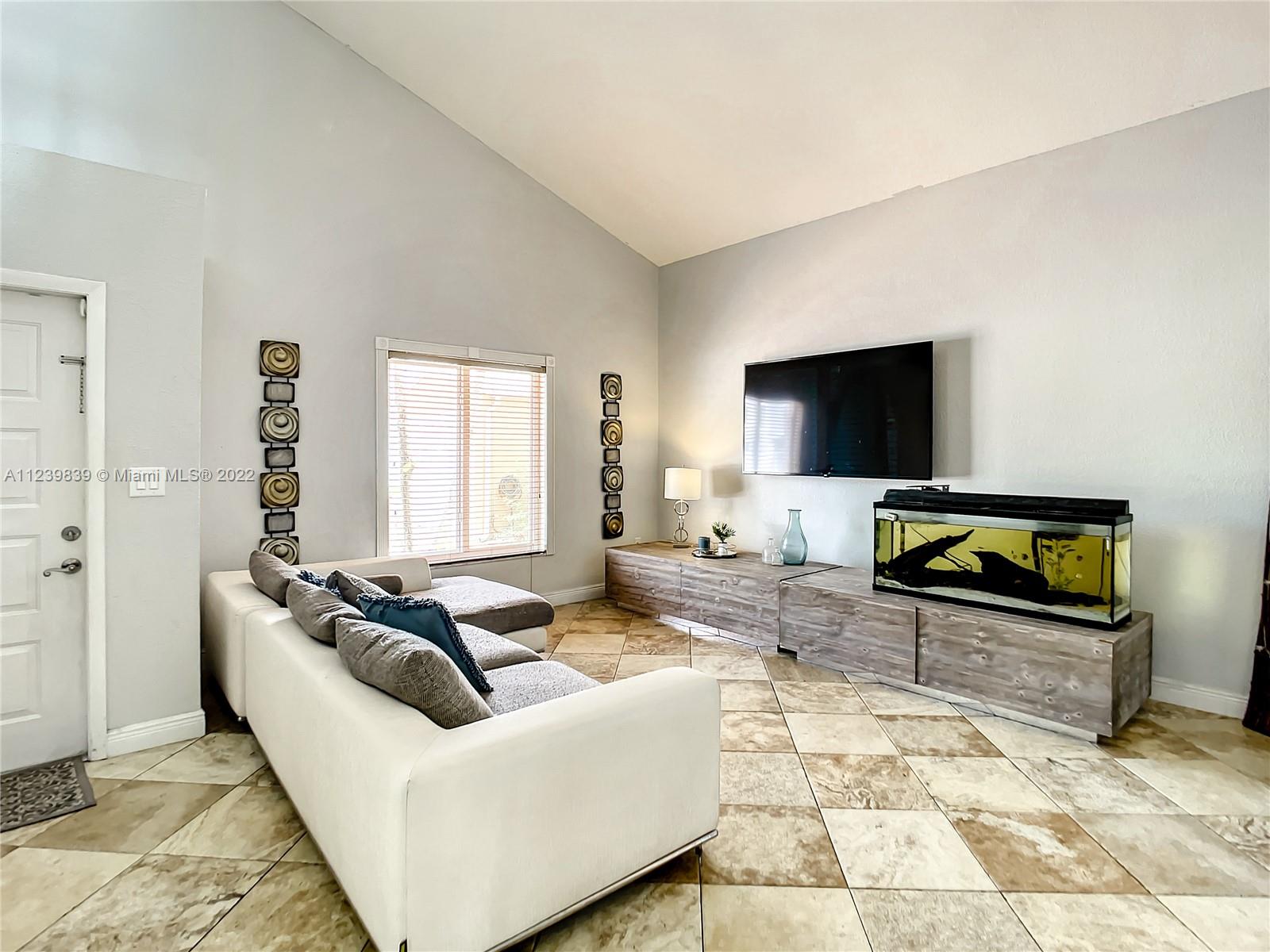 Two-story single family home in Country Lake Homes fully remodeled in 2010. The Primary bedroom & en-suite bath are in the first floor. The garage was made into a bedroom & bath. On the second floor 2 more bedrooms with a Jack-n-Jill. An addition was done, consisting of another bedroom & bath, making the entire home have a total of five bedrooms. All bathrooms are remodeled with porcelain tile floors, new countertops & showers. The property also has an open floor plan Family room & Dining space. Kitchen has been upgraded with granite counter tops & stainless-steel appliances. Very high ceilings bring in a lot natural light & make the home feel very spacious. Covered patio and 3 parking spaces. A/C from 2010, Washer & dryer in first floor. Hurricane impact windows were installed in 2021.