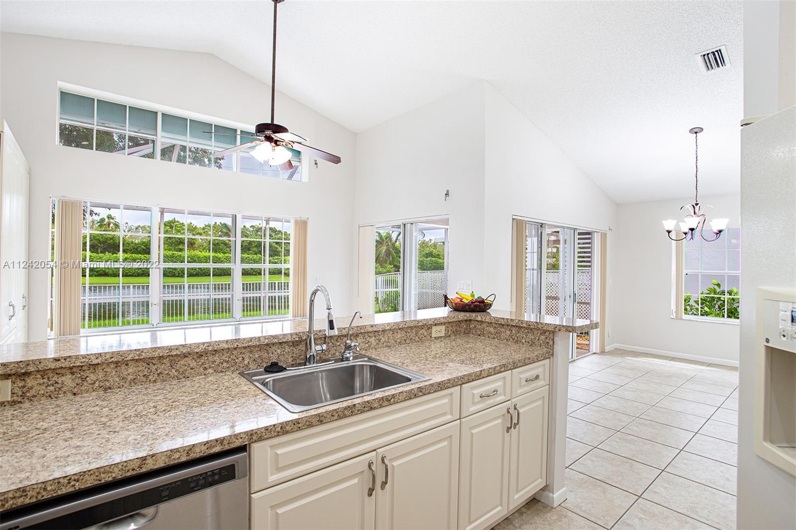 BEAUTIFUL WATERFRONT HOME. Many architectural features include a foyer, vaulted ceilings, half wall at an angle, beautiful built-in wood cabinets in the family room, an open floor plan, and niches to display great artwork. The Master bedroom is very spacious and the 2nd & 3rd bedrooms are nicely sized as well. Both bathrooms are very generous in size. Great Lake views. Has Roladon hurricane shutters and the one in the family room is electric.