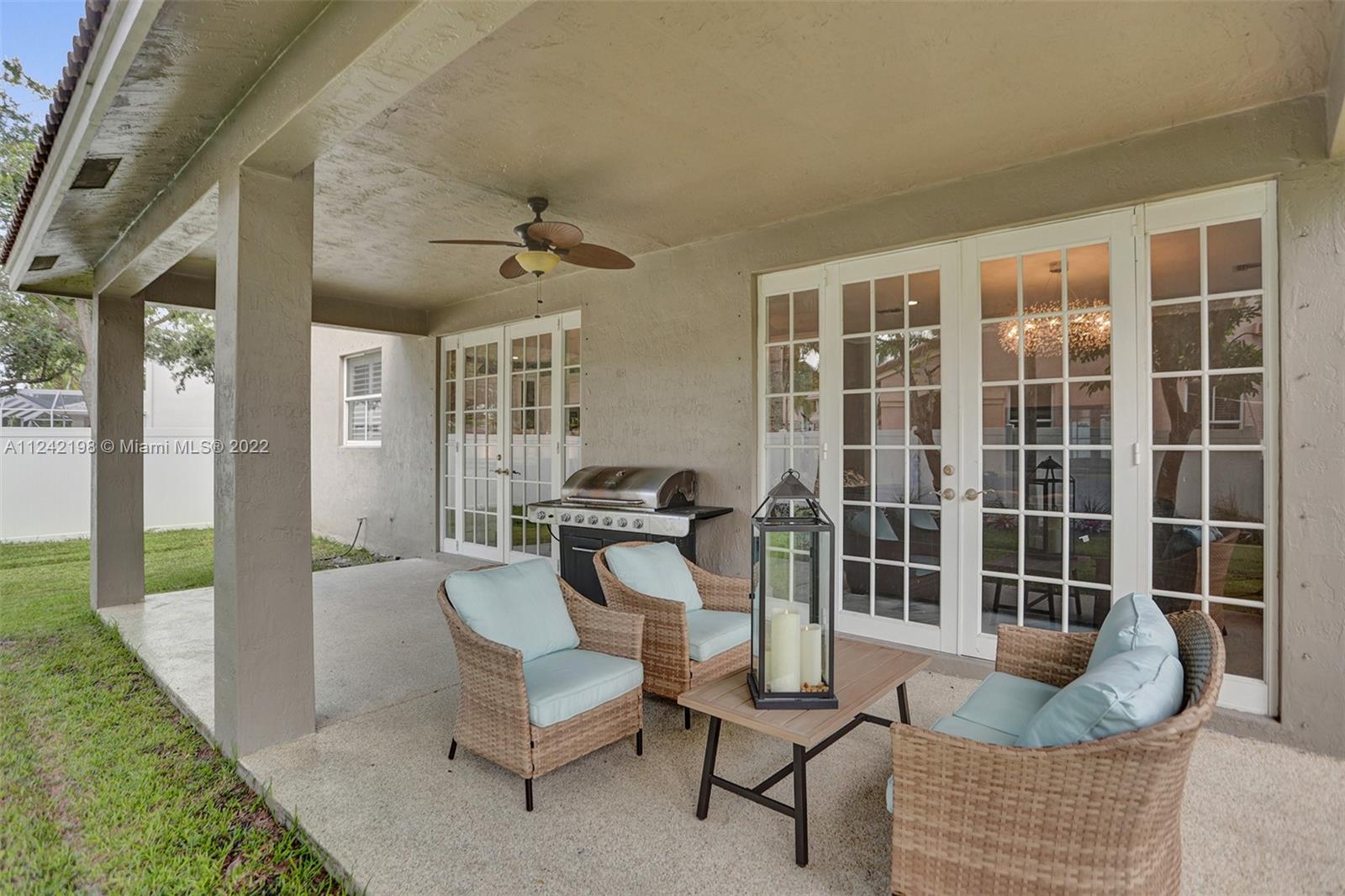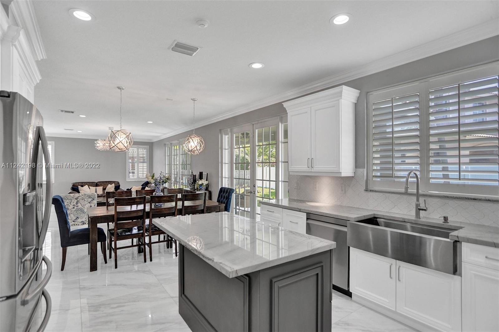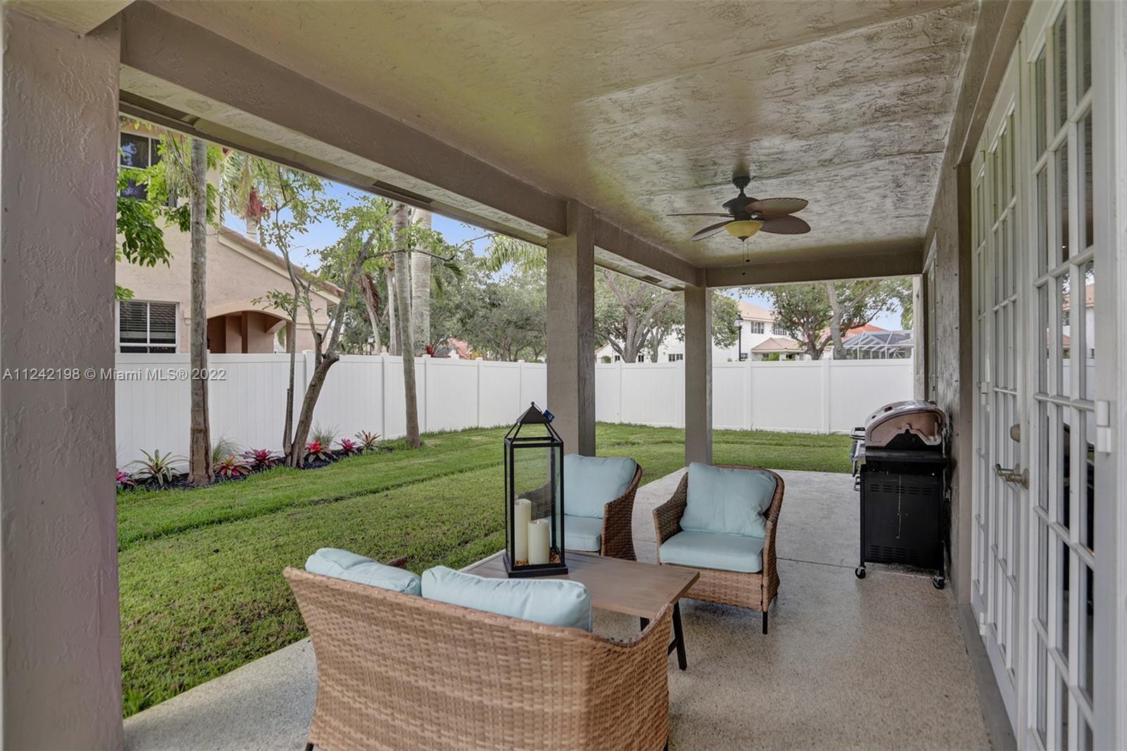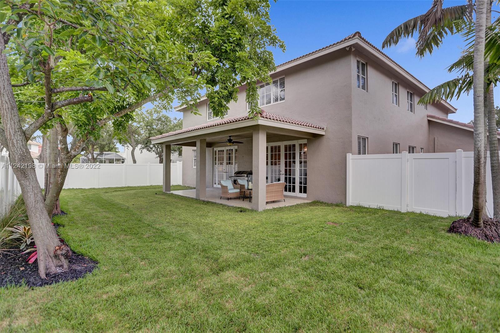 HIGHLY RENOVATED FROM TOP TO BOTTOM. MODERN WHITE KITCHEN W/ BRAND NEW 2021 STAINLESS STEEL APPLIANCES, QUARTZ COUNTERTOPS, AND DECORATORS BACKSPLASH. 24X24 WHITE PORCELAIN FLOORING IN LIVING AREAS. DOUBLE FRENCH DOORS LEAD TO A PRIVATE YARD, FULLY FENCED W/ PVC PRIVACY WHITE FENCE AND SPACIOUS PATIO. FULL BED AND BATH FIRST LEVEL. ALL BATHS RENOVATED IN A CONTEMPORARY STYLE. OVERSIZED OWNER'S SUITE W/ SITTING AREA AND LUXURIOUS BATH, VESSEL TUB, AND SHOWER. WOOD FLOORS IN ALL BEDROOMS. FRESHLY PAINTED INTERIOR. GRAND TWO-STORY LIVING ROOM, EXTENSIVE CROWN MOLDINGS, WAINSCOTING, AND PLANTATION SHUTTERS. THREE-CAR GARAGE W/ EPOXY FLOOR. FRESHLY PAINTED EXTERIOR. HURRICANE PROTECTION. 2 BRAND NEW A/C 2022. WALK TO THE COMMUNITY POOL AND SCHOOLS. GATED COMMUNITY.