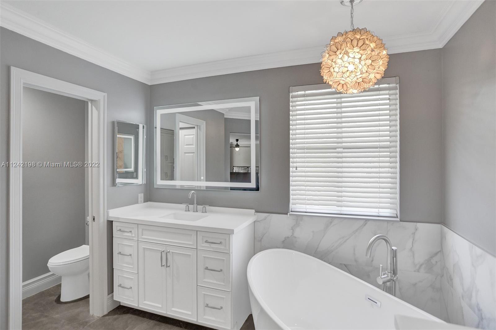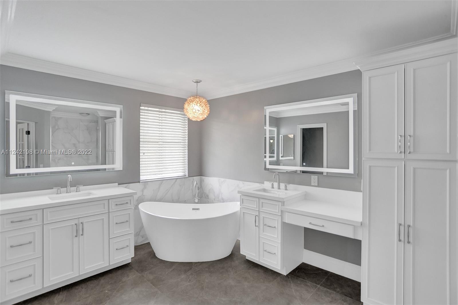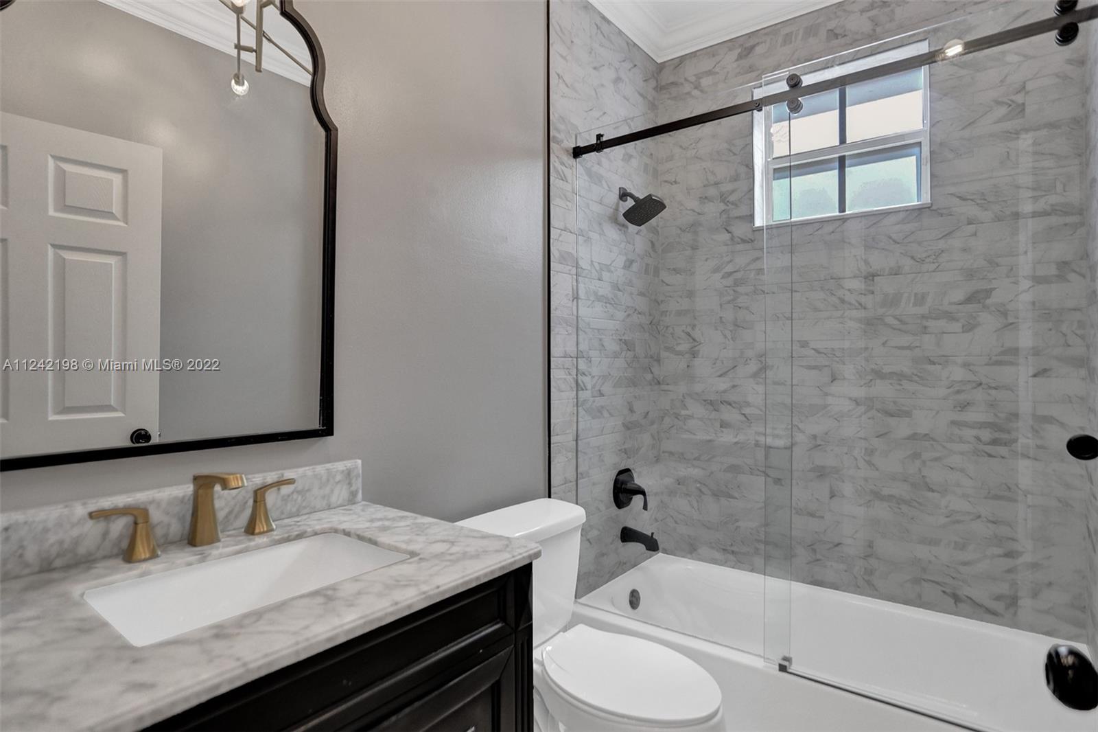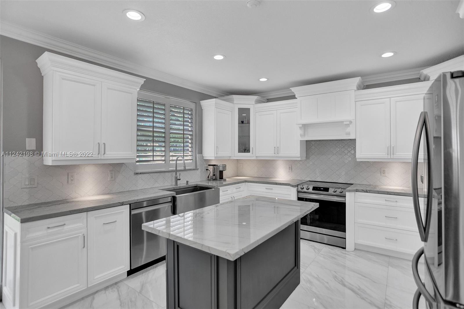 HIGHLY RENOVATED FROM TOP TO BOTTOM. MODERN WHITE KITCHEN W/ BRAND NEW 2021 STAINLESS STEEL APPLIANCES, QUARTZ COUNTERTOPS, AND DECORATORS BACKSPLASH. 24X24 WHITE PORCELAIN FLOORING IN LIVING AREAS. DOUBLE FRENCH DOORS LEAD TO A PRIVATE YARD, FULLY FENCED W/ PVC PRIVACY WHITE FENCE AND SPACIOUS PATIO. FULL BED AND BATH FIRST LEVEL. ALL BATHS RENOVATED IN A CONTEMPORARY STYLE. OVERSIZED OWNER'S SUITE W/ SITTING AREA AND LUXURIOUS BATH, VESSEL TUB, AND SHOWER. WOOD FLOORS IN ALL BEDROOMS. FRESHLY PAINTED INTERIOR. GRAND TWO-STORY LIVING ROOM, EXTENSIVE CROWN MOLDINGS, WAINSCOTING, AND PLANTATION SHUTTERS. THREE-CAR GARAGE W/ EPOXY FLOOR. FRESHLY PAINTED EXTERIOR. HURRICANE PROTECTION. 2 BRAND NEW A/C 2022. WALK TO THE COMMUNITY POOL AND SCHOOLS. GATED COMMUNITY.