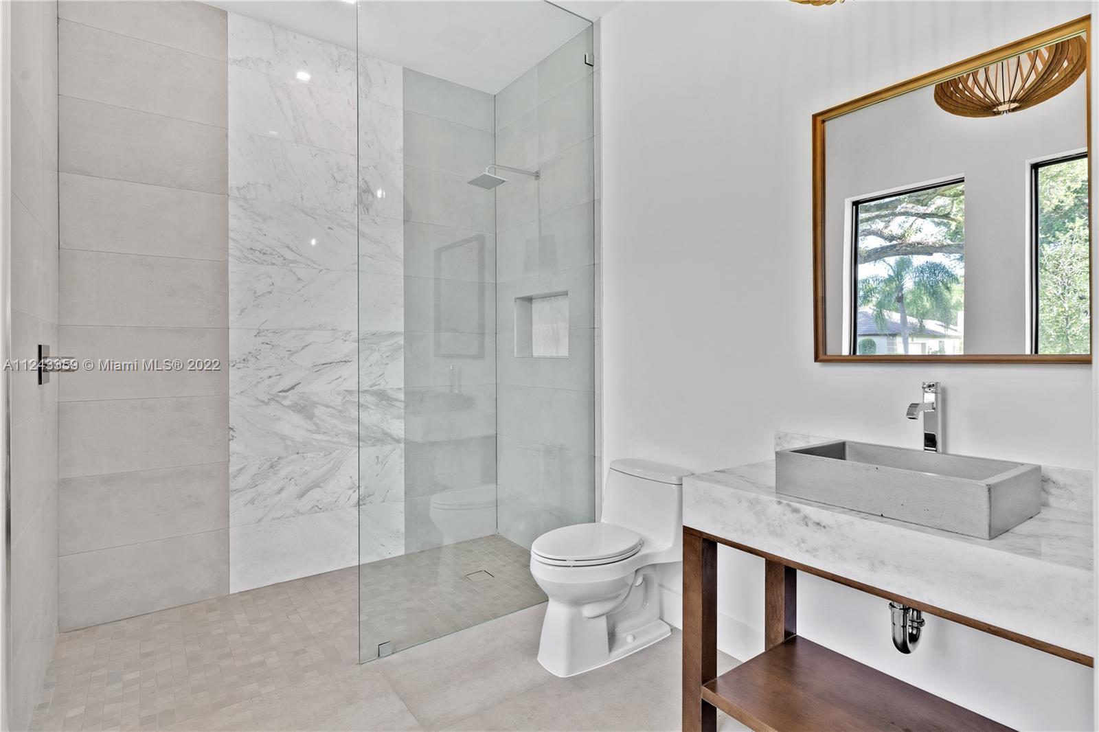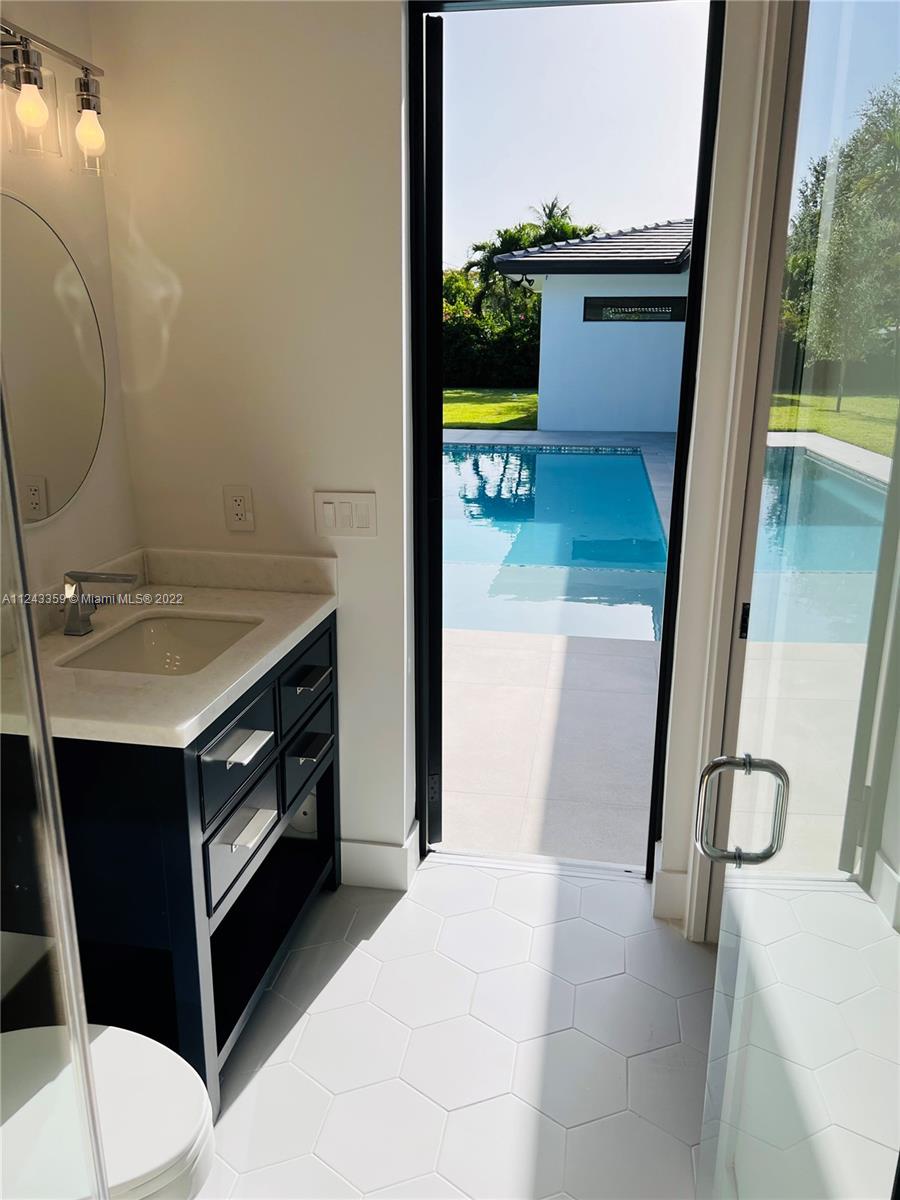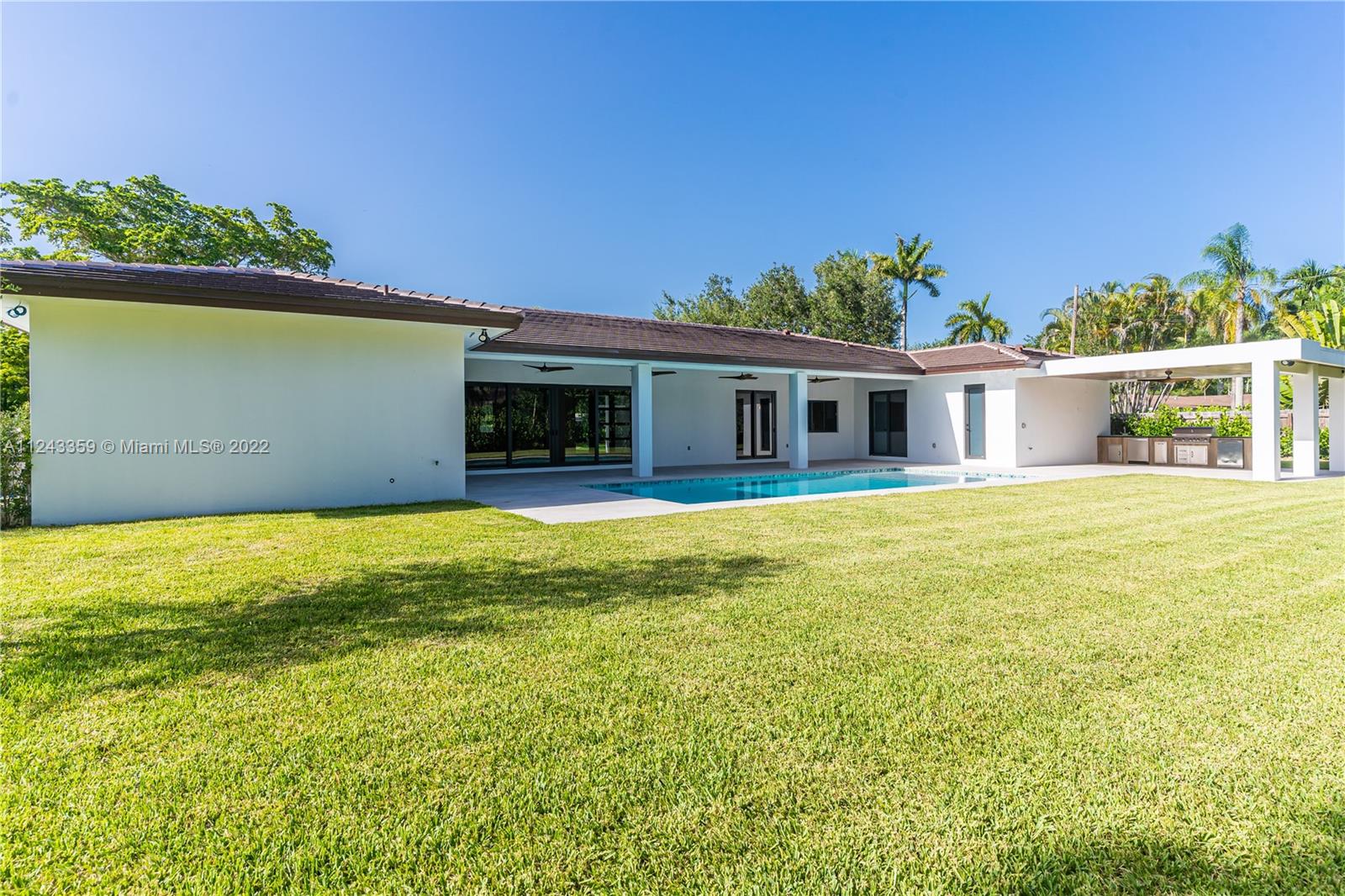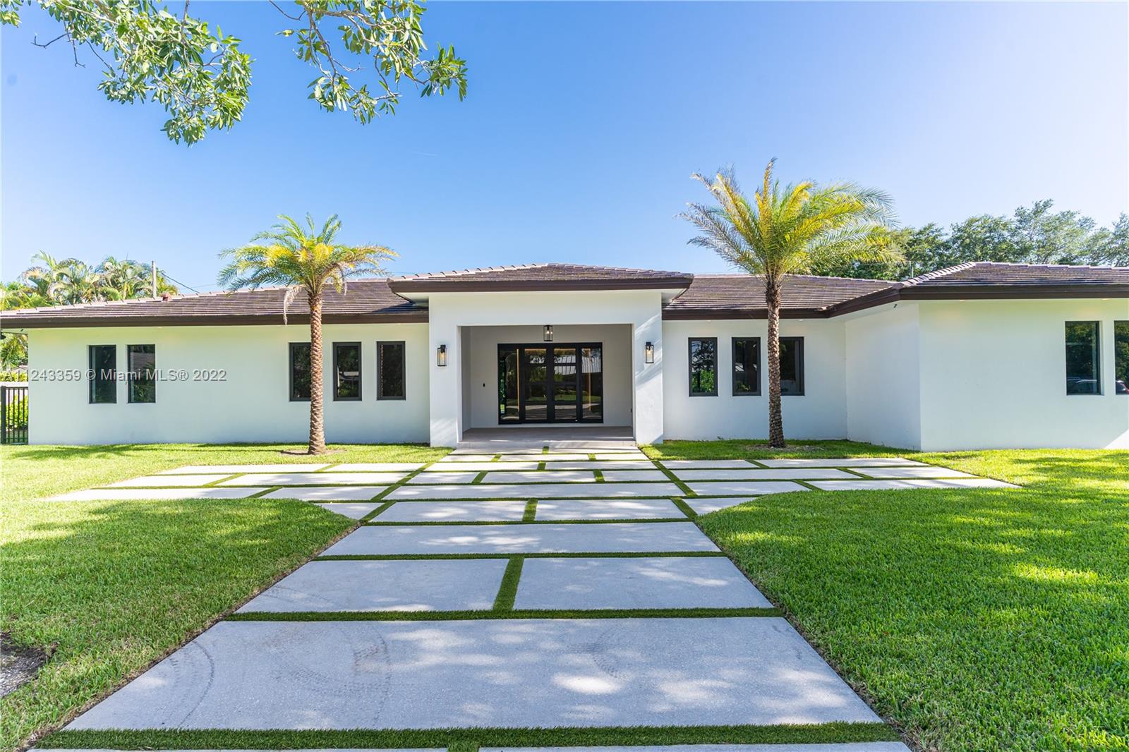 Transforming Miami into a New Level of Leisure. One of a kind 2022 new construction move in ready home located in a peaceful street in the heart of Pinecrest. Over 4K sq feet in a 0.5-acre lot featuring 4 ample bedrooms with modern design bathrooms ensuite and a powder room. Vibrant and luminous open spaces with 10 ft ceilings. The aesthetic is warm whites and rich woods rooted in the essence of graceful minimalism. Masterful selection of fine fixtures and finishes: contemporary gourmet open kitchen, oversize island finished with handpicked natural stone; fully equipped with luxury Thermador® smart appliances, dual zone wine cooler, handcrafted cabinetry, ambient lighting throughout the home. Exterior lounge, summer kitchen, turquoise 16 X 37 pool with a saltwater system and Baja shelf.