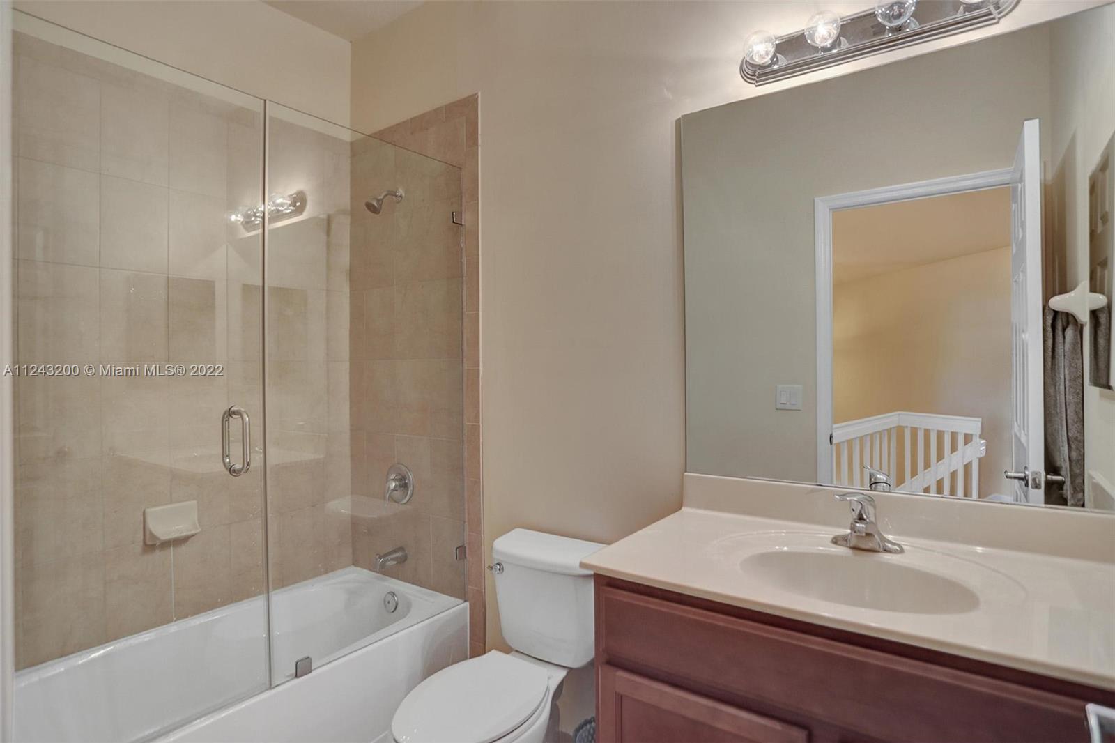 Beautiful 3 bedrooms, 3 full bathrooms lakefront property with a den/office space in one of the biggest models in St. Moritz in Doral! Spacious living and dining room with eat-in kitchen. Den/office and one full bathroom on first floor, 3 bedrooms and 2 full bathrooms upstairs with admirable lake views. Great private fenced-in patio with open lake to entertain your guests. Stainless steel appliances and granite countertops in an open concept kitchen; accordion shutters. Close to everything that Doral has to offer and Grade A schools. Unit is ready to move in.
