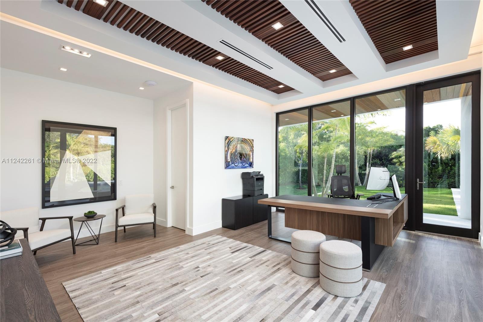 A North Pinecrest modern masterpiece that effortlessly blends elegance and nature. Through walls of glass, take in 360 views of tranquil water elements, sunlight, and foliage. Newly completed, this estate features smart home technology, high end finishes, home theater, elevator, large den, two driveways & thoughtful extras. The 1,300 SF primary suite will exceed expectations with wraparound windows, sitting area, spa-like bathroom & walk-in closet with laundry. Experience seamless indoor/outdoor living with folding glass doors opening to your 75’ tiled pool and jacuzzi, summer kitchen with electric screens, and cabana with dramatic marble slabs & full bath. Wood and lighting accents flow from outside to in, adding warmth to the sleek design. This Pinecrest home is in a class all its own!