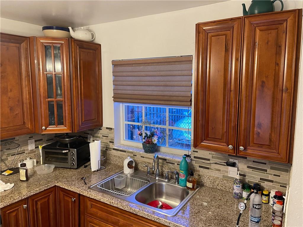 DEAL FELL THROUGH...BACK ON MARKET! Prettiest house on the block! Spacious, well-maintained, family home, approx. 1700 sq ft; 3 bedrooms, 2 bathrooms; remodeled kitchen boasting granite countertops and stainless steel appliances; master bathroom with jetted, oversized tub and separate shower; big family room; breakfast bar; split bedroom plan; and laundry room. Beautifully updated house with fenced, manicured yard, newer roof, central AC, accordion hurricane shutters, paver driveway, sprinkler system, storage shed, alarm system, and more. One of the largest and nicest homes in the area. This house won't last long, so hurry.