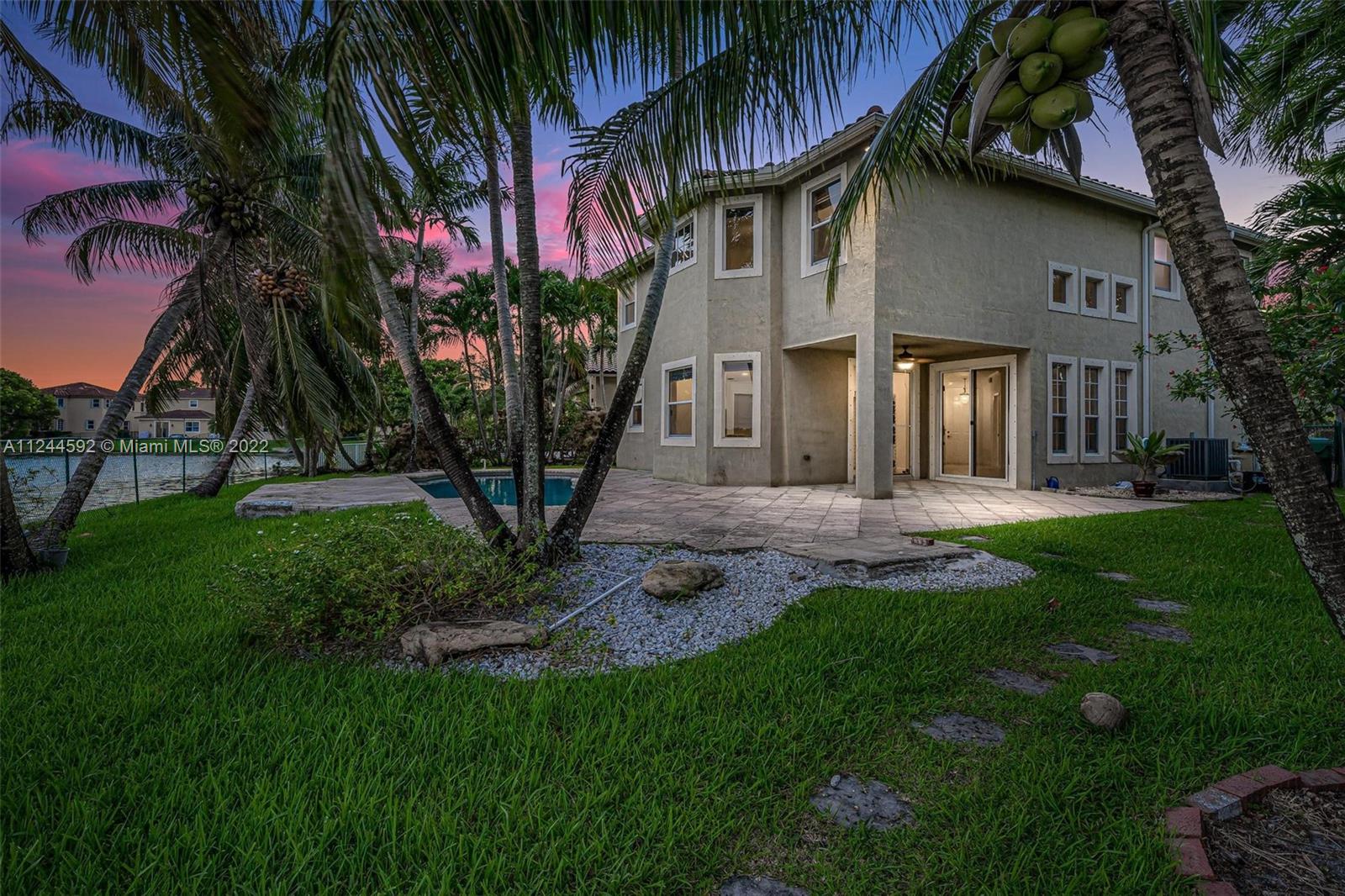 OPEN HOUSE SUNDAY 11 to 1pm! All showings will begin on that day! Beautiful home located in gated community in West Miramar. Home is located on a cul-de-sac and has a private lot with pool and lake view. Lots of windows allow for bright and airy feel. Formal living room has two story tall ceilings and showcases a beautiful staircase with wood and iron accent railings. The Kitchen is spacious and open to the family room. The backyard has a large patio decking and beautiful views of the lake! You will fall in love with the extra large master suite which includes a sitting area and spacious master bathroom and closet! You will fall in love with this house!