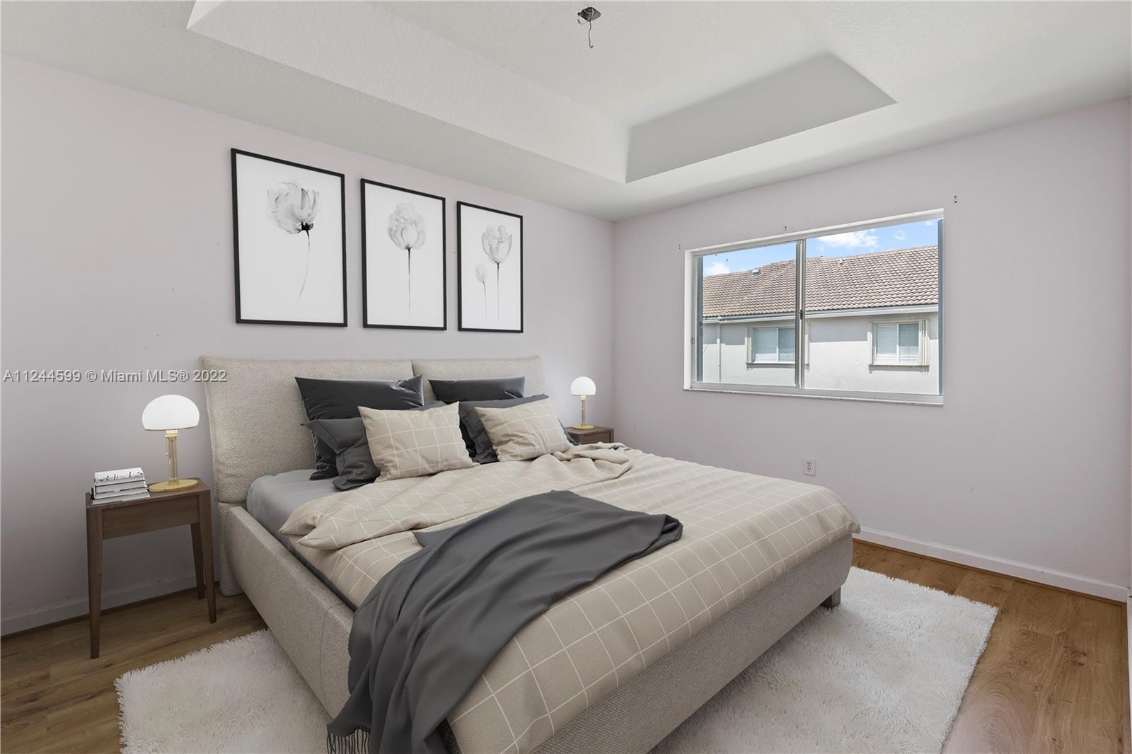 Highly sought after townhome in the gated community of Sonoma in Doral. Corner home with private patio, 1 car garage, tiled throughout on first floor and laminate floors upstairs. Low HOA Dues, Elementary school is walking distance, close to Supermarkets, banks, restaurants, day cares and parks. Minutes from the Floriday Turnpike. Easy to show. Virtual furnishings have been added to some photos.