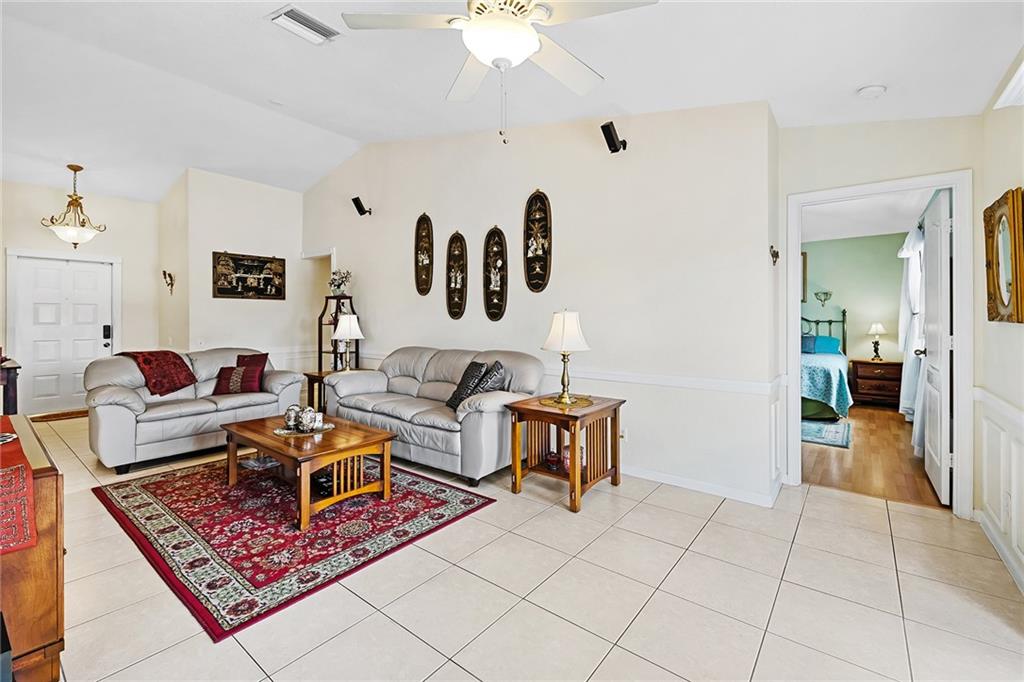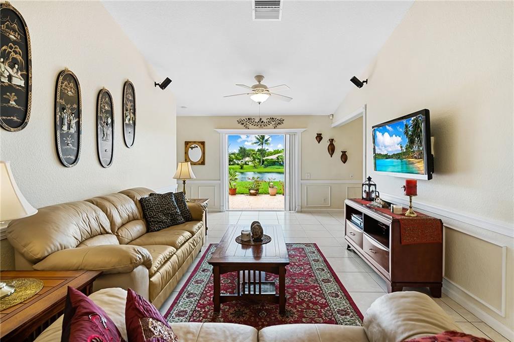 Rare opportunity; this welcoming 3 bedroom, 2 bathroom waterfront home located in the gated community of The Villages of Renaissance. Expansive backyard with serene waterfront views provides an ideal environment to relax and entertain. Meticulously maintained this split-bedroom floorplan provides optimal layout for new home owners. Primary bedroom suite consists of walk-in closet with private bathroom and views of the water. Elegant wainscoting throughout main living areas, new full-size washer and dryer, and Sony surround sound system. Community amenities include private pool, tennis court, and basketball court. Conveniently located near major thoroughfares, as well as a multitude of dining and shopping options at The Shops of Pembroke Gardens.