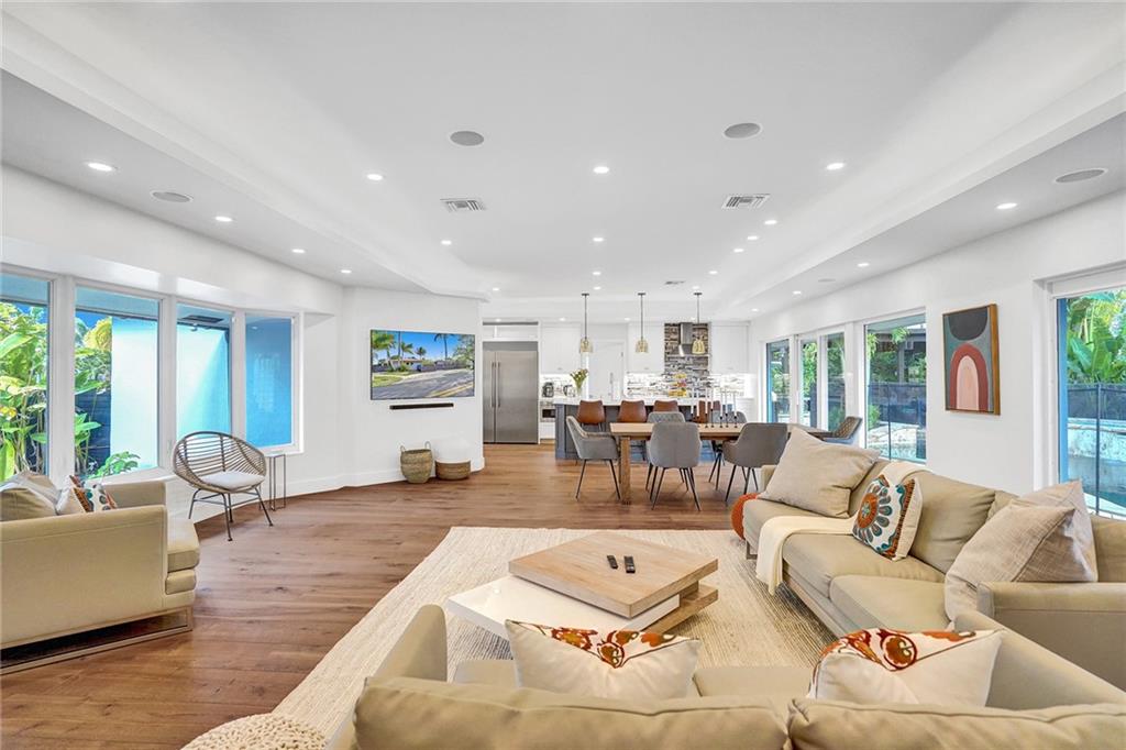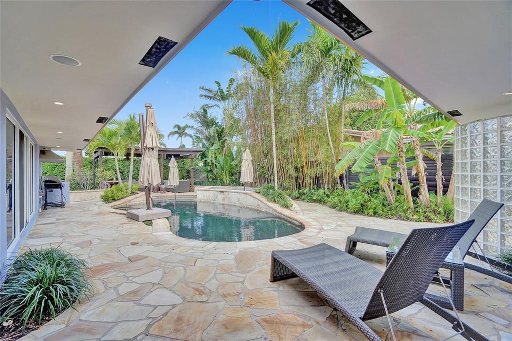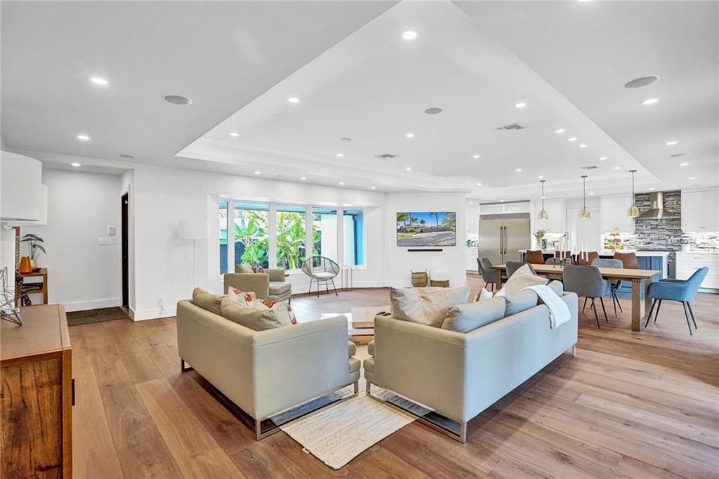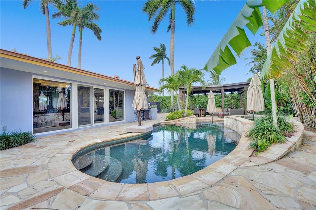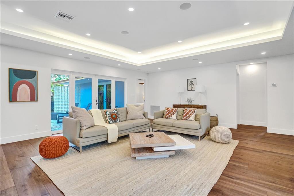 Live your luxury lifestyle in this completely remodeled 3 bedroom home in Coral Ridge Country Club! This home features an open floor plan with seamless indoor/outdoor living. Updates include wood flooring throughout, impact windows & doors, recessed lighting, gourmet kitchen with gas range, updated bathrooms with heated flooring, custom built-ins with ample storage, metal roof, sewer lines replaced with pvc and more. Backyard oasis boasts saltwater pool with heater and chiller, covered patio space, outdoor shower and grass area. Front and side driveways to accommodate multiple vehicles.