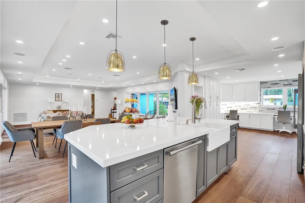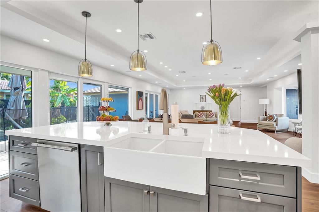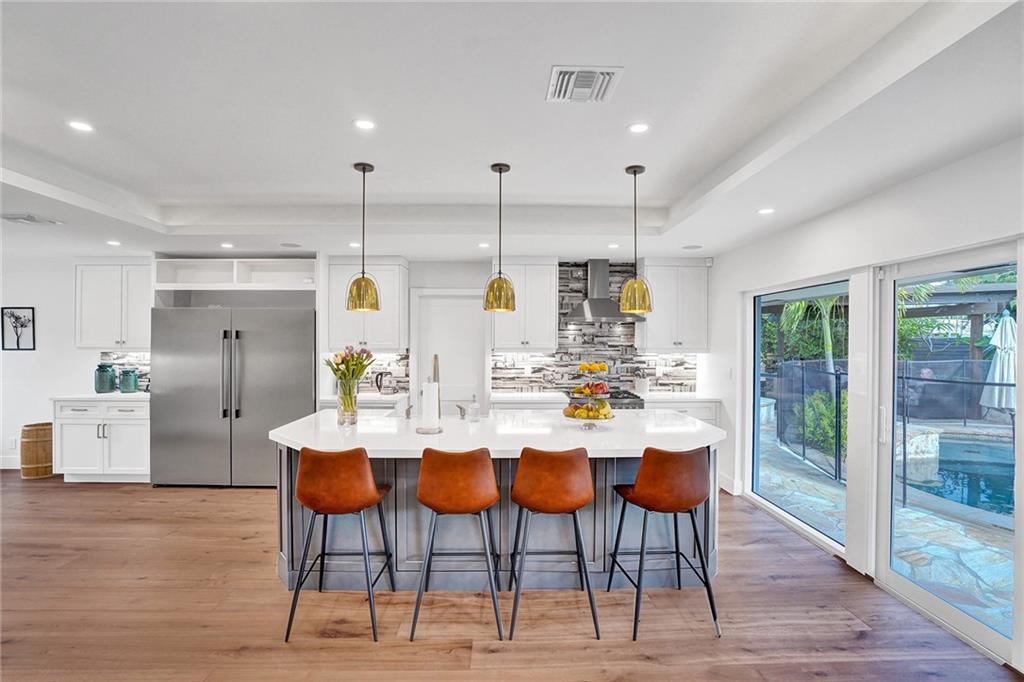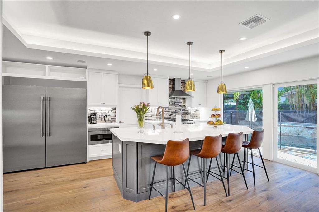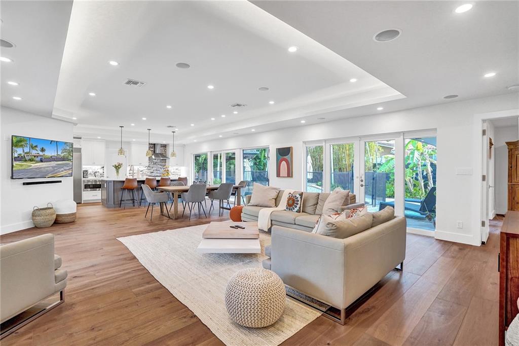 Live your luxury lifestyle in this completely remodeled 3 bedroom home in Coral Ridge Country Club! This home features an open floor plan with seamless indoor/outdoor living. Updates include wood flooring throughout, impact windows & doors, recessed lighting, gourmet kitchen with gas range, updated bathrooms with heated flooring, custom built-ins with ample storage, metal roof, sewer lines replaced with pvc and more. Backyard oasis boasts saltwater pool with heater and chiller, covered patio space, outdoor shower and grass area. Front and side driveways to accommodate multiple vehicles.