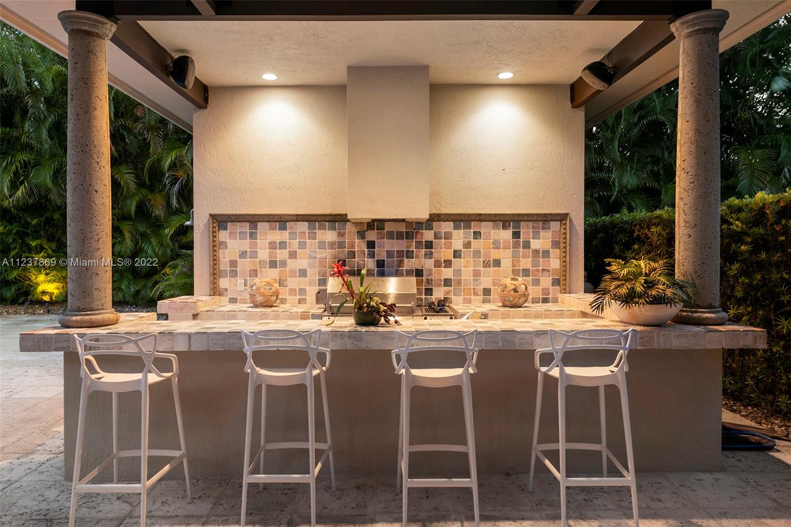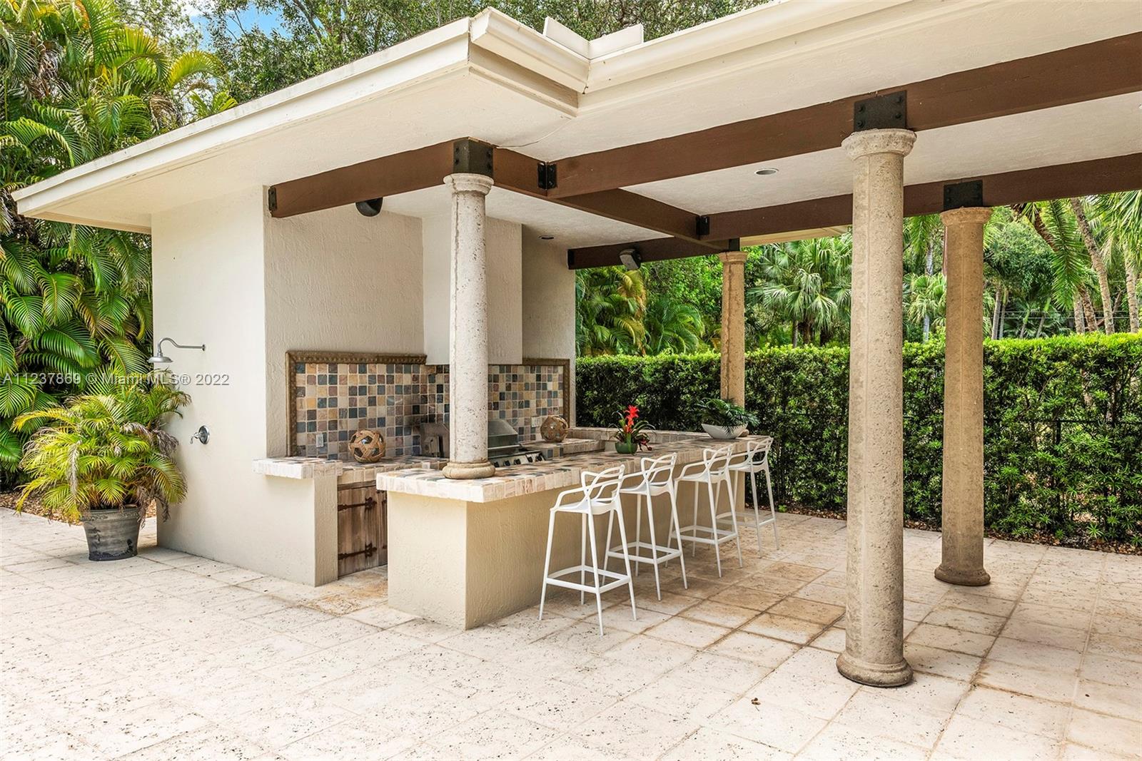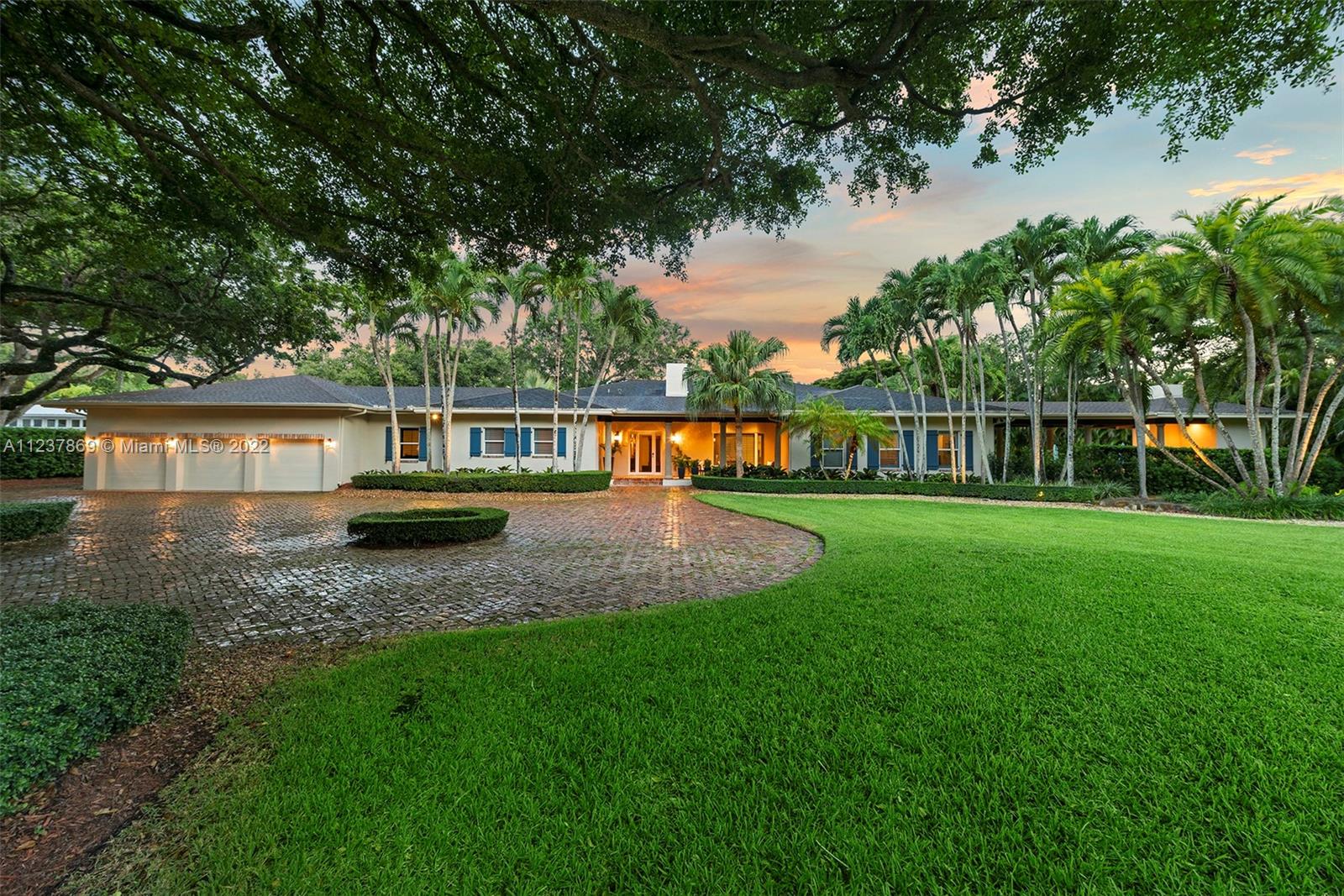 Exquisite & Elegant! This stunning transitional & renovated north Pinecrest Gem sets on a picturesque, lushly landscaped acre, surrounded by amazing wonder of nature, under mature & majestic tropical trees & plantings. Superlative designed with fabulous floor plan featuring 5 ensuite bedrooms plus office, familyroom, playroom, two patios, 3 car garage (airconditioned)! Beautiful formal living & dining. Gourmet chef's dream kitchen w/top-of-line appliances. A full wet bar coupled in the familyrm. Lavish master with luxurious bath & an incredible walk-in closet! Gorgeous Pool/patio with summer kitchen & cabana bath! Additional basketball court! Luxurious & finest detailed appointments in every turn! All-encompassed in this coral-rock walled & gated piece of paradise! (See Broker's remarks)