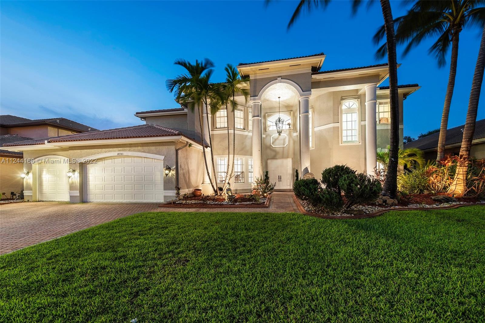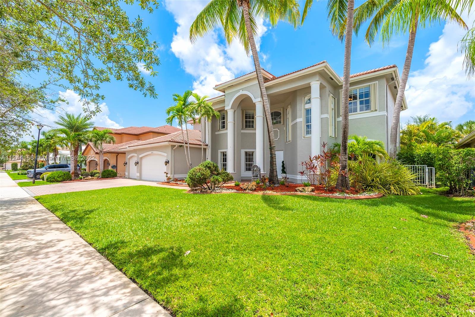 Come home to this exceptionally, spacious home with an impressive grand foyer entry with soaring ceilings and a custom marble medallion welcomes you. This six bedroom, five and a half bathroom home includes a fully upgraded gourmet kitchen with quartz countertops, an island, brand new stainless steel appliances and a butlers pantry. Elegant Crema Marfil floors recently installed. Master suite has a private balcony overlooking the brand new heated pool and an expansive his and hers master bath. This home offers a brilliant blend of open spaces and private retreats great for family living and entertaining. The home is located within the proximity of A-rated schools, conveniently close to class dining, shopping and major highways. Enjoy living in one of the best communities in West Miramar!