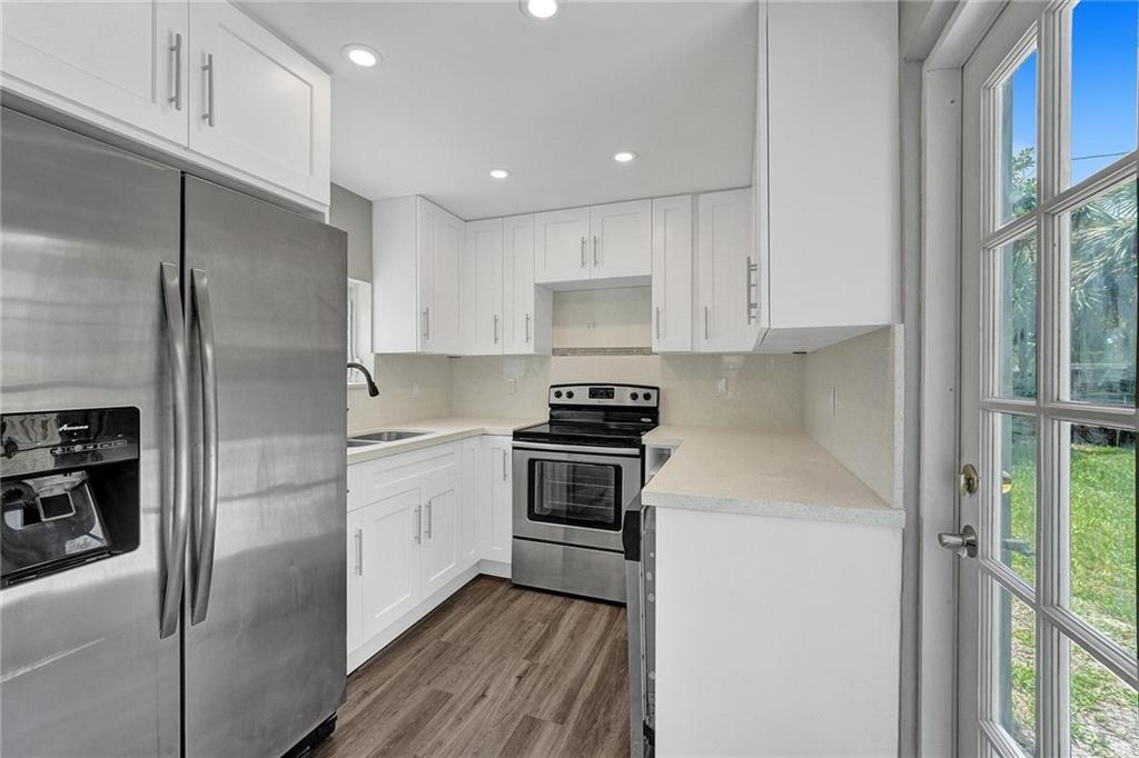 BRAND NEW ROOF ON ITS WAY! Recently renovated, Quaint & charming 3 bedroom, 2 bath home ready for you to move in! Huge corner lot with a fully fenced back yard. Lots of room for entertaining or a future pool! Beautiful kitchen with quartz counters, new cabinetry and newer appliances. Stylish gray plank waterproof vinyl flooring throughout the whole home. High ceilings with hi hats in the living space and kitchen. Beautiful French doors in the living room. Master bedroom has a private ensuite bathroom. Both bathrooms are remodeled and feature stand up showers with sleek tile and new vanities. New electrical panel. Central AC 2019. New tankless water heater. Washer & dryer inside. Covered car port. Lake Aire Park across the street with basketball, pool, jungle gym and more.