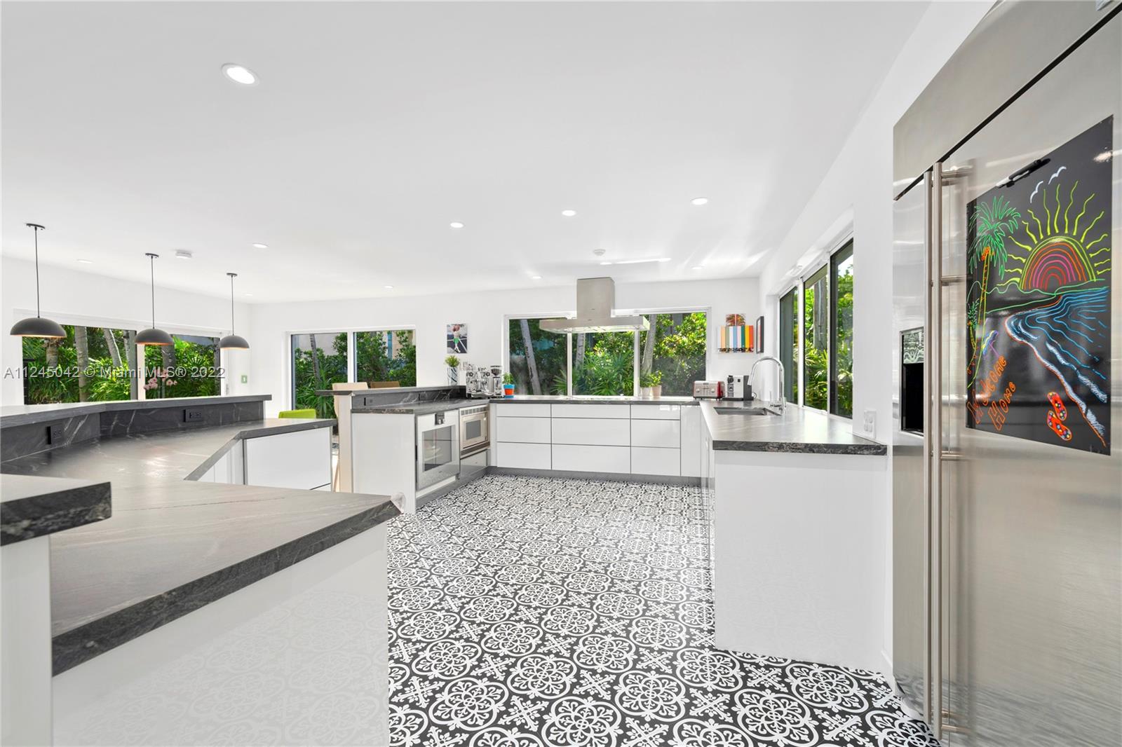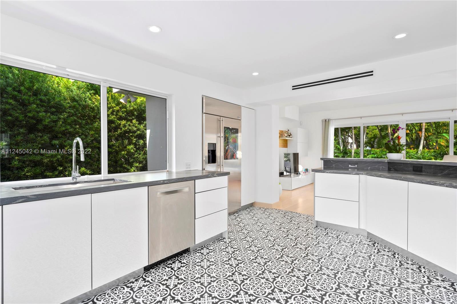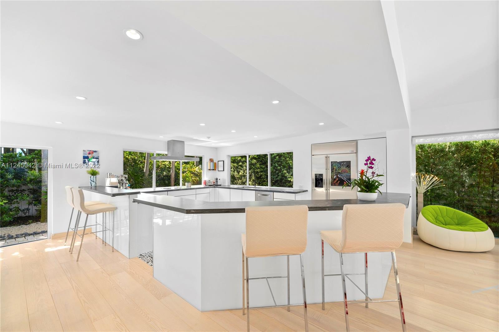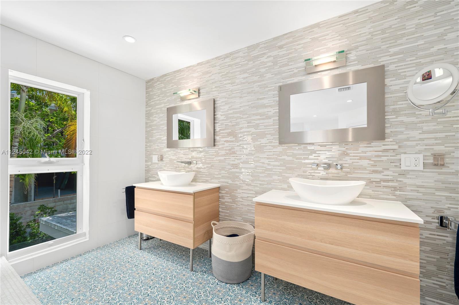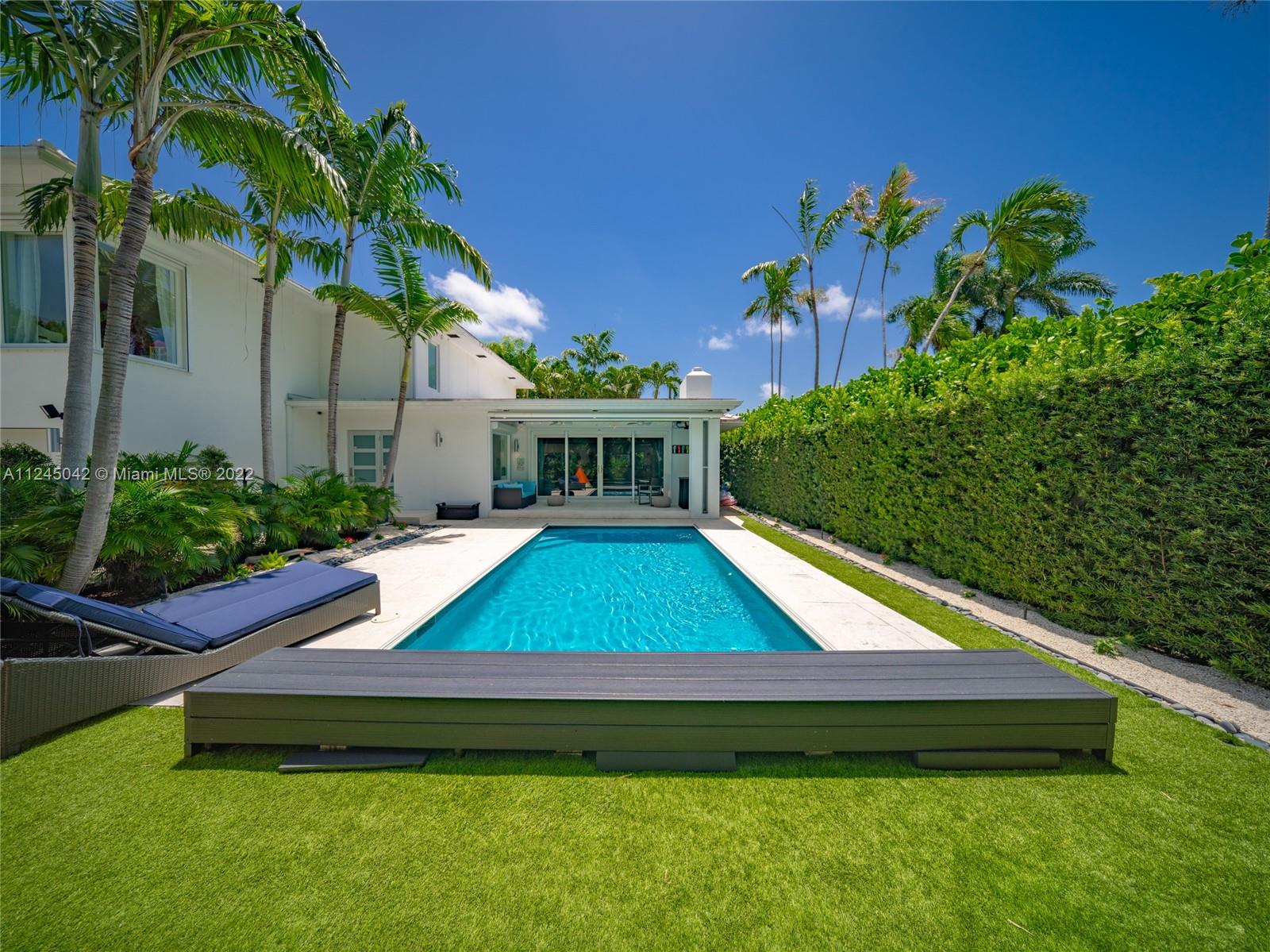Located on prestigious N Bay Road, this impeccable residence features 5beds 4.5baths plus nanny’s quarters and offers an array of high quality modern finishes throughout. With over 3,400/SF, this well designed floor plan is ideal for entertaining. The home was completely renovated and features a new 598/SF addition creating 2bd/1bth on the 2nd floor adjacent to the main bed. The 1st floor consists of 2bds 2.5bth, a custom kitchen with marble counters, Gagganaeu appliances and induction cooktop. Custom baths, white oak floors throughout, heated salt water pool, impact windows, electric awning and optional screened patio, security cameras and secured gated driveway. Surrounded by lush tropical gardens, this private oasis exudes quintessential Miami Beach living. Please see virtual tour.