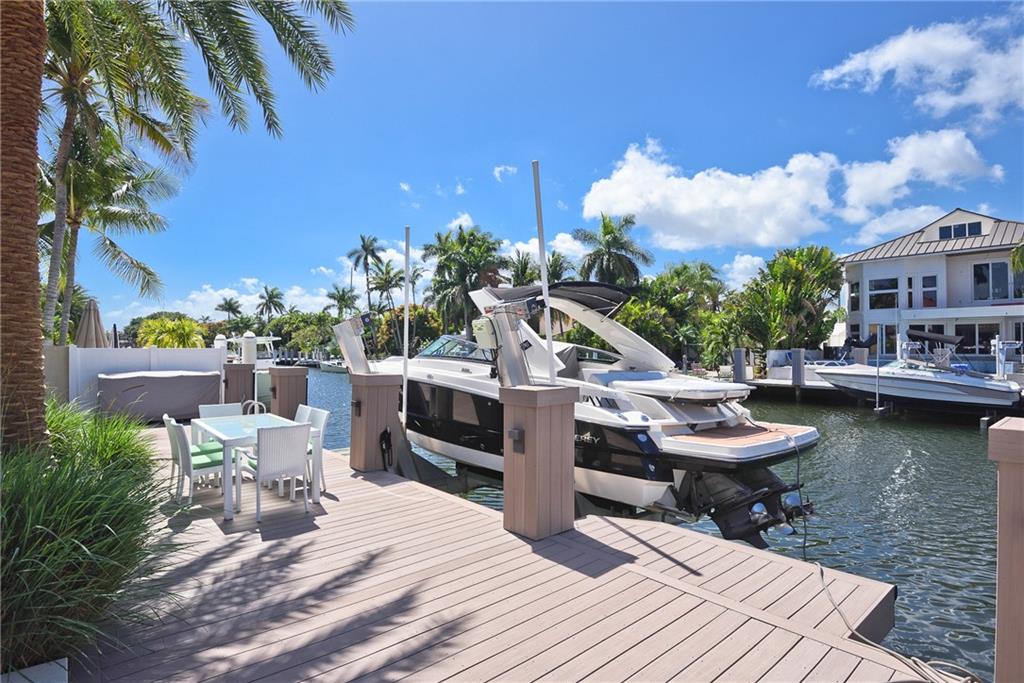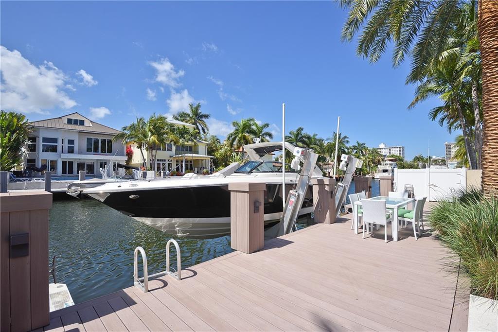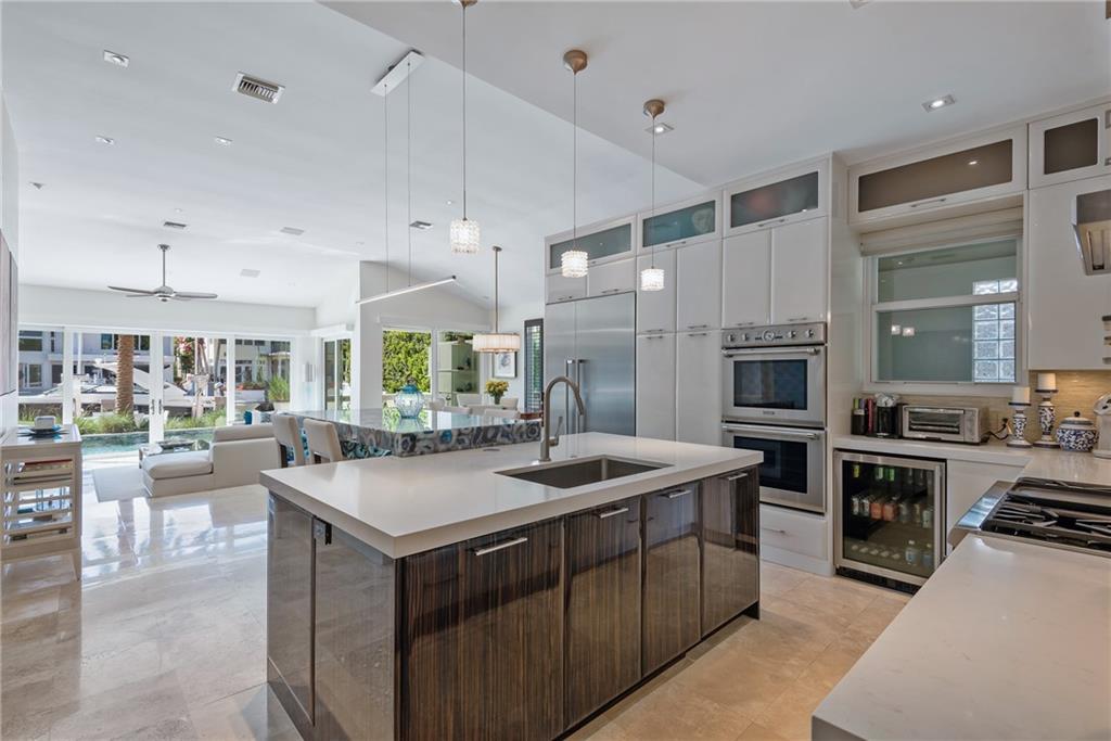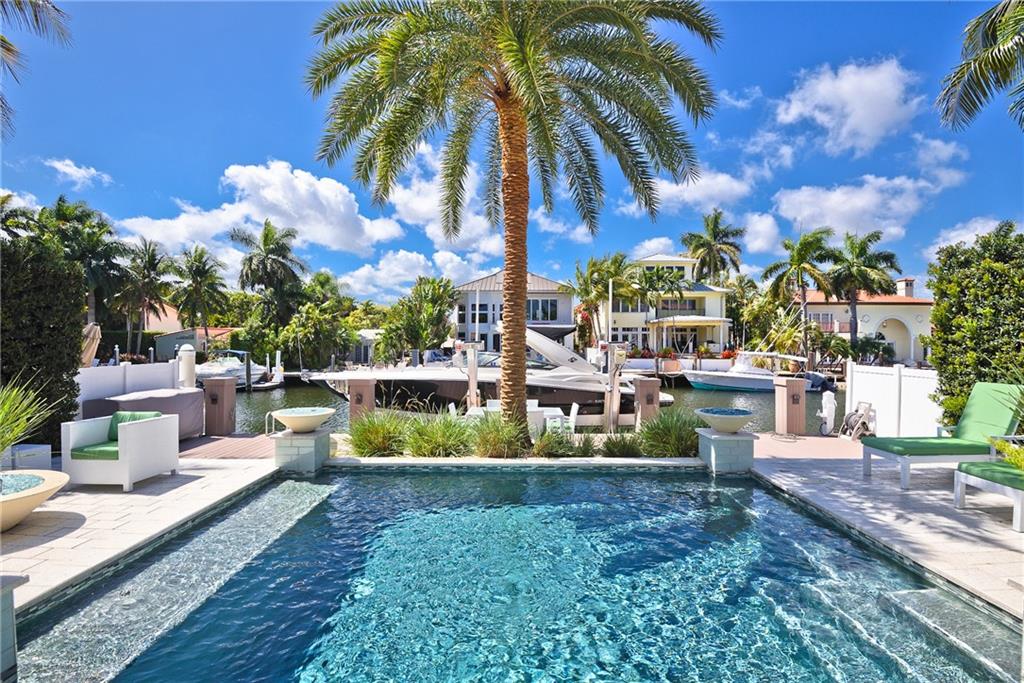 Sensationally renovated with exceptional materials waterfront Villa located in the desirable Las Olas neighborhood of Idlewyld. Deepwater ocean access with no fixed bridges and minutes to the inlet. Chefs kitchen with custom kitchen cabinets, six burner gas cooktop, double ovens, beverage center, two ice makers, 100 bottle wine refrigerator, all centered around a stunning blue Agate island. Bright, open and airy living spaces view the resort style pool and canal. Generous scaled primary bedroom views the water and has a sitting/desk area. Renovated primary bath has vaulted ceilings and a beautiful stone accent wall. This well maintained three bedroom plus den home has been updated throughout. Walking distance to the ocean, restaurants and entertainment.