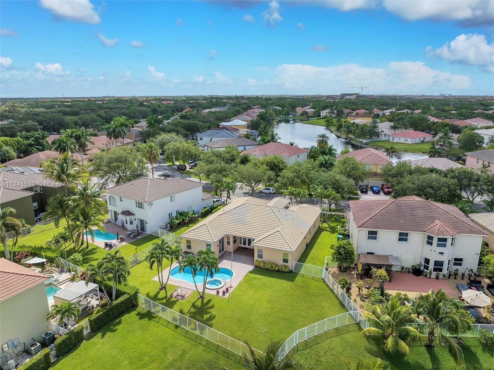 Enjoy stunning sunsets from your own patio and pool! Beautifully maintained, one story 4BD/3Bth + bonus room, pool home with 3 car garage on premium lakefront lot; second smaller master bedroom with its own bathroom, perfect for guests or as an in-law suite; NEW plumbing throughout home; 2 updated bathrooms (2021); newer hot water heater (2021); bonus room can be used in many ways; 13' ceiling in living/dining room, 10' ceilings elsewhere, trey ceiling in master bedroom; walk-in closet with systems; recently repainted exterior; newer air conditioner compressor, central vacuum, repaved & sealed driveway (2022), pool & spa resurfaced with night lights (2020); vented over microwave; nearby rec amenities include pool, tennis courts, clubhouse, gym; low monthly maintenance fee of $145; gated.