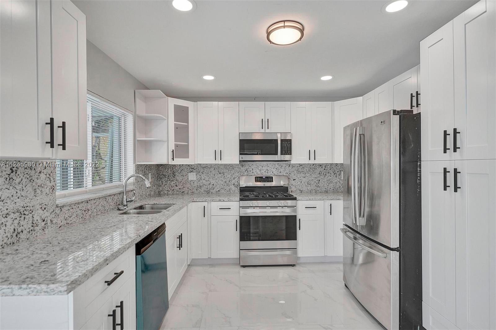 Substantially upgraded spacious 3 bed 2 bath 2 garage home with pool. This beautiful property is located in the sought after MIRAMAR ISLES neighborhood of East Miramar. Upgraded bathrooms, Kitchen with white single shaker cabinets with Granite counter top, SS appliances. 24/48" porcelain tile in the common area and water resistant gray laminate in the bedrooms. Covered patio extended to the spaciously Screened Pool over looking to greenery. Close to the Hardrock stadium, major highways and Hallandale beach, etc..