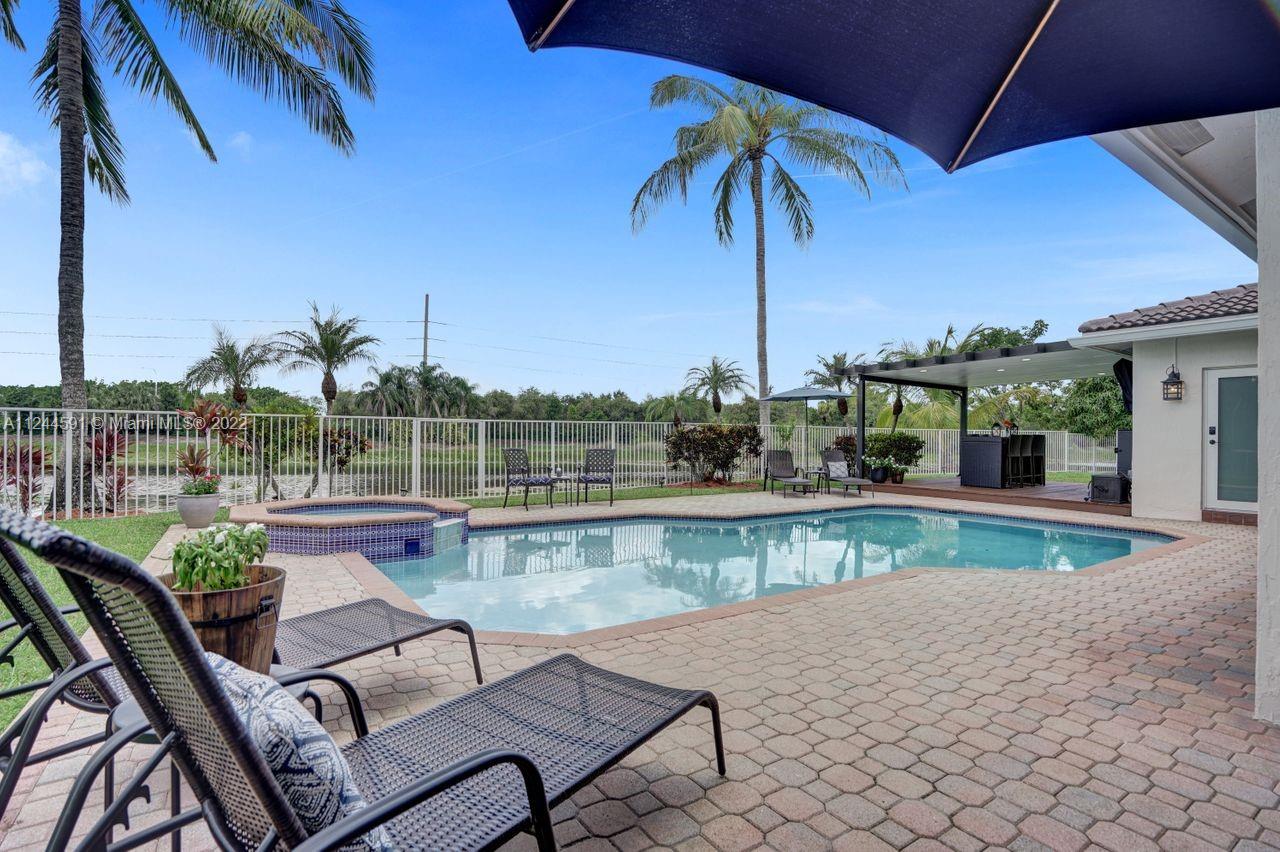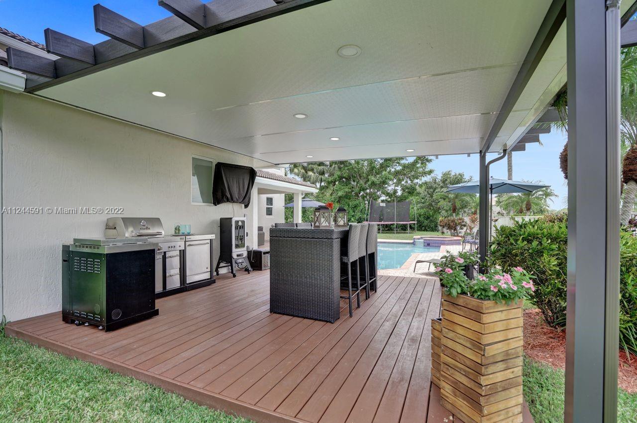 STUNNING BRAND NEW 2021-2022 RENOVATION! Gorgeous 6+DEN/5/3CG modern Weston Hills home on SPECTACULAR 17,000+SF wraparound culdesac LAKEFRONT LOT w/HEATED POOL/SPA, huge fully fenced park-like yard! BRAND NEW 2022 ROOF, BRAND NEW 2022 IMPACT windows & doors! Backyard retreat is an entertainers delight w/NEW Pergola w/elevated deck & lights, sparkling pool w/NEW heater, equip & diamond brite. White kitchen w/NEW appliances, NEW Quartz counter/backsplash. 3 Remodeled bathrooms, NEW fans, all NEW chandeliers, NEW LED lights, NEW electrical exterior, NEW ext/int paint, NEW gutters, custom closets. IN-LAW SUITE w/walk-in closet, cabana bath + 2nd Bath downstairs too! Master Suite w/adjacent OFFICE/DEN w/NEW French door. Neighborhood park, soccer, basketball & golf around the corner. A+ schools!