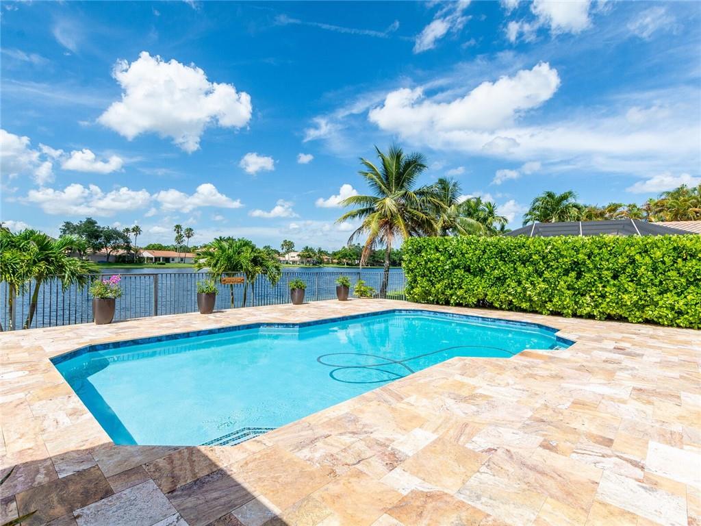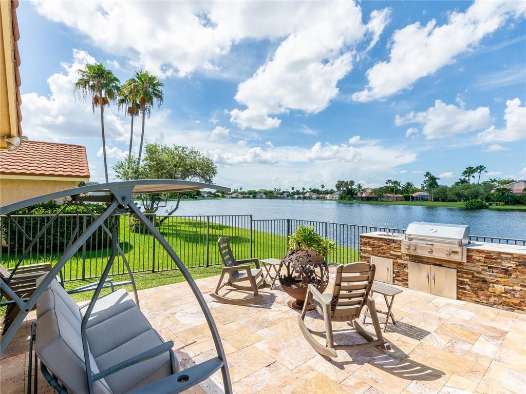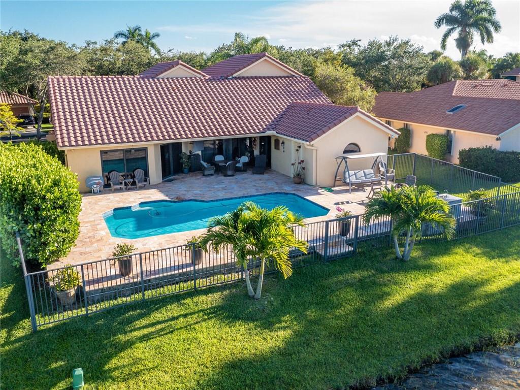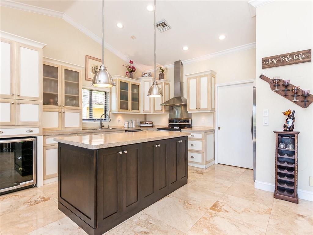 Wow!! Absolutely Stunning!! Premium waterfront location with expansive views! Full impact windows & doors. Updated kitchen and baths, wood cabinets, high volume ceilings, crown molding, travertine floors, walkway and patio. Kitchen features center work island, SS appliances, wood cabinets, wine cooler, under cabinet lighting, separate breakfast area. Roof replaced. Master and 2 bedrooms on 1st floor, 2 bedrooms upstairs with high end laminate flooring and updated bath. Incredible pool/patio area with extended travertine deck, built-in grill, large covered area and fenced yard. Fabulous location within walking distance to Country Isles Elementary, Publix, Town Center and Parks. Won't last!!