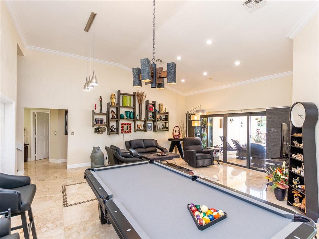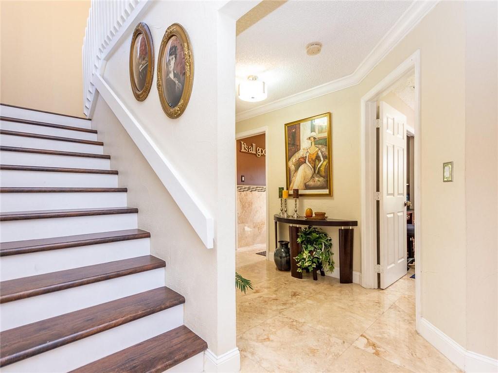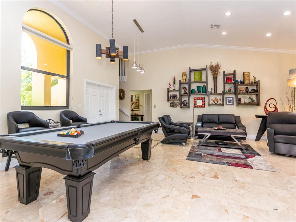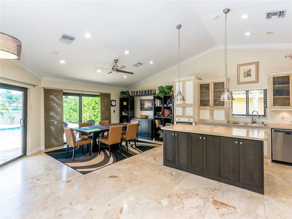 Wow!! Absolutely Stunning!! Premium waterfront location with expansive views! Full impact windows & doors. Updated kitchen and baths, wood cabinets, high volume ceilings, crown molding, travertine floors, walkway and patio. Kitchen features center work island, SS appliances, wood cabinets, wine cooler, under cabinet lighting, separate breakfast area. Roof replaced. Master and 2 bedrooms on 1st floor, 2 bedrooms upstairs with high end laminate flooring and updated bath. Incredible pool/patio area with extended travertine deck, built-in grill, large covered area and fenced yard. Fabulous location within walking distance to Country Isles Elementary, Publix, Town Center and Parks. Won't last!!