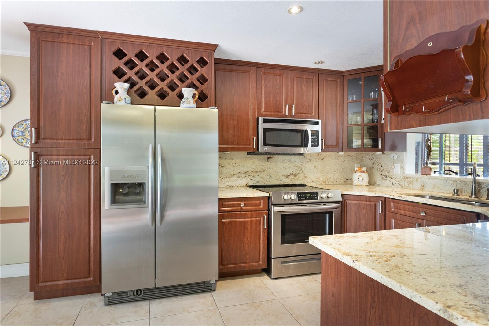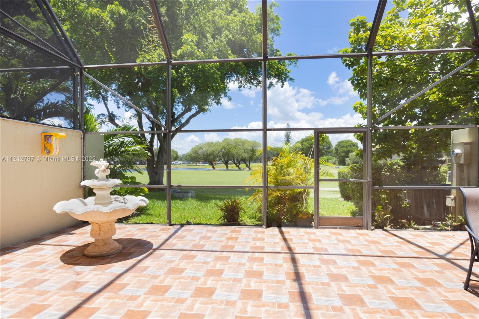 Beautiful two story Spanish style townhouse with golf and lake view. Excellent location, minutes from MIA, restaurants, shopping, entertainment, schools, and the new Jackson Hospital. Easy access to Palmetto Expressway and the Turnpike. Wood laminate flooring on the second floor and tile in main floor. Kitchen has stainless steel appliances. Gated community offers tennis, basketball, pool, clubhouse, golf, and gym. All bedrooms are located upstairs. Security on the property 24/7. First floor half bath converted to full. Garage can be converted to a 4th room and is fully tiled. Washer and dryer included.