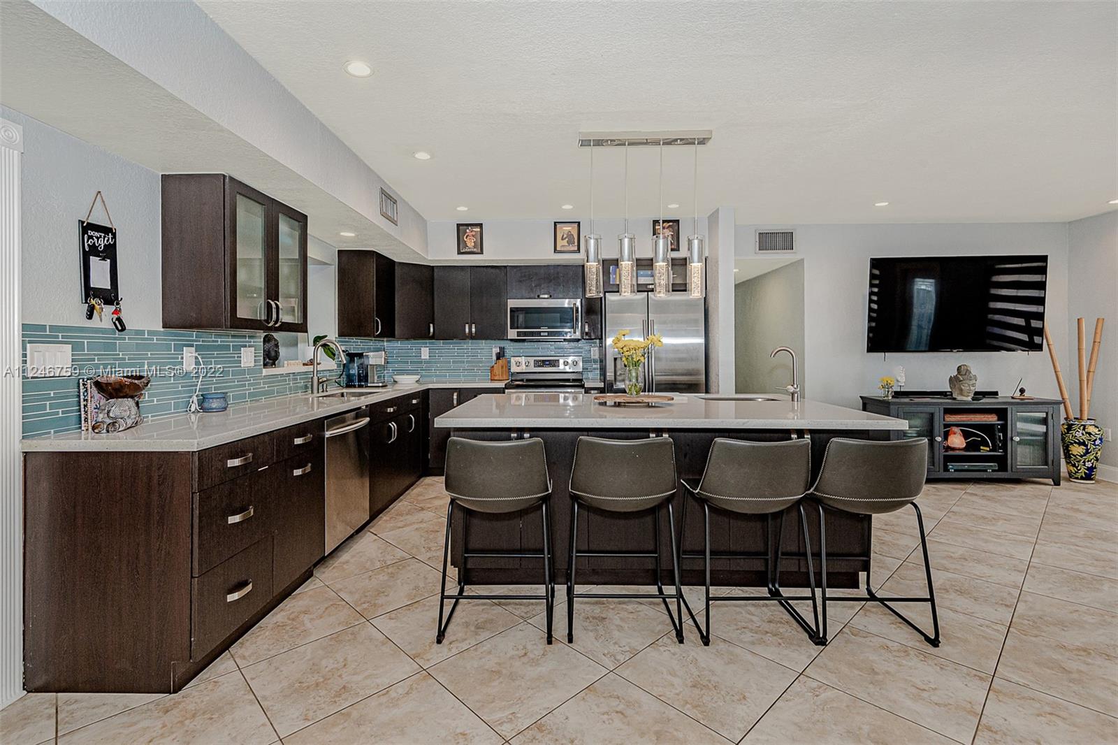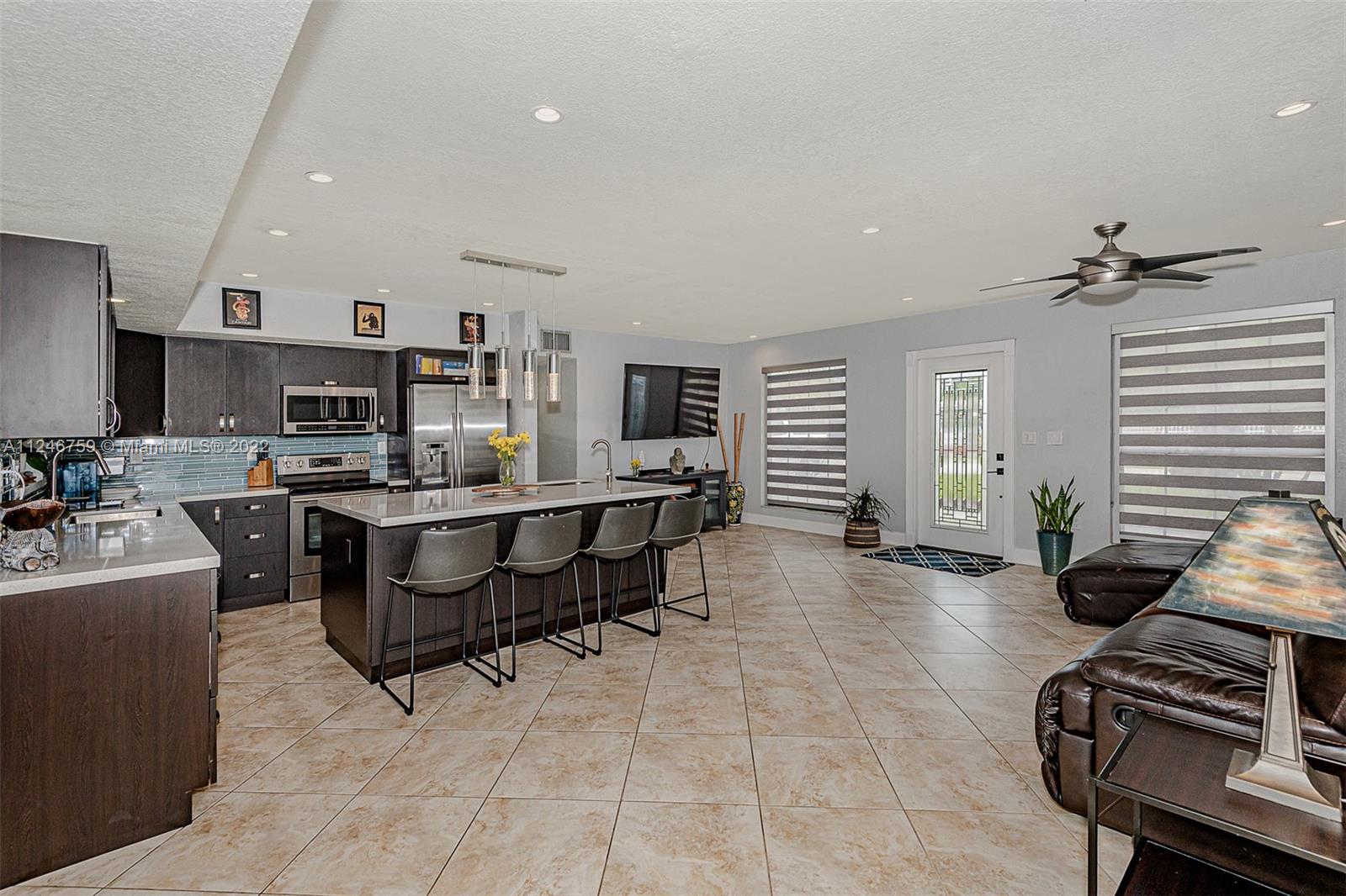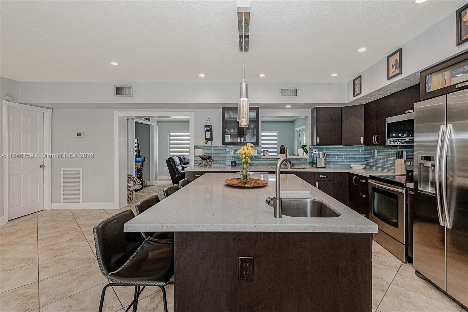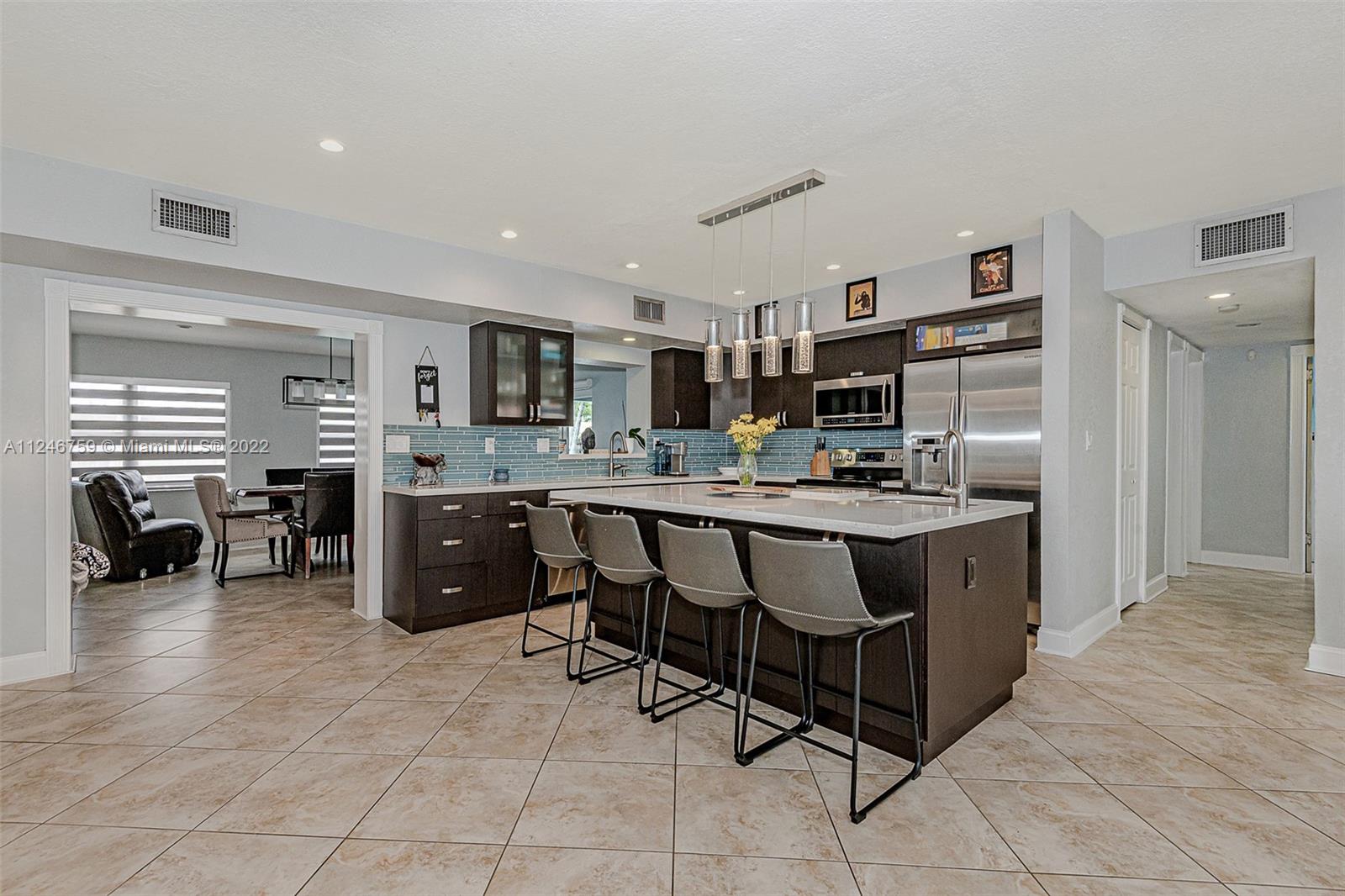 Reduced. Back to market. Has passed re-occupancy inspection. Beautiful and spacious 4 bedroom/3 baths single-family home with two master bedrooms w/ pool in the heart of Hialeah. Interior boasts beautifully renovated pass-thru kitchen with quartz counters and stainless-steel appliances, ceramic tiles throughout home, renovated master bedrooms and all baths tastefully upgraded. Exterior boasts 2018 roof with 4 inches of insulation and transferable 20-year warranty for a fee, circular driveway plus ample single car garage (excellent rentable space) and covered patio overlooking pool. Exterior AC new in 2021, air handler is 6 years old, pool motor/filter are also new. Pool tiles and Diamond-Brite done in 2021. Vacant and easy to show!