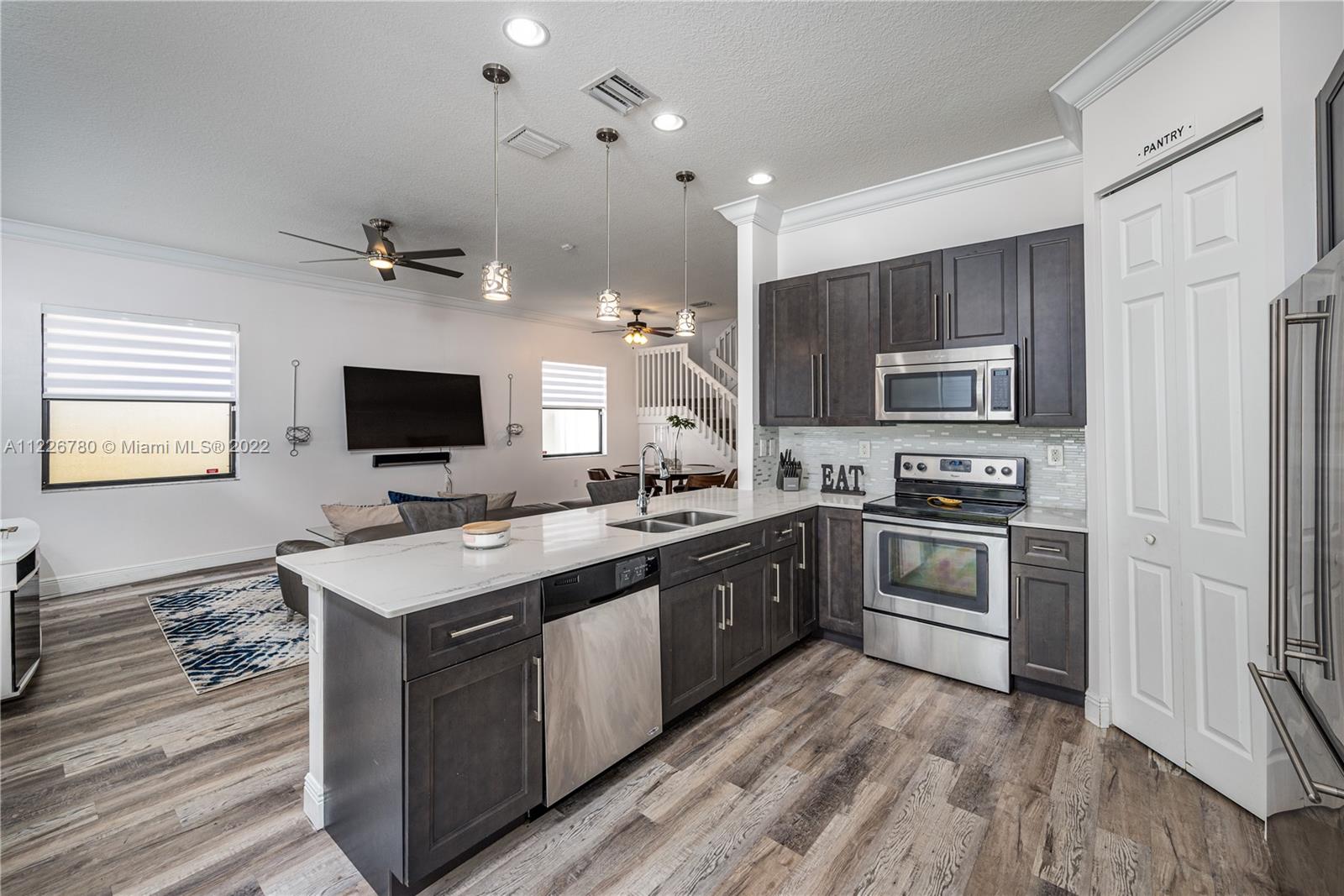 Best Location in Miramar, close to everything. Gated community with pool, low HOA fee. Freshly painted and recently renovated modern kitchen, wood cabinets, walk in pantry and stainless appliances. Open floor plan, new light fixtures and fans and with a great backyard recently fenced. A must see home!