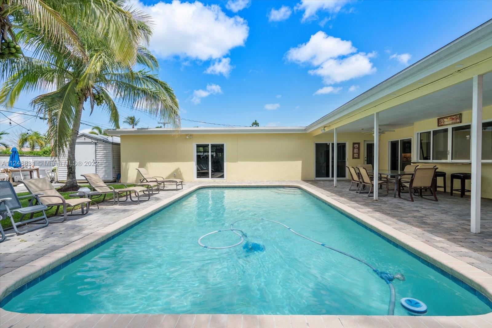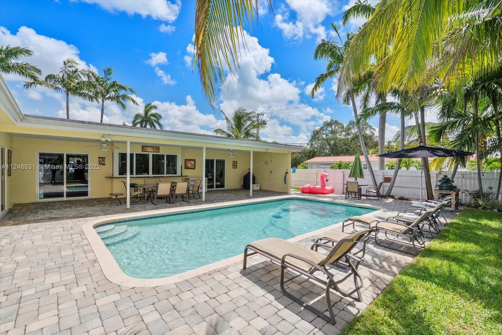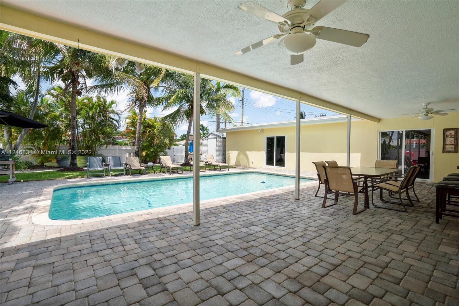 READY TO MOVE IN. Get ready to relax in this beautifully updated 4 Bedroom/2 Bathroom on a large corner lot. All of the upgrades are done, it’s ready to enjoy. Relaxation awaits on the oversized paver pool deck and patio. The saltwater pool is surrounded by lush tropical palm trees. There is plenty of room for your boat or RV on the additional 46’x13’ paver boat/RV pad (side street entry). Gorgeous Dining Room with cabinets, granite, and wine cooler. Kitchen has been totally upgraded with granite counter tops, appliances, and marble top on island. Both bathrooms and all flooring has also been beautifully done. All impact windows and doors. Roof (2015). A/C Central (2018). Garage cabinets and epoxy floor. Electrical Service updated. Samsung Washer and Dryer.