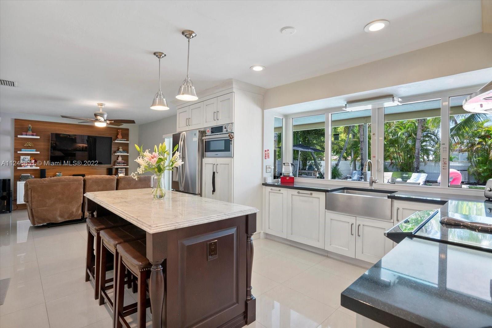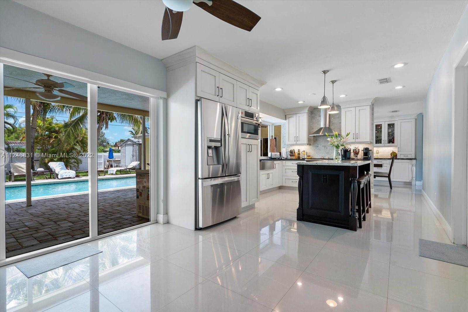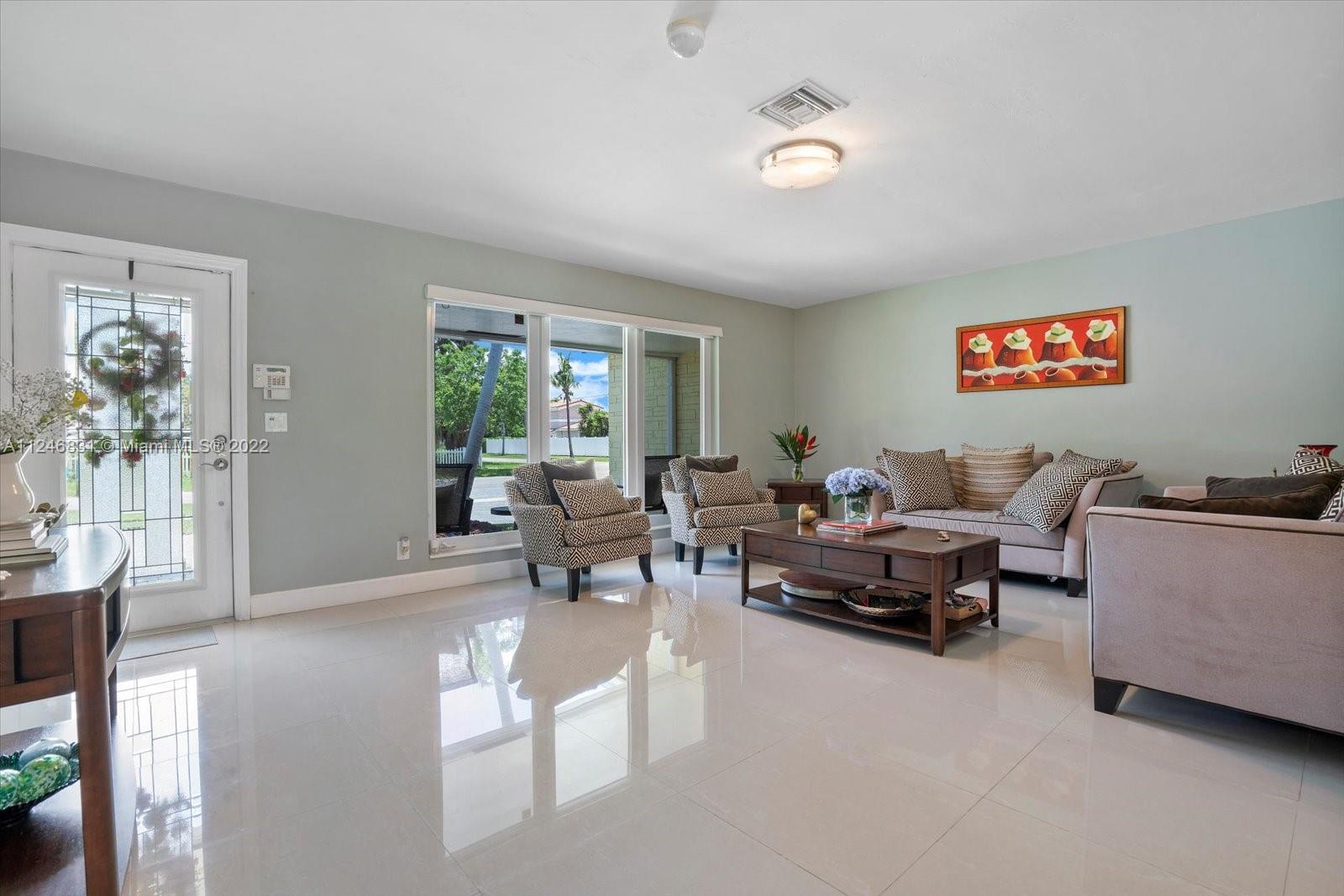 READY TO MOVE IN. Get ready to relax in this beautifully updated 4 Bedroom/2 Bathroom on a large corner lot. All of the upgrades are done, it’s ready to enjoy. Relaxation awaits on the oversized paver pool deck and patio. The saltwater pool is surrounded by lush tropical palm trees. There is plenty of room for your boat or RV on the additional 46’x13’ paver boat/RV pad (side street entry). Gorgeous Dining Room with cabinets, granite, and wine cooler. Kitchen has been totally upgraded with granite counter tops, appliances, and marble top on island. Both bathrooms and all flooring has also been beautifully done. All impact windows and doors. Roof (2015). A/C Central (2018). Garage cabinets and epoxy floor. Electrical Service updated. Samsung Washer and Dryer.