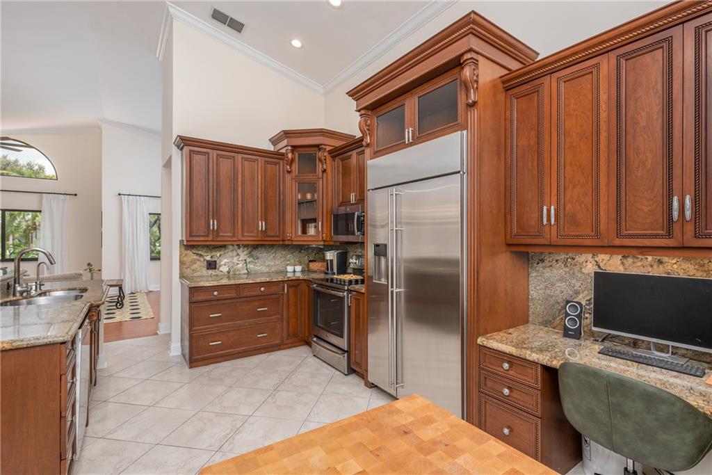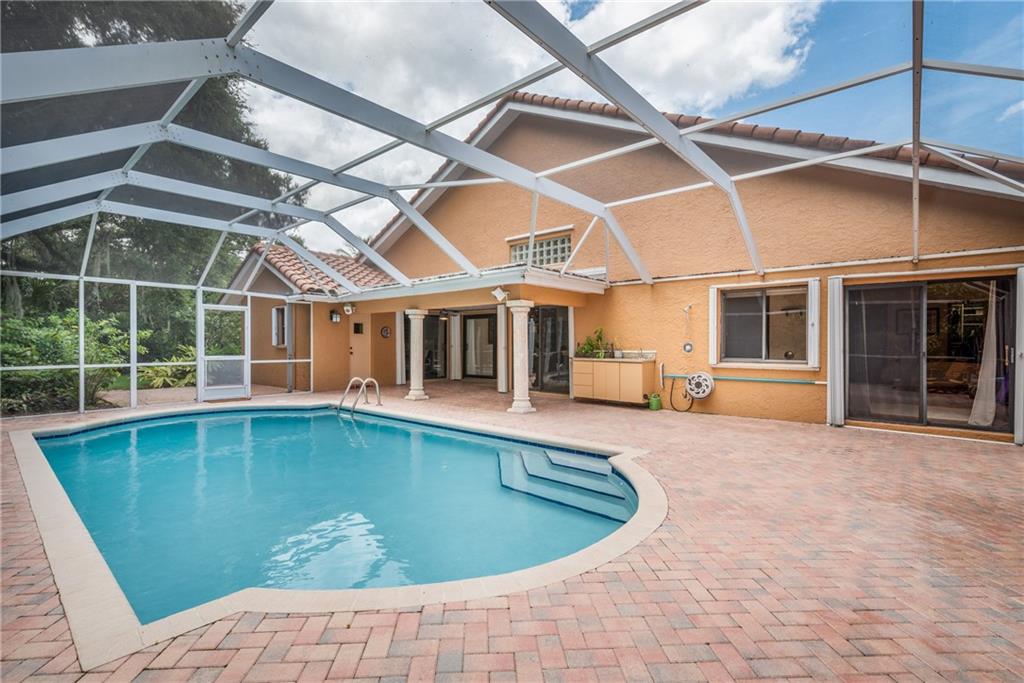 Tranquil and secluded home on over a quarter acre lot along Pine Island Ridge. Enjoy a split floor plan with vaulted ceilings & space for entertaining in this 4 bed 3 bath retreat. The kitchen is modern & efficient with granite countertops & SS appliances. Step down the hall to your master bed with a marble encased bathroom & spa, perfectly situated to soak among bubbles with a peaceful view of the forest. In addition, the guest bed has a cabana bath for your convenience. Features include new AC, new laminate flooring, hurricane impact windows & accordion shutters throughout. Walk outside to a lushly landscaped backyard with a saltwater pool and trails that lead to Tree Tops Park, Pine Island playground & 174 miles of interconnected trails for biking, hiking & horseback riding.